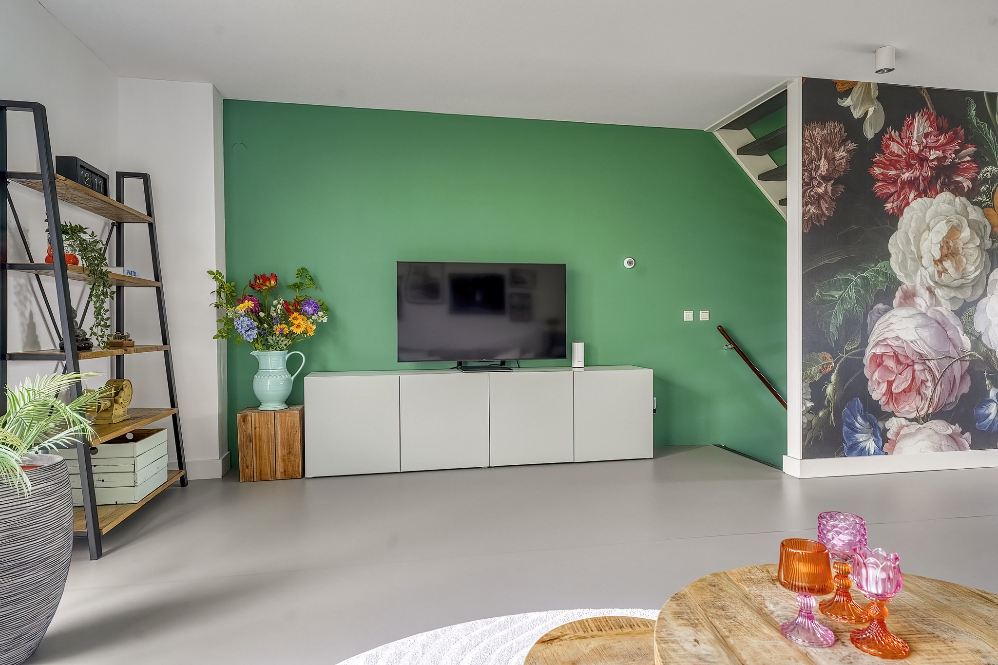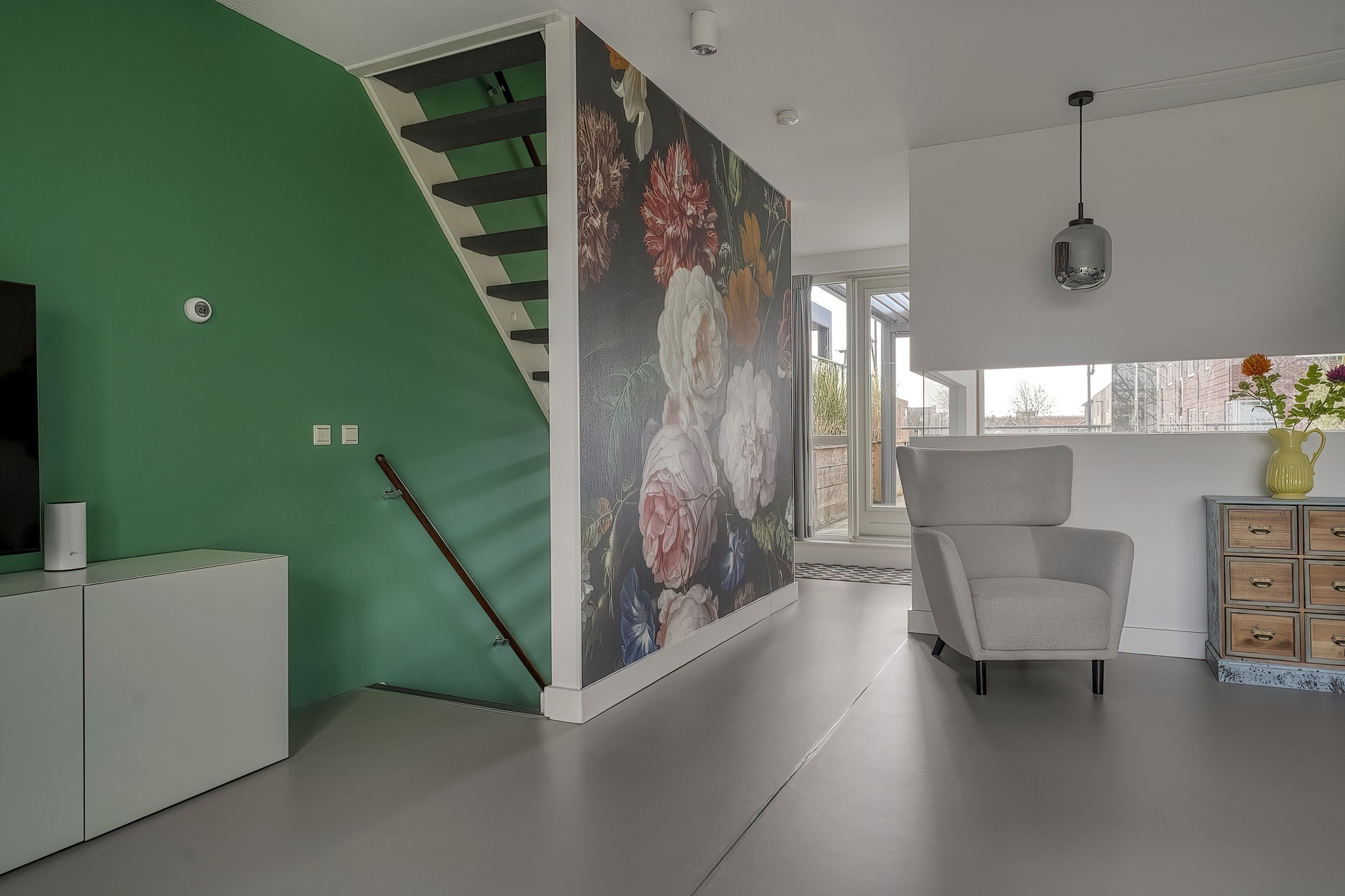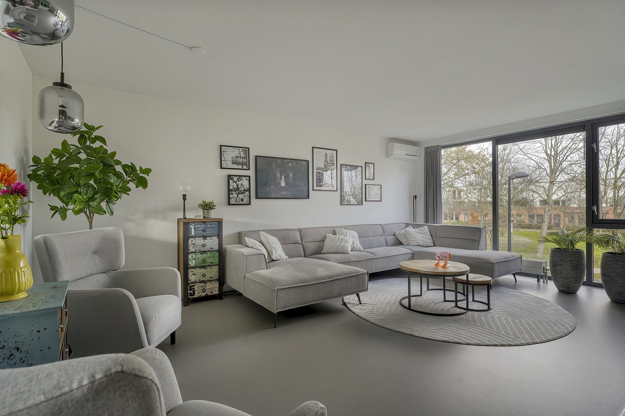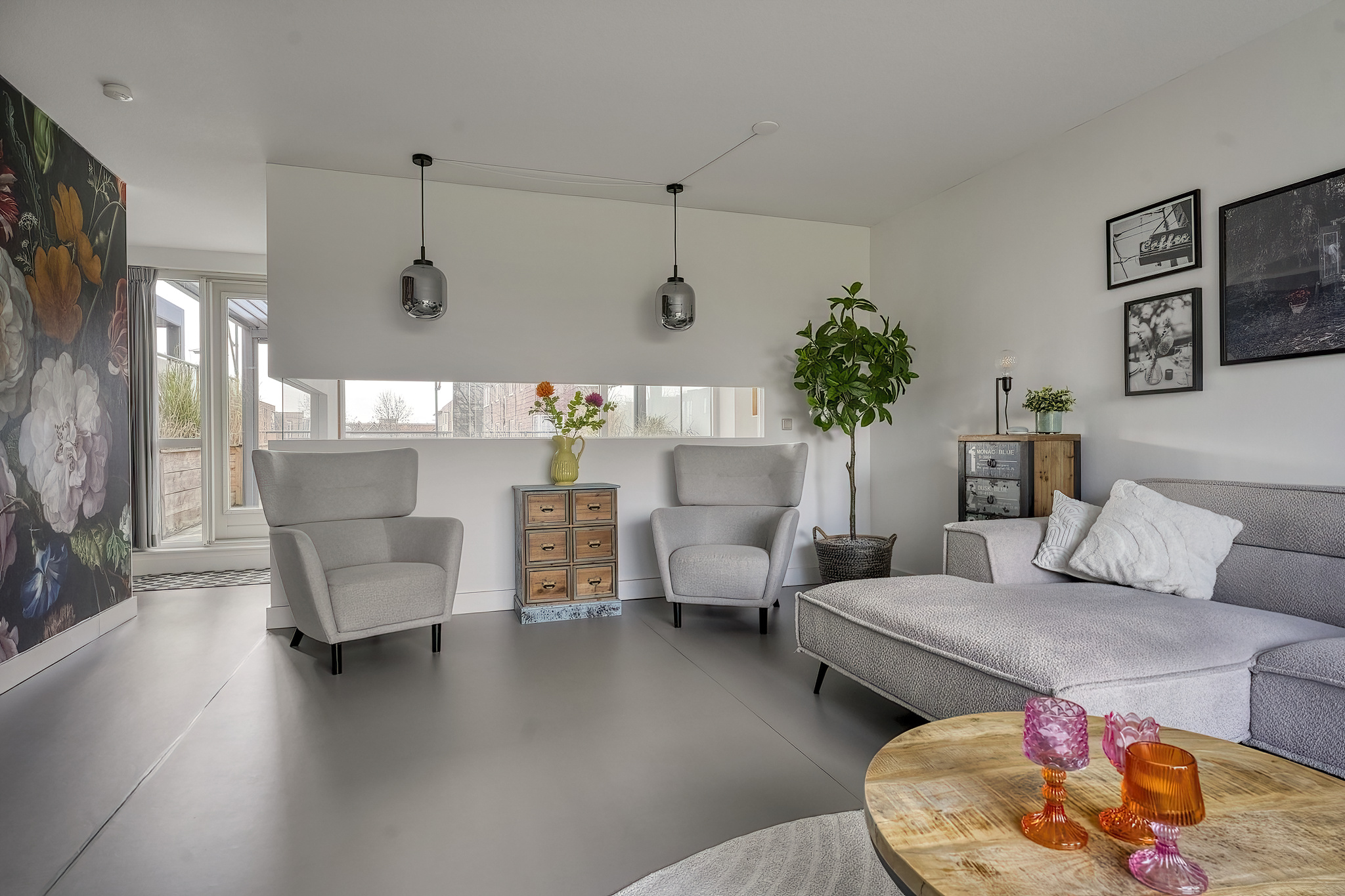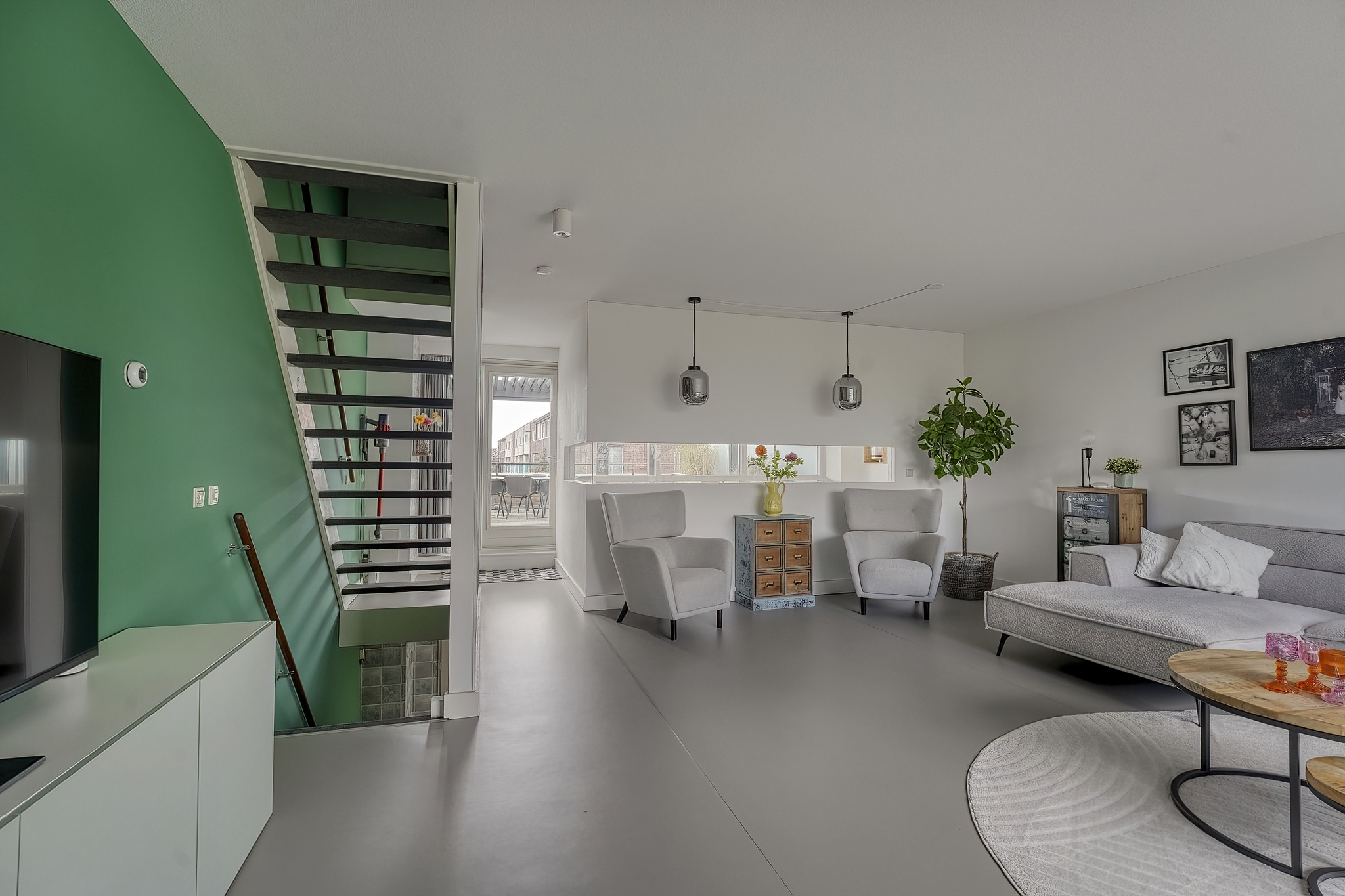 Op de eerste verdieping treft u de sfeervolle woonkamer met uitzicht op het park aan de achterzijde van de woning. Vanuit de woonkamer stapt u zo het royale dakterras aan de voorzijde op. De woonkamer is voorzien van airconditioning en biedt ruimte aan een grote, gezellige zithoek.