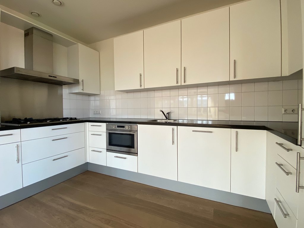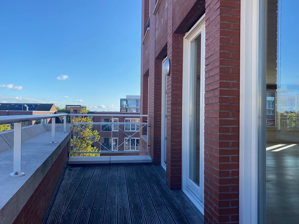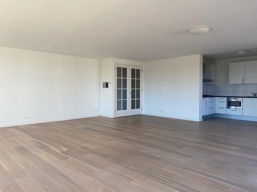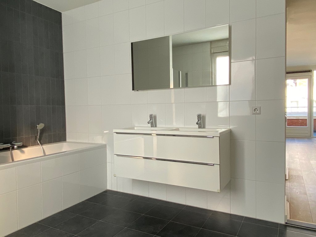 Entree, hal met garderoberuimte, toilet met fontein en toegang tot de inpandige berging met aansluitpunten was-/droogmachine. De master bedroom is heerlijk ruim (7.3 m x 4.2 m) en geeft u toegang tot de walk in closet en de (1e) luxe badkamer met dubbele wastafel in meubel, ligbad, inloopdouche, toilet en designradiator. De tweede slaapkamer is tevens mooi ruim (5.5 m x 3.5 m) en beschikt over een aangrenzende (2e) badkamer met wastafel en inloopdouche. De woonkamer en hal zijn met elkaar gescheiden d.m.v. dubbele deuren. De woonkamer is lekker licht en geeft u toegang tot het balkon. De halfopen U-vormige keuken is v.v. alle denkbare inbouwapparatuur en een natuurstenen aanrechtblad. Het gehele appartement is v.v. een parketvloer met vloerverwarming, hoge witte plinten en afgewerkte wanden. Het balkon is v.v. houten vlonders.