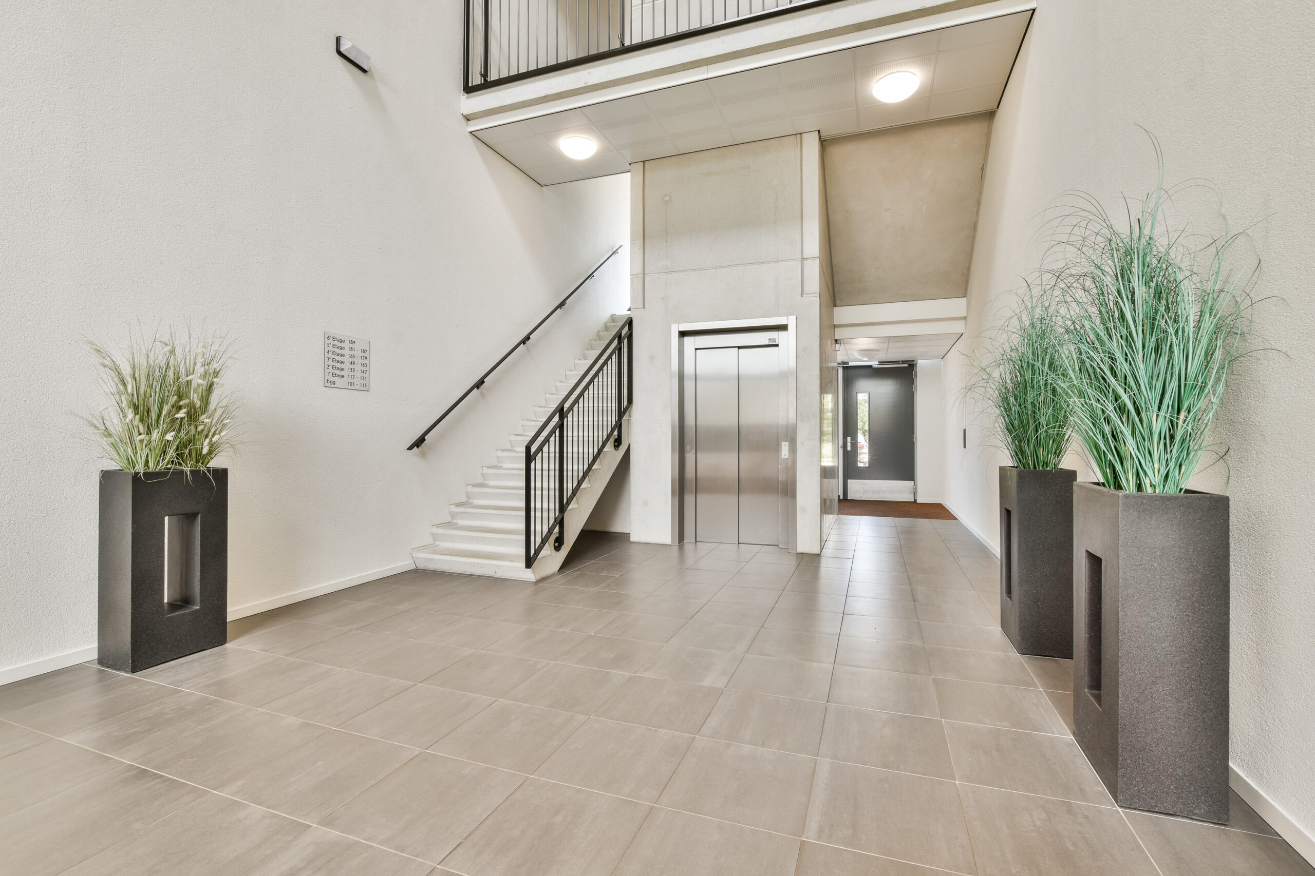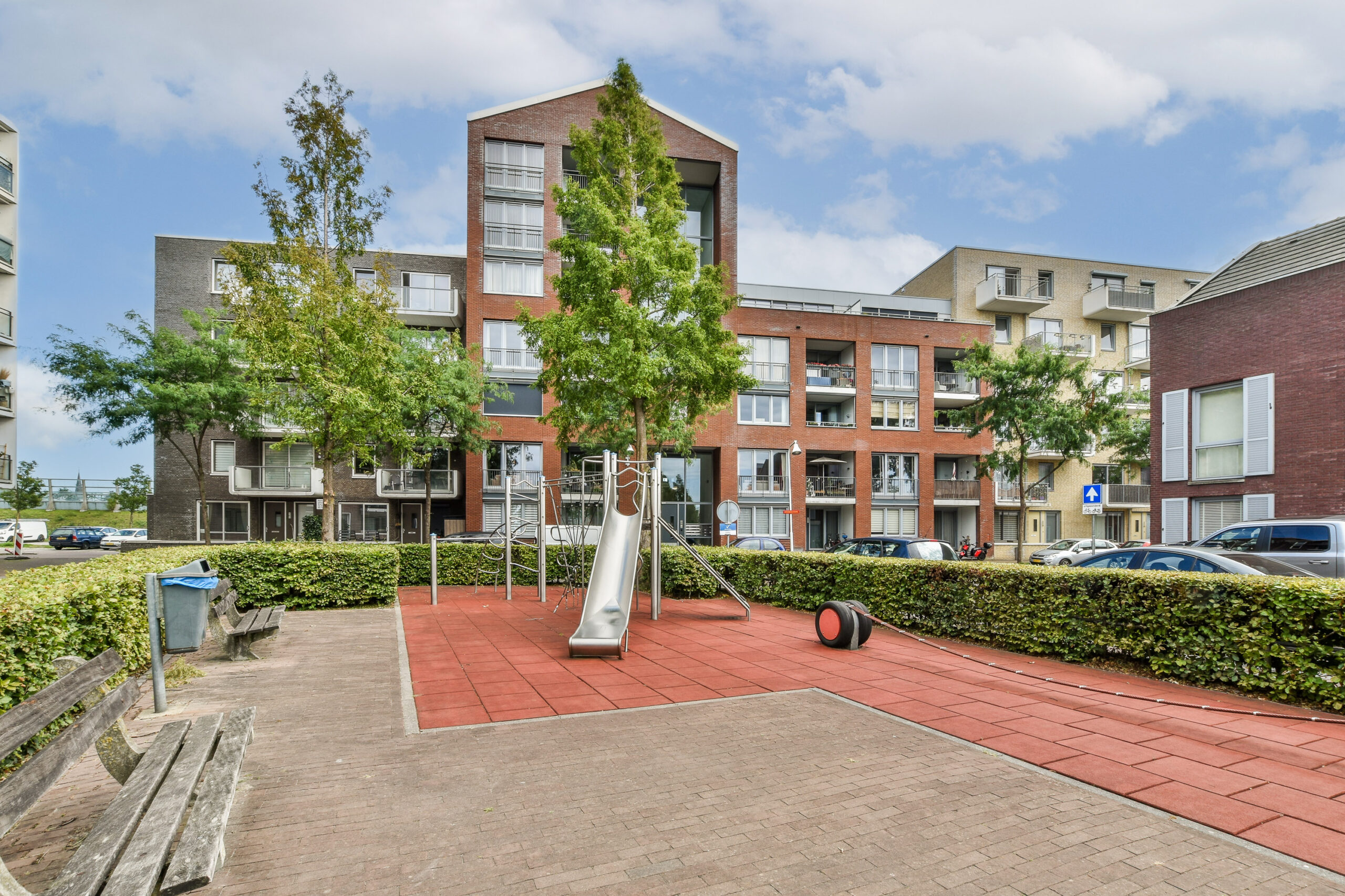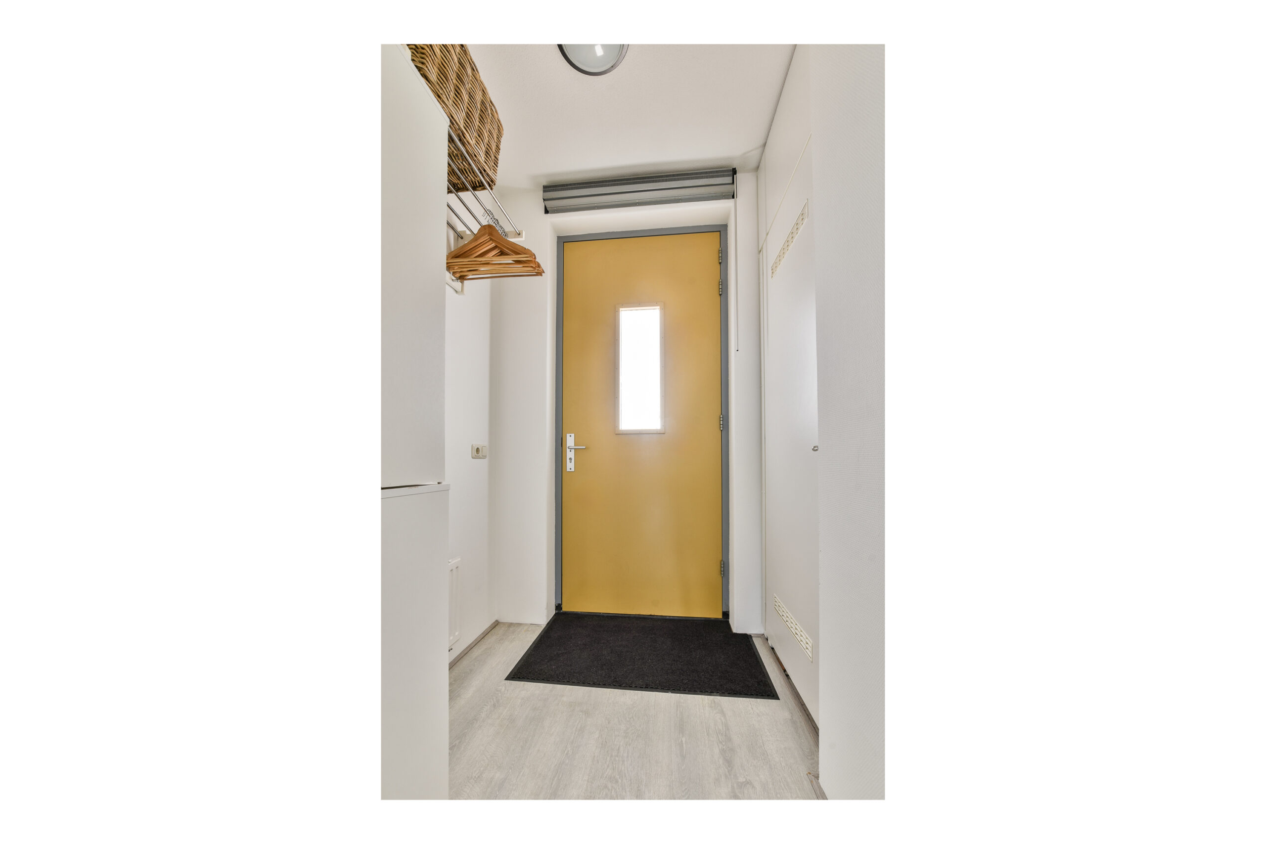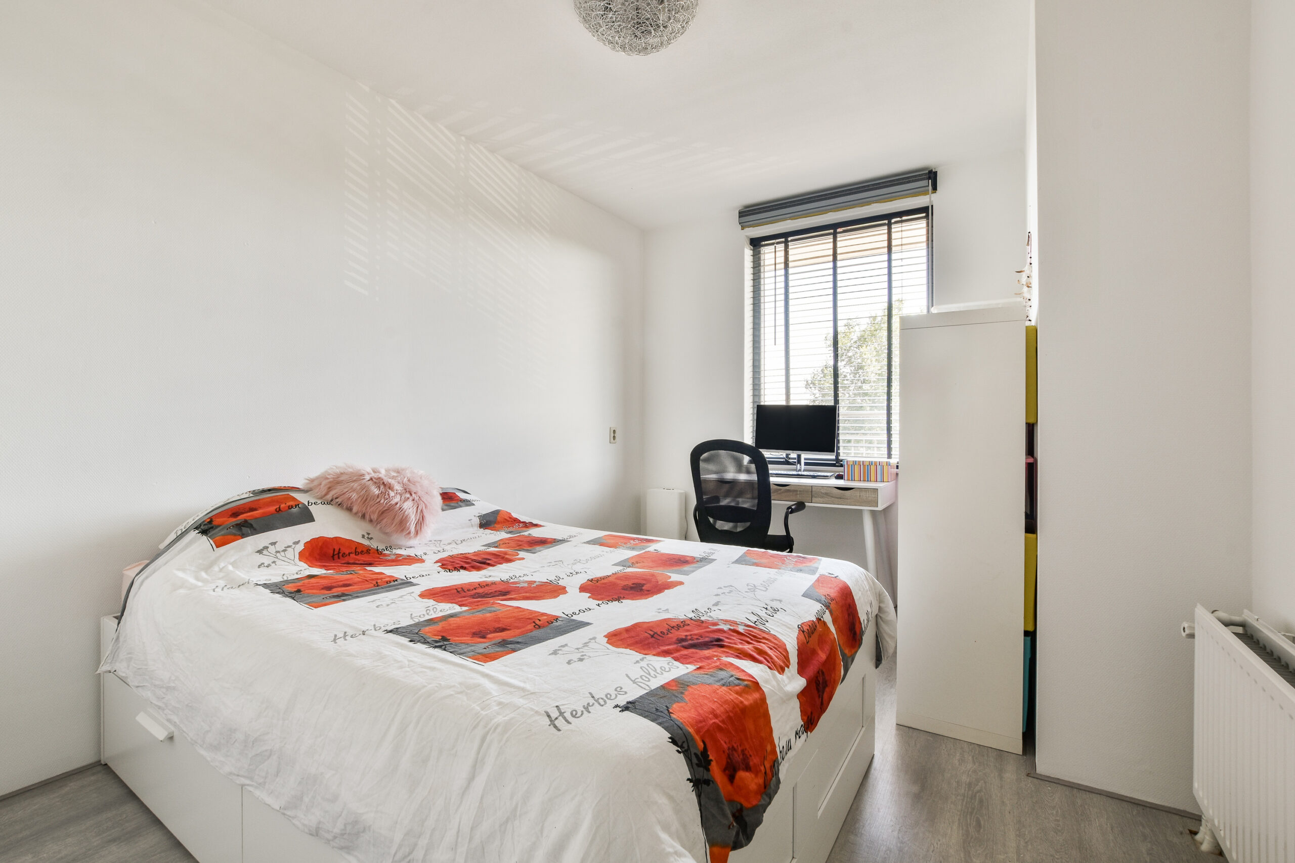De open keuken is praktisch geplaatst in een hoekopstelling. De keuken beschikt over diverse inbouwapparatuur, waaronder een kookplaat, afzuigkap, combioven, vaatwasser en een koel-/vriescombinatie. De twee slaapkamers liggen aan de voorzijde van de woning en zijn beiden ruim opgezet. De badkamer is ingericht met een inloopdouche, designradiator en een wastafelmeubel. De badkamer is geheel betegeld met neutrale grijs-witte betegeling en voorzien van mechanische ventilatie. Tegenover de badkamer ligt een separate toiletruimte met toilet en fonteintje. In de hal bevinden zich daarnaast nog twee inbouwkasten, een met de cv-opstelling en de tweede met de opstelplaats voor de wasmachine.