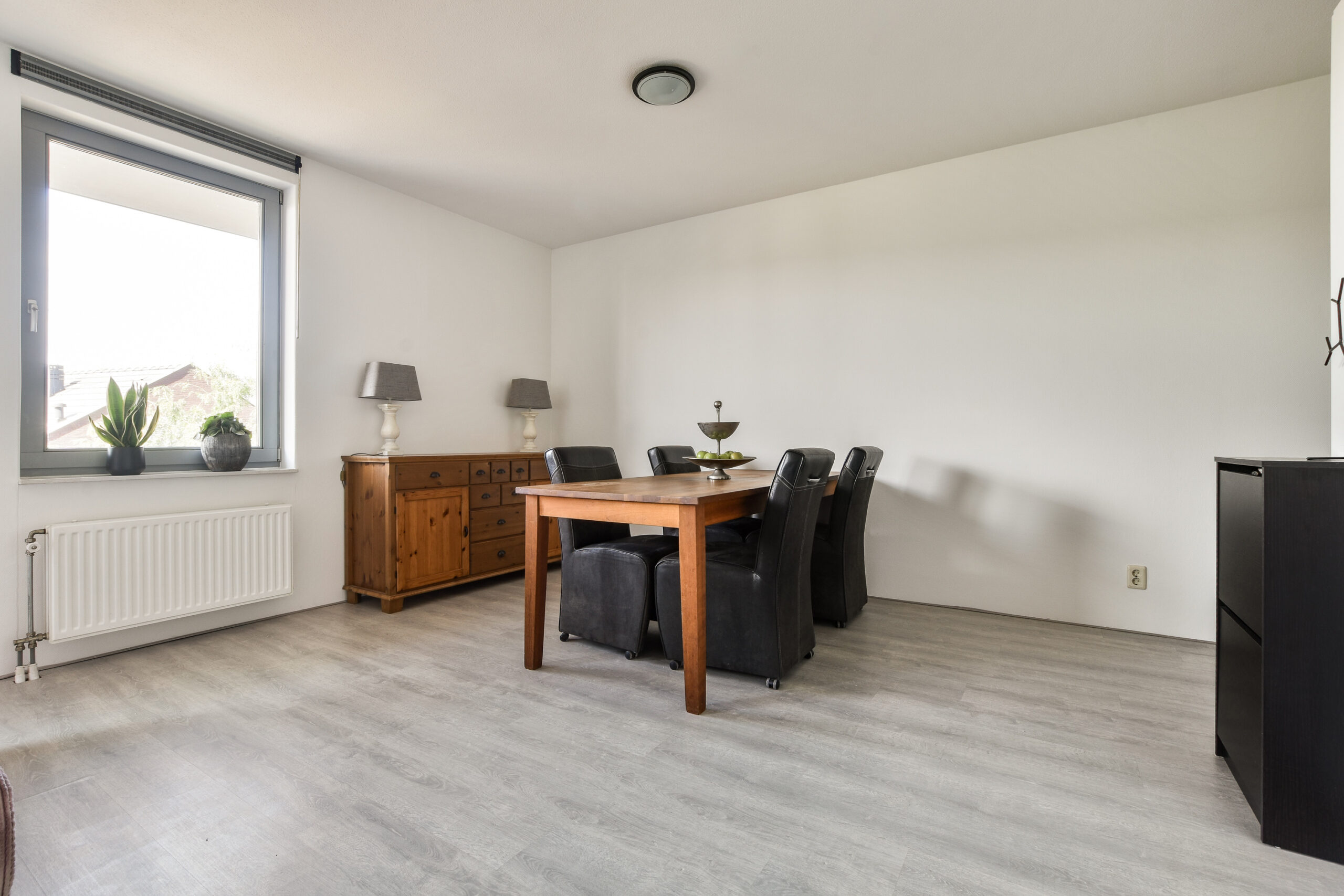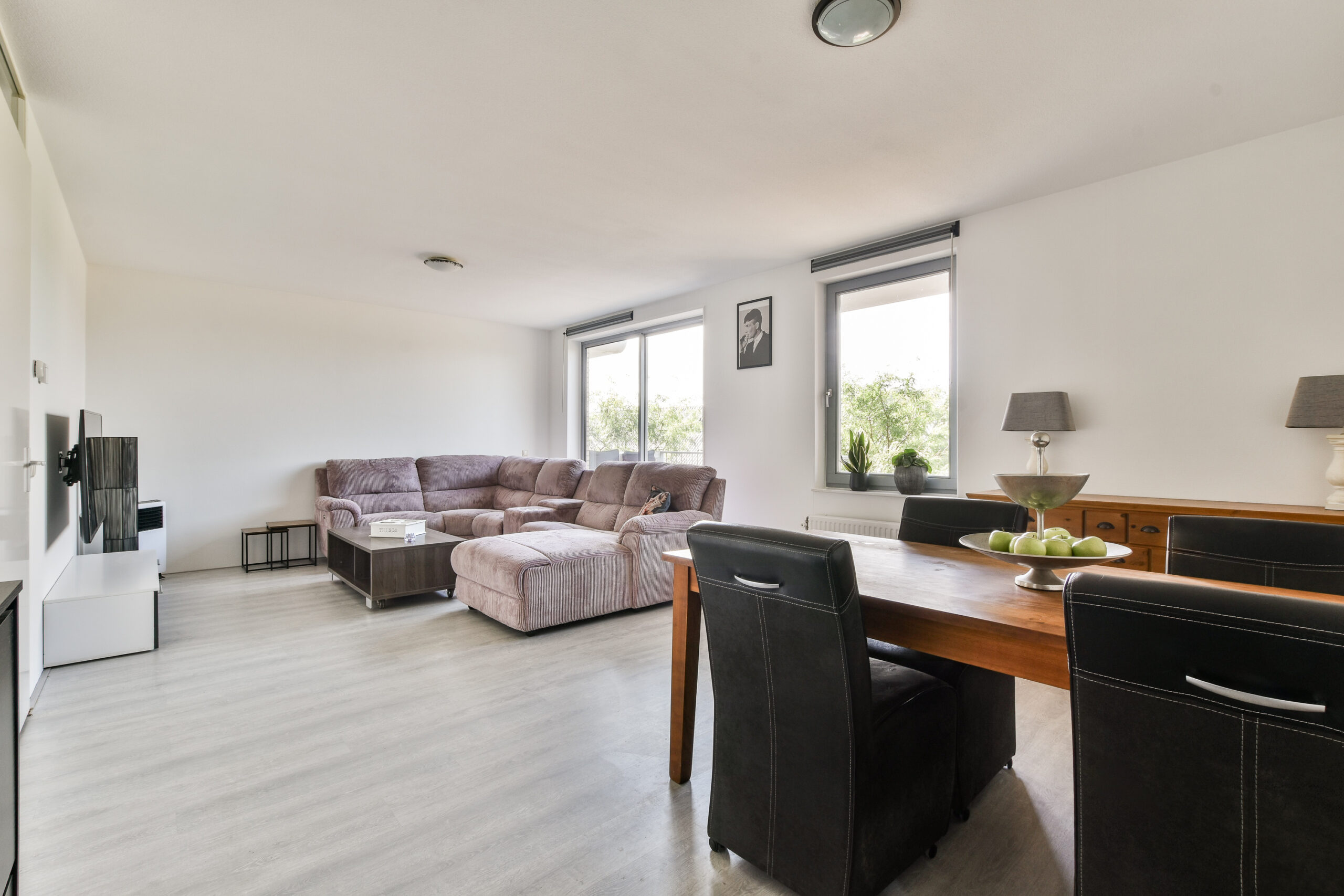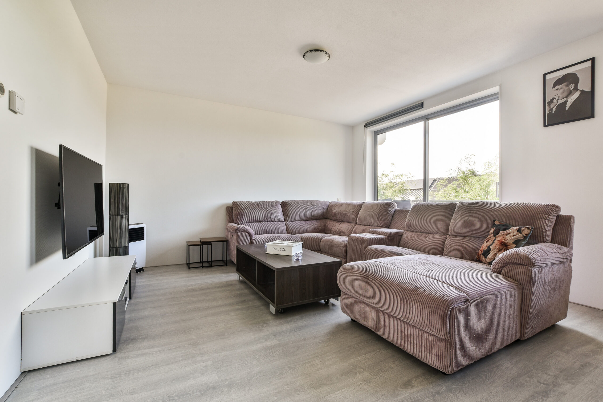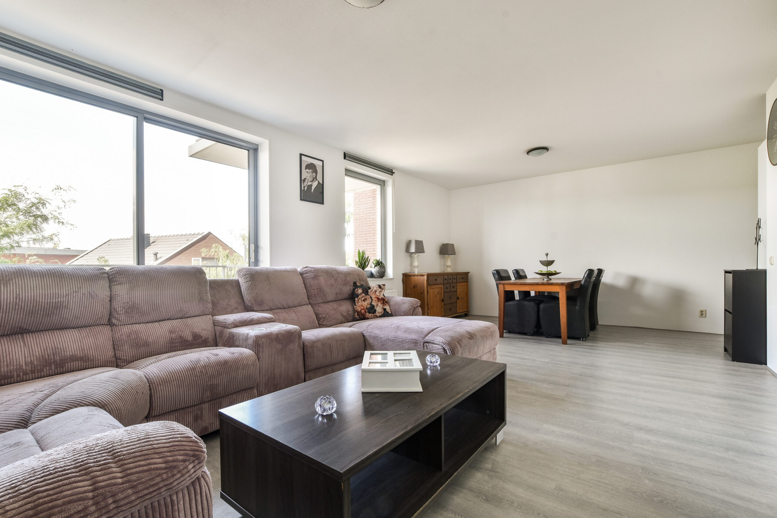 stapt u de centraal gelegen hal van het appartement in. Aan het einde van de hal ligt de royale woonkamer: een prettige en zonnige ruimte, die keurig is afgewerkt met een laminaatvloer. In de woonkamer heeft u alle mogelijkheden om een ruime zithoek en een grote eettafel te plaatsen. Een schuifpui geeft toegang tot het balkon, waar u kunt genieten van de middag- en avondzon.