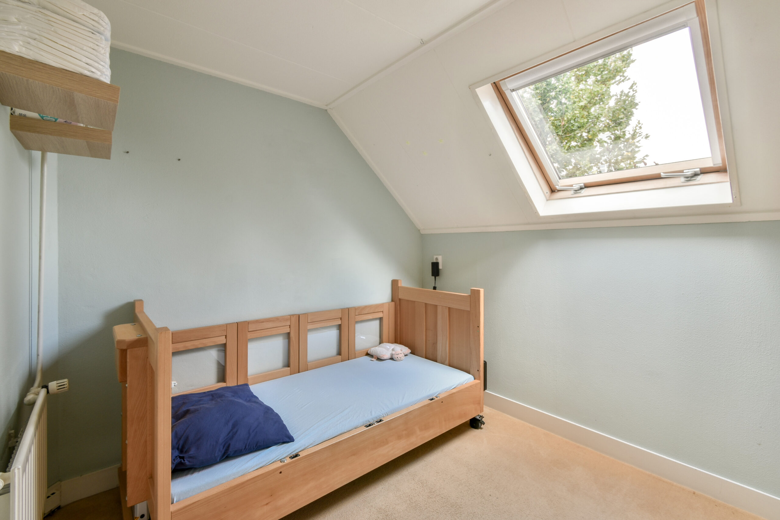 Via de trap bereikt u de eerste verdieping met drie slaapkamers. De ouderslaapkamer ligt aan de achterzijde van de woning samen met de moderne en licht uitgevoerde badkamer, welke veel lichtinval krijgt door het dakraam. De badkamer beschikt over een heerlijk ligbad, ruime douche, toilet, wastafelmeubel en een handdoekradiator. De andere slaapkamers zijn aan de voorzijde gesitueerd.
