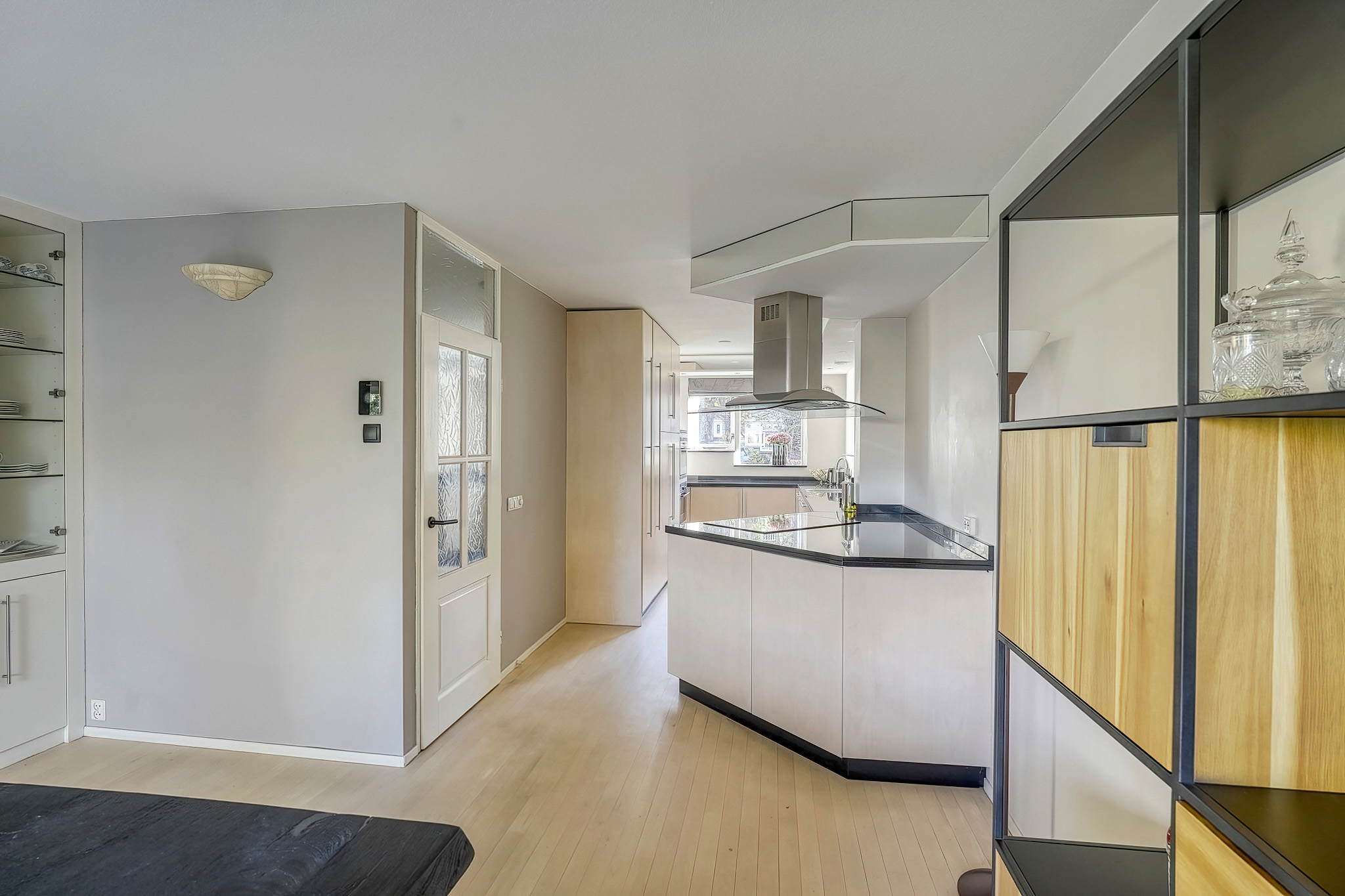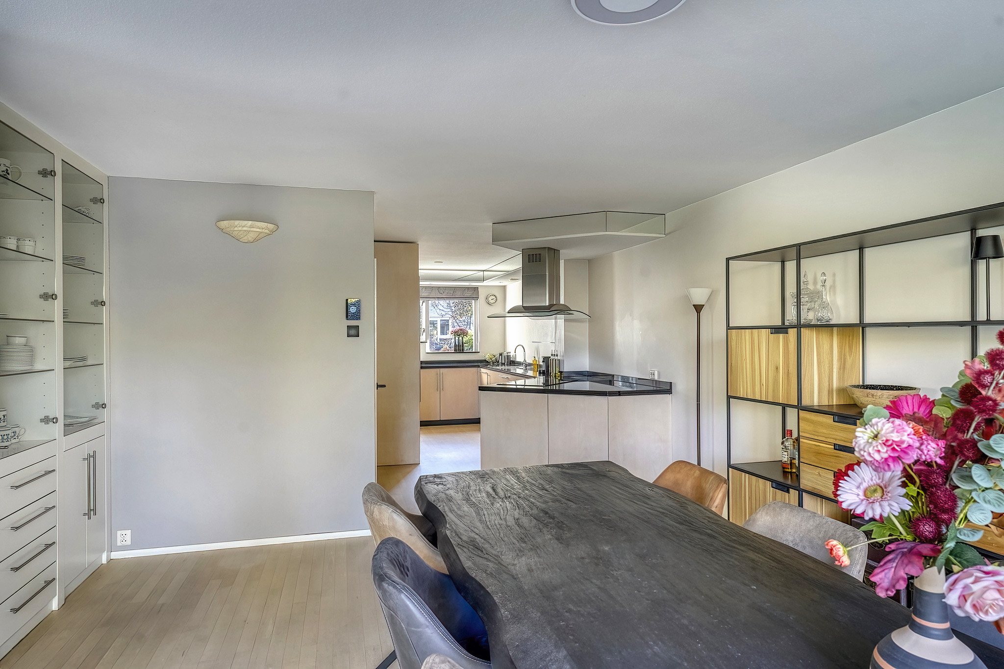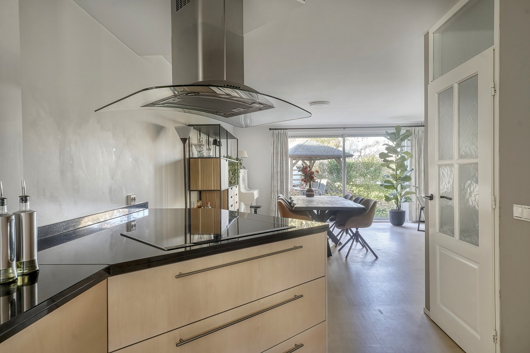 De maatwerkkeuken, vervaardigd door meubelmaker Koompatoo, vormt het hart van de woning. Met een centraal kookschiereiland, apothekerskasten, softclose lades en hoogwaardige inbouwapparatuur (inductiekookplaat, oven, combi-magnetron, afzuigkap, vaatwasser, koelkast en vriezer) is dit een heerlijke plek voor de kookliefhebber. Dankzij de boiler heeft u bovendien direct warm water.