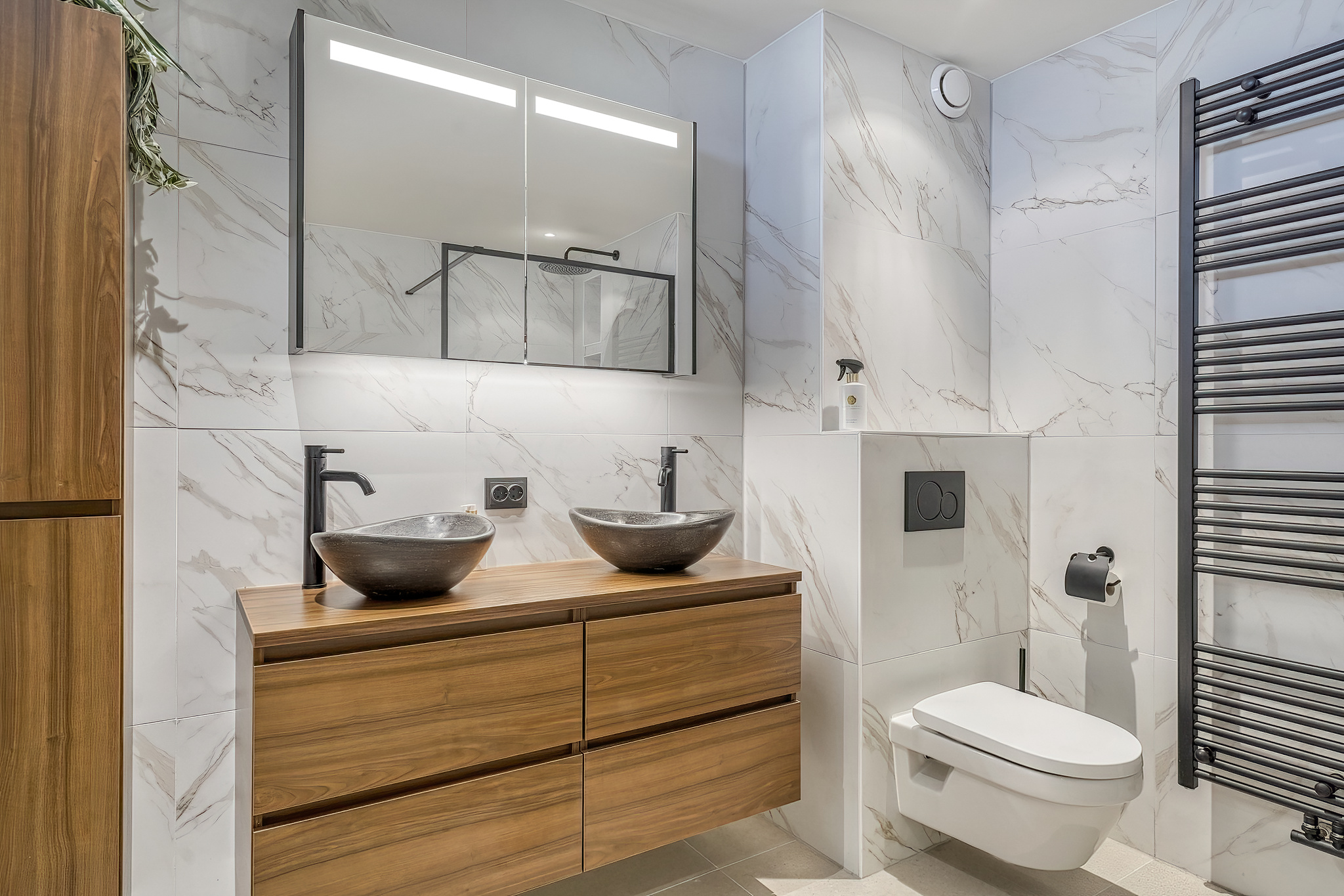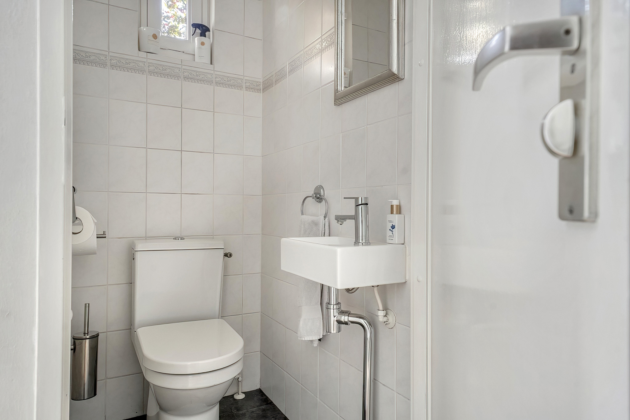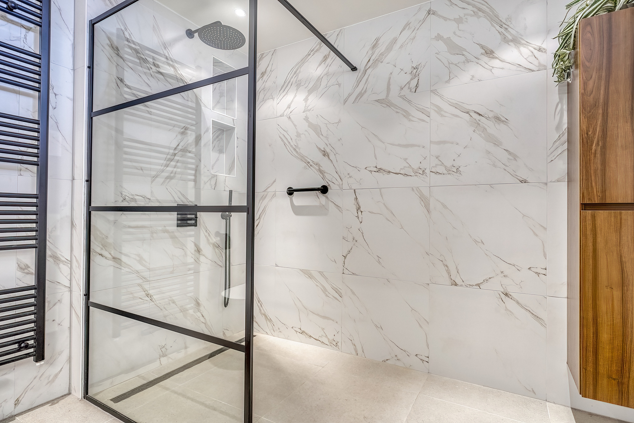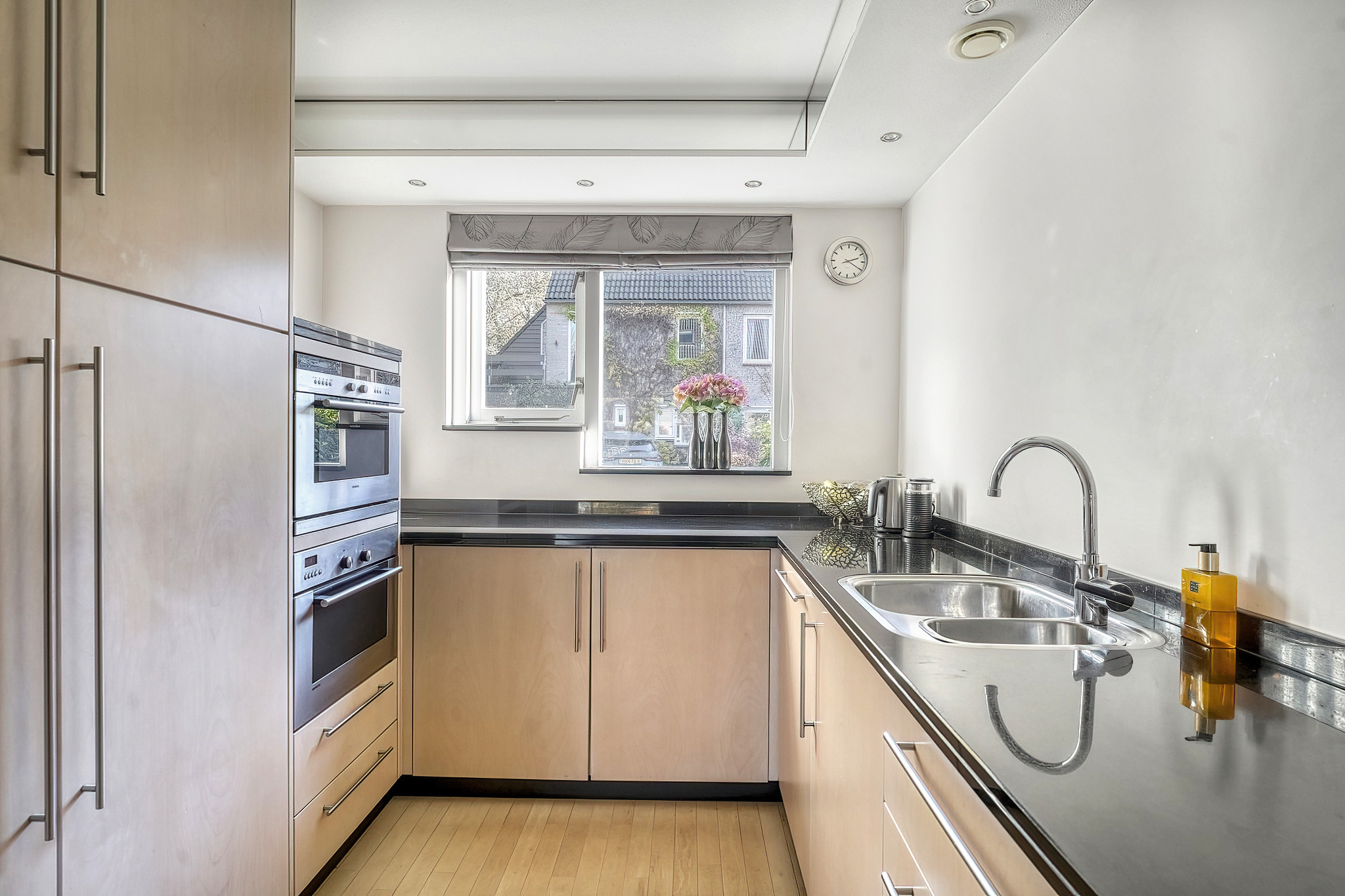 De maatwerkkeuken, vervaardigd door meubelmaker Koompatoo, vormt het hart van de woning. Met een centraal kookschiereiland, apothekerskasten, softclose lades en hoogwaardige inbouwapparatuur (inductiekookplaat, oven, combi-magnetron, afzuigkap, vaatwasser, koelkast en vriezer) is dit een heerlijke plek voor de kookliefhebber. Dankzij de boiler heeft u bovendien direct warm water.