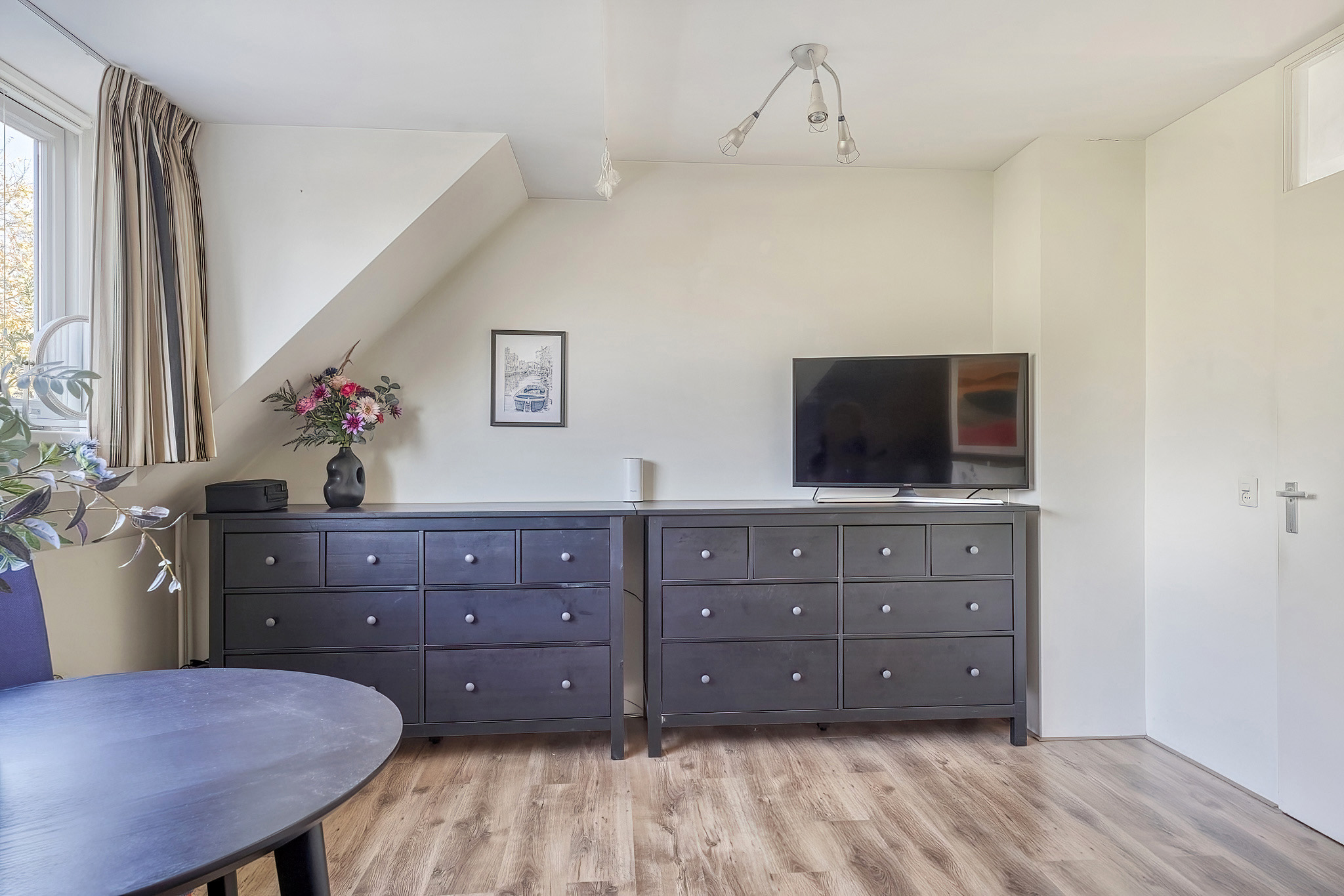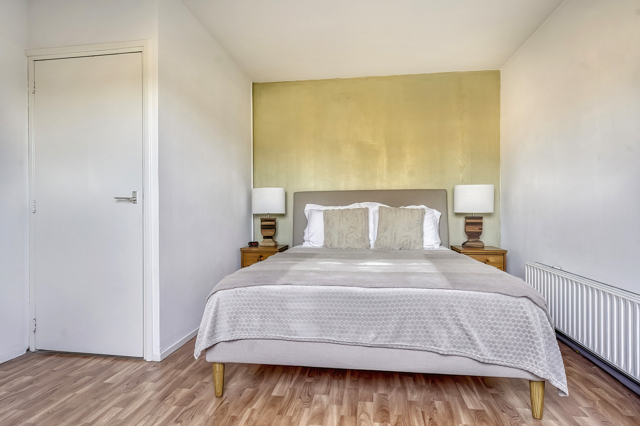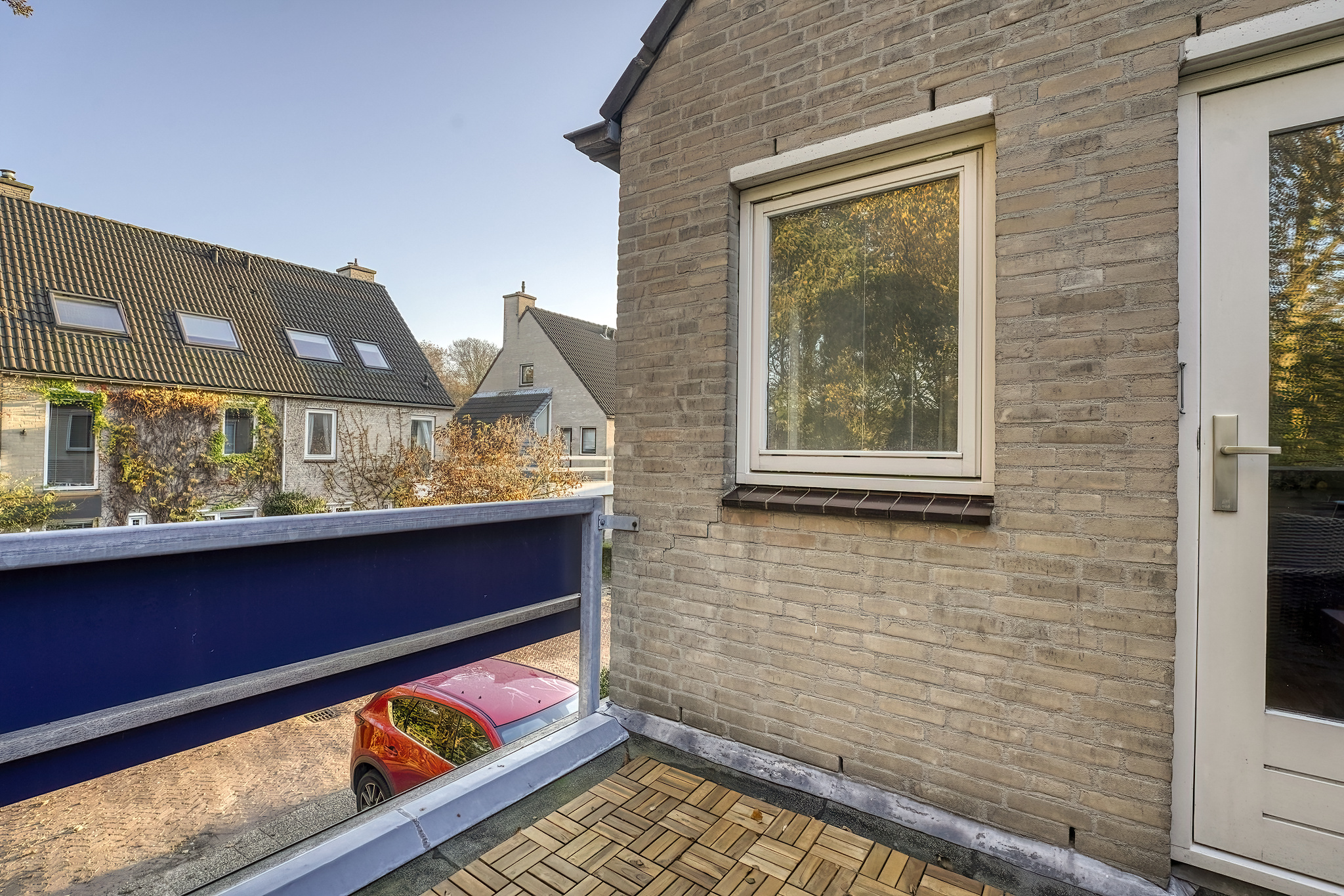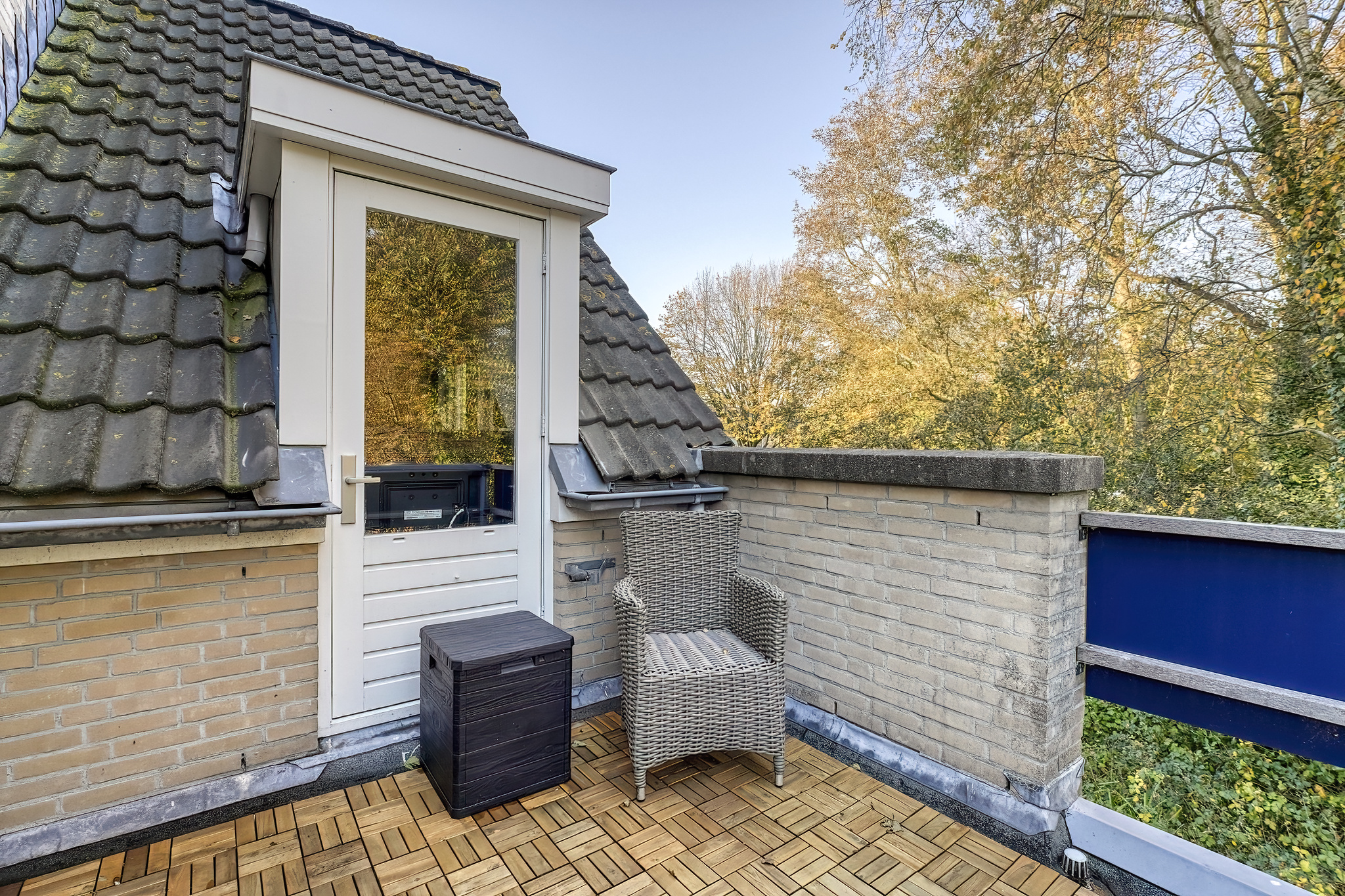 De ruime overloop biedt toegang tot drie slaapkamers en de badkamer. Aan de voorzijde bevindt zich een royale slaapkamer met een vaste kast en toegang tot het balkon. Een heerlijke plek om te genieten van de ochtendzon. De moderne badkamer (volledig vernieuwd in 2023) is uitgerust met een extra brede inloopdouche, tweede toilet, dubbele wastafel met meubel, vloerverwarming en designradiator. Aan de achterzijde ligt nog een ruime slaapkamer met dakkapel en een vaste kastenwand. De kamer boven de voormalige garage heeft eveneens toegang tot het balkon en extra bergruimte achter de verhoogde knieschotten.