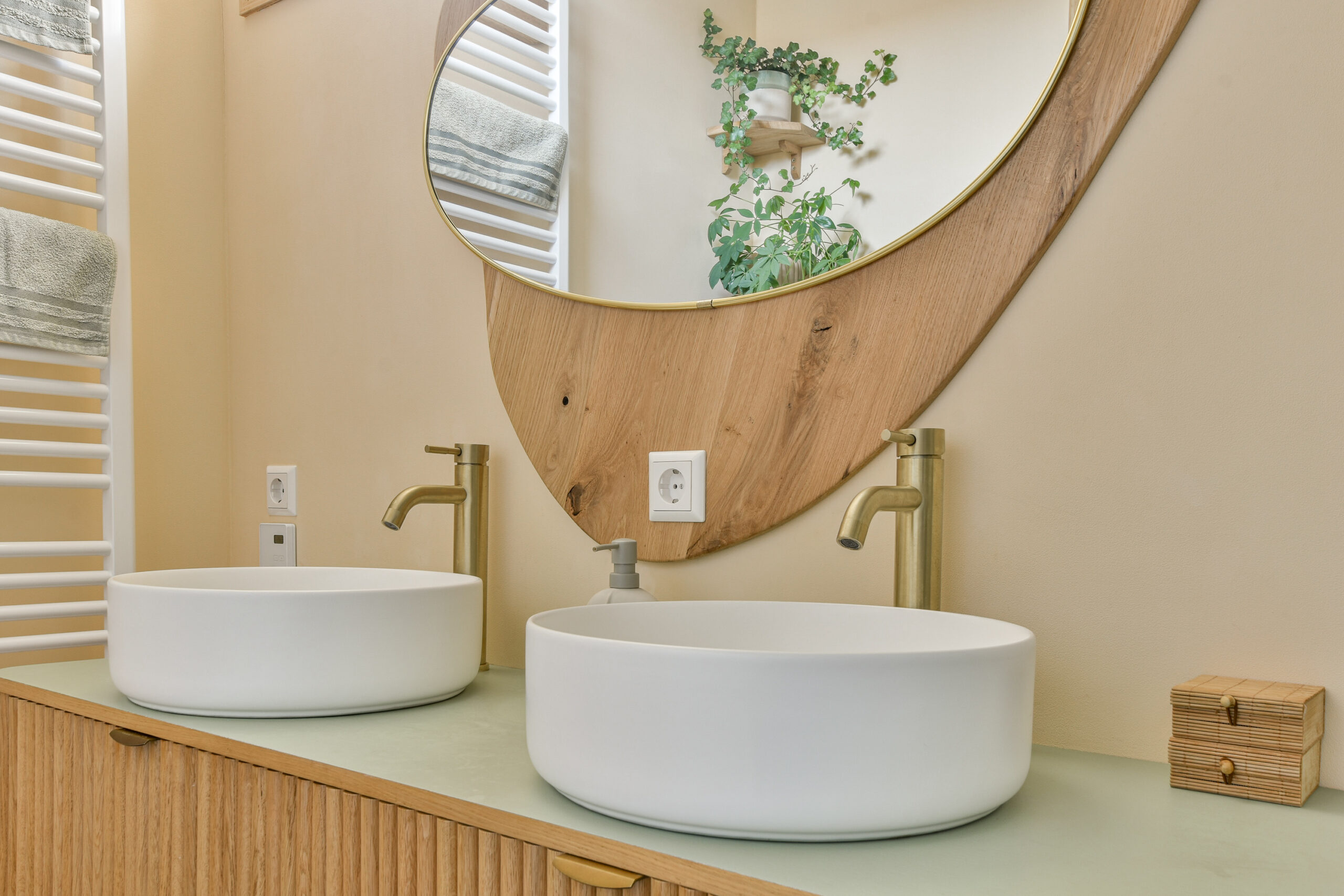 De stijlvolle badkamer is een echte blikvanger: met inloopdouche (hand- en regendouche), tweede toilet, designradiator en dubbel wastafelmeubel met veel bergruimte. Ook boven ligt een lamelparketvloer met vloerverwarming in alle kamers.