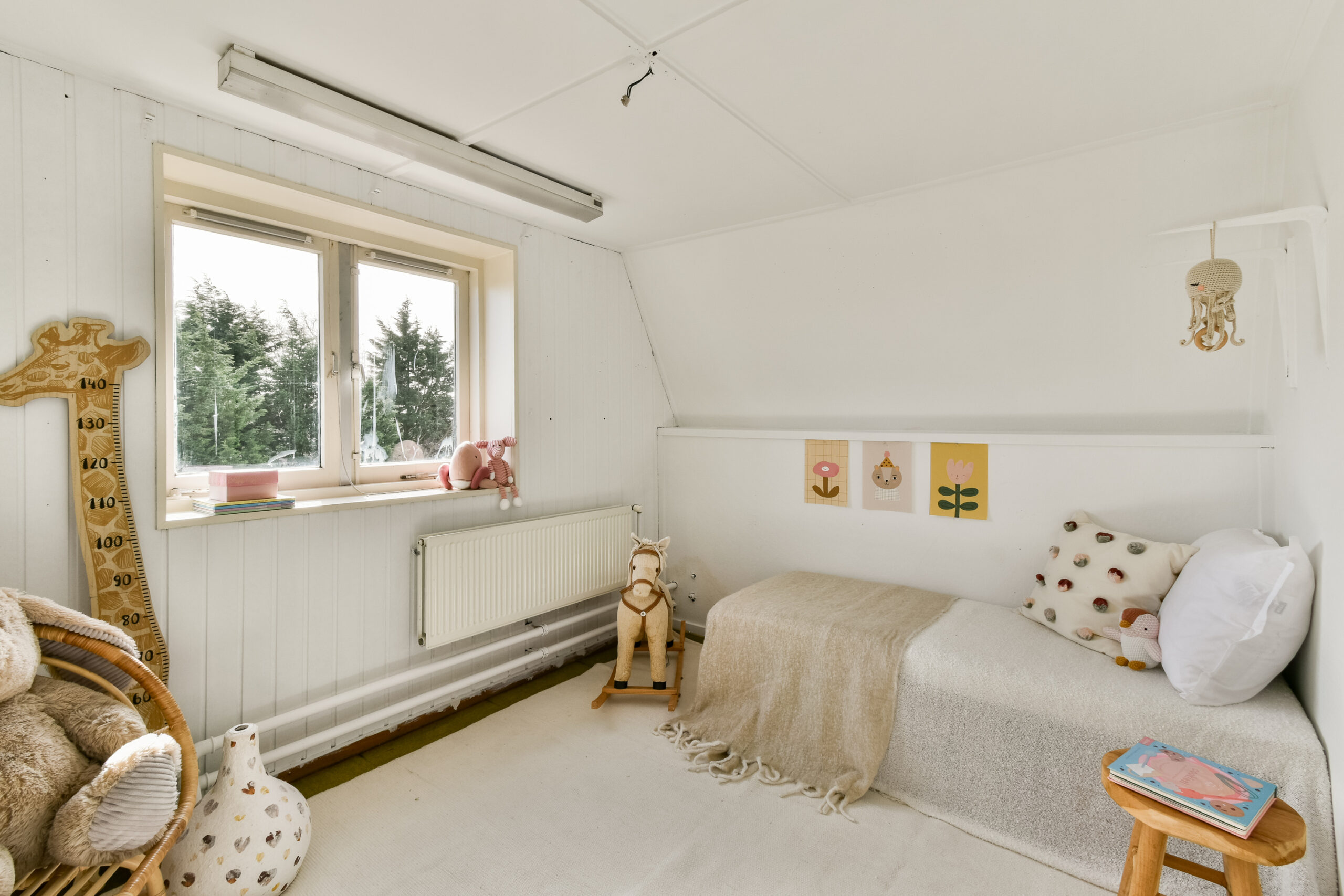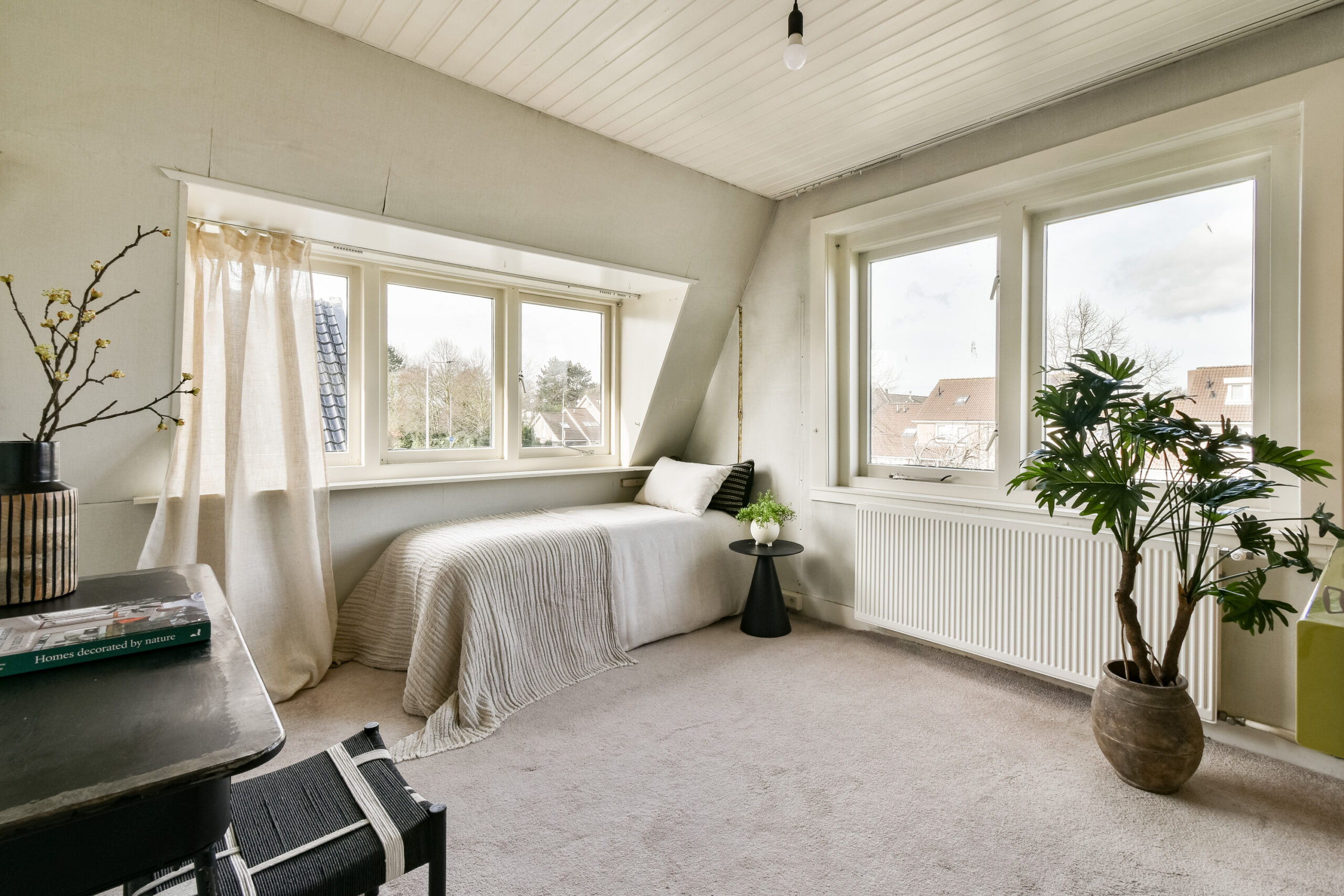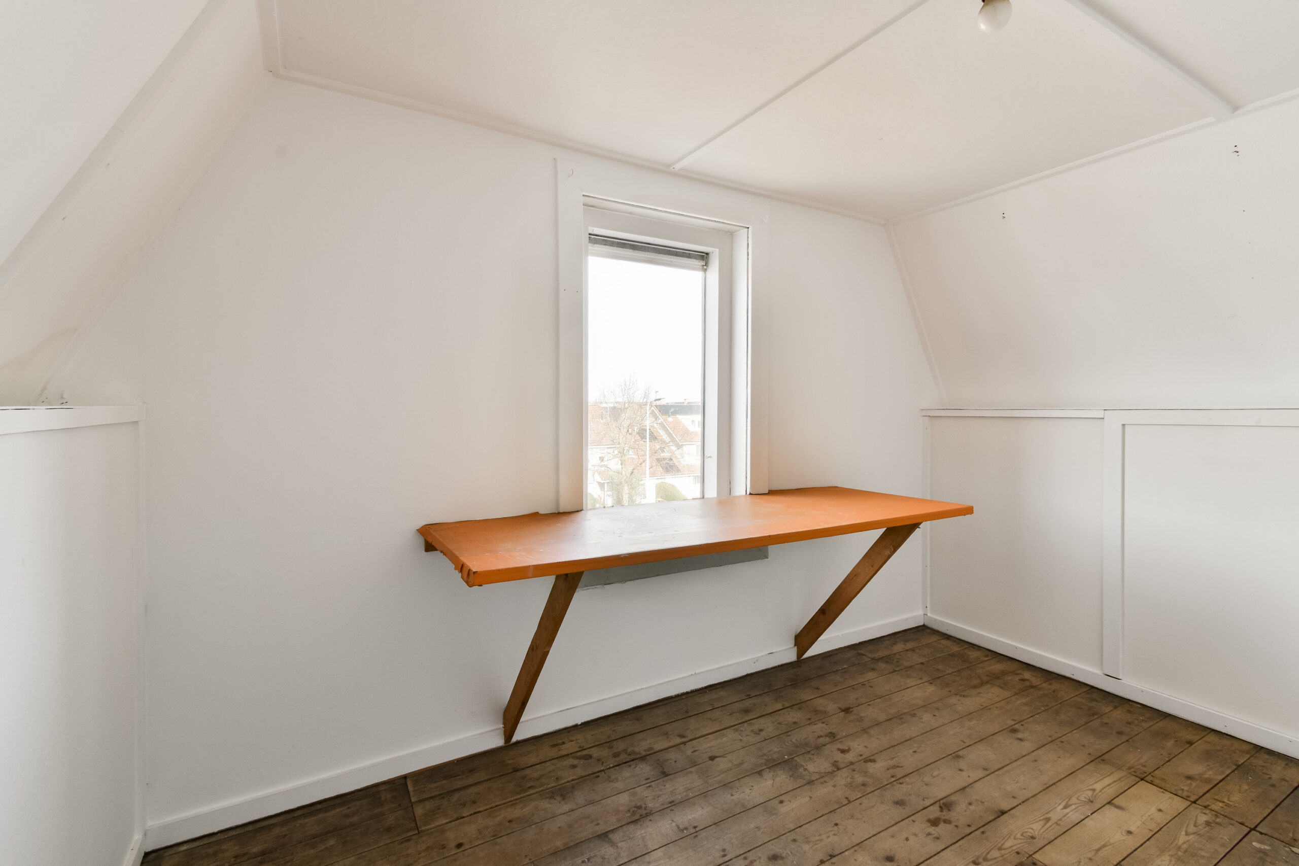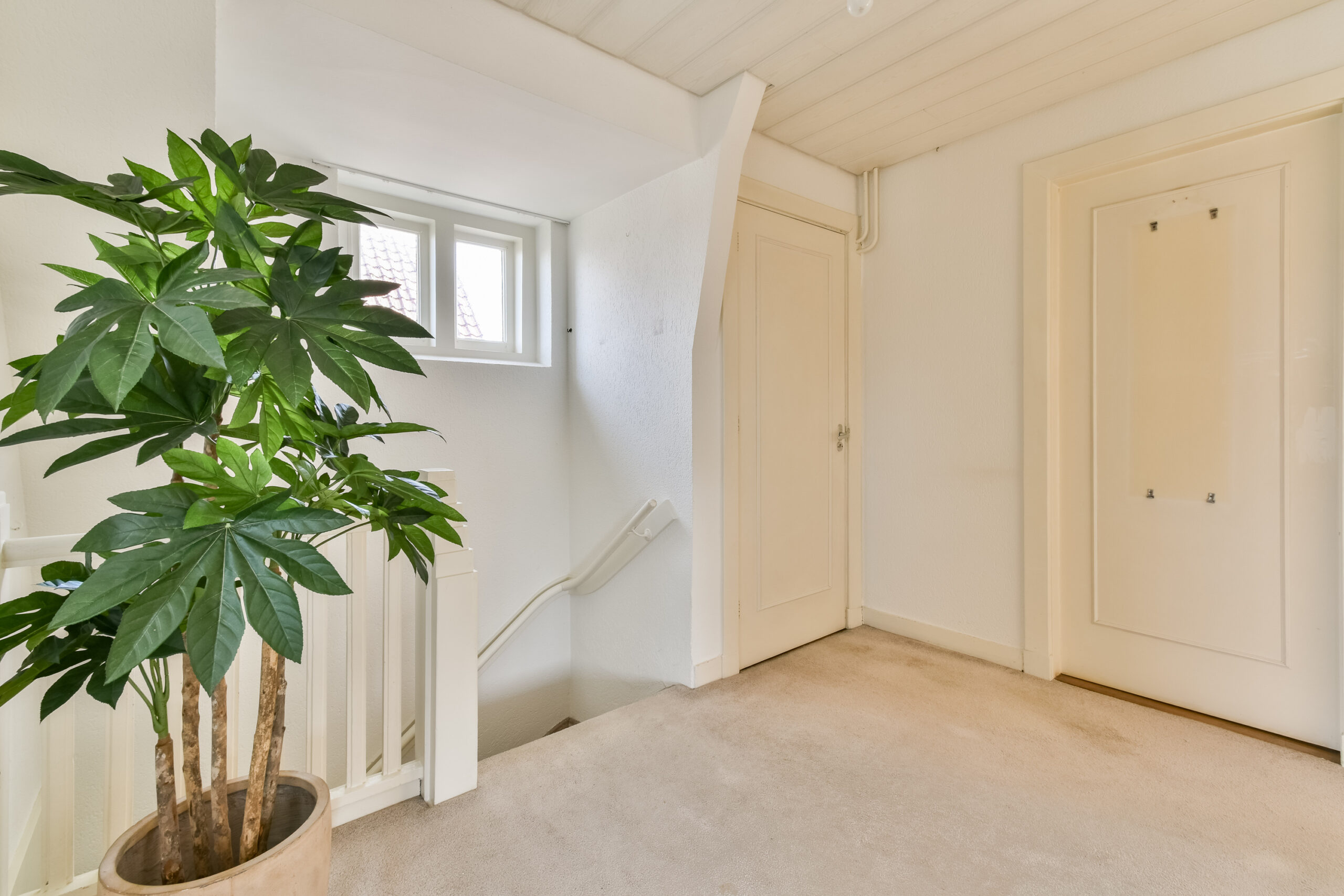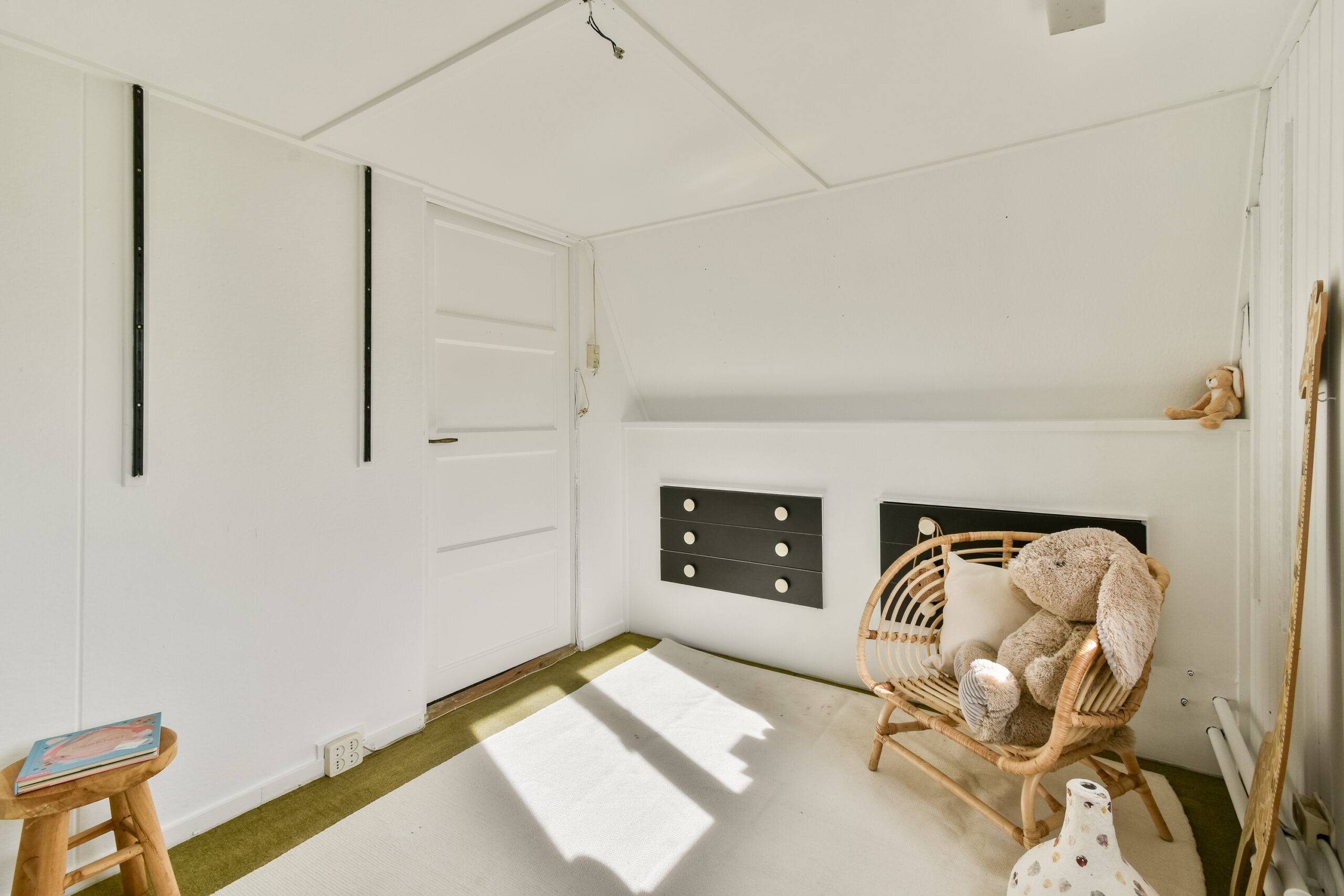 De tweede verdieping biedt nog eens twee kamers die uitstekend gebruikt kunnen worden als kinder-, werk- of hobbykamer. Op de overloop bevinden zich de aansluitingen voor wasmachine en droger, het boilervat en twee vaste kasten. Daarnaast is er via een luik toegang tot een ruime bergvliering van circa 8,55 bij 2 meter.