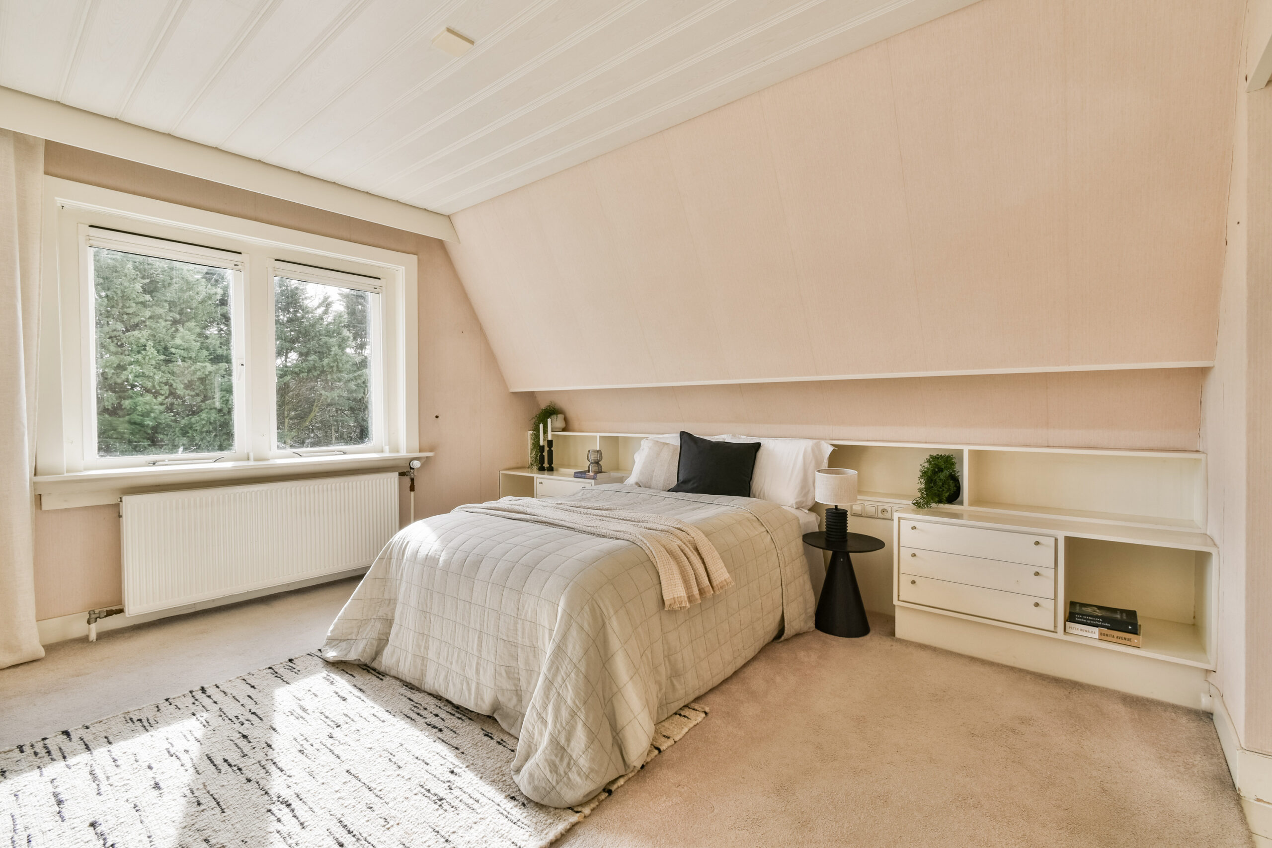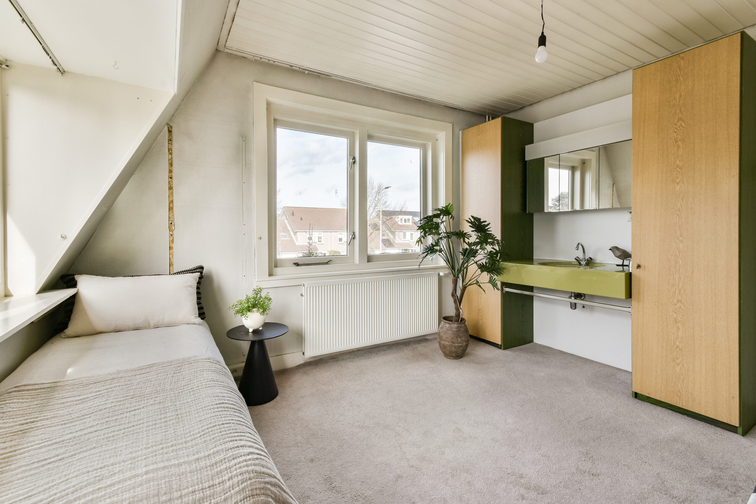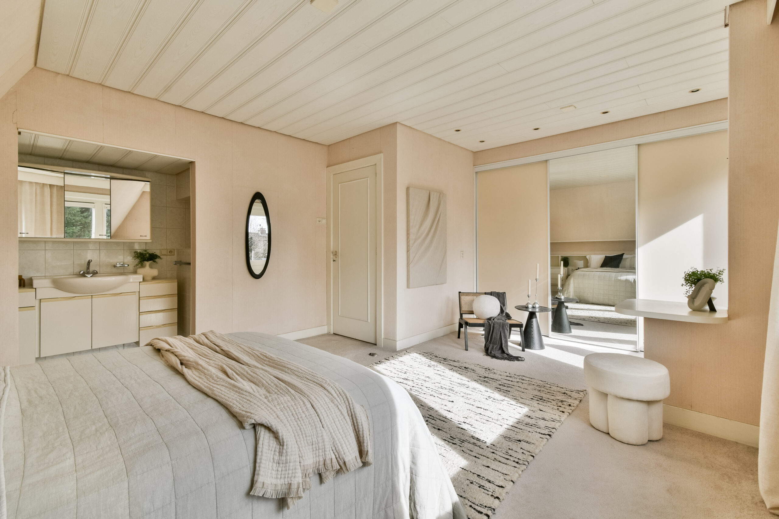 royale hoofdslaapkamer aan de achterzijde is ontstaan uit twee kamers en biedt daardoor veel ruimte. De kamer beschikt over een vaste kast met schuifdeuren, een wastafelmeubel en een deur naar het balkon op het zuidoosten. Hier kunt u in alle rust de dag beginnen met een kop koffie in de ochtendzon. Aan de voorzijde bevindt zich een tweede ruime slaapkamer met een eigen wastafel.