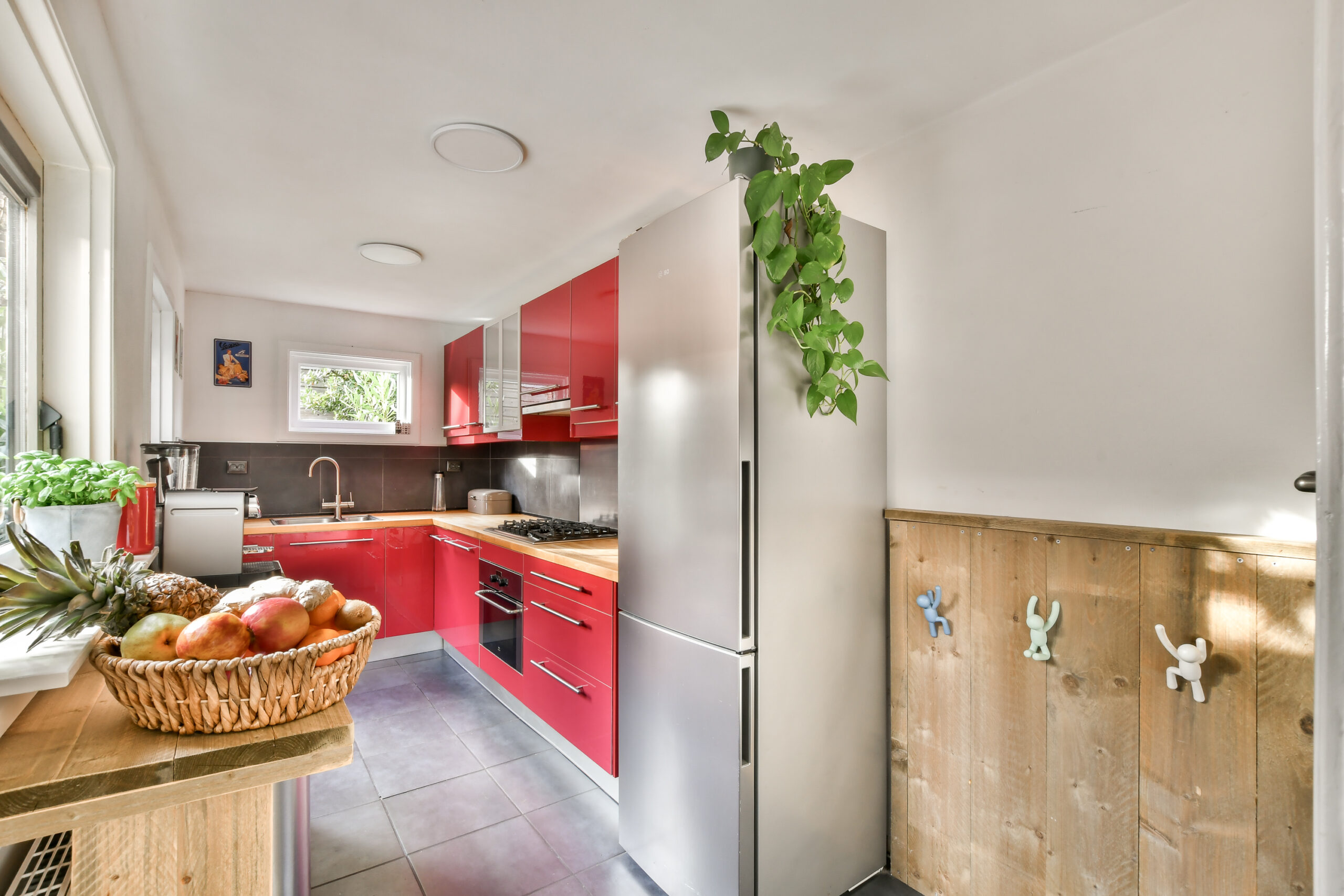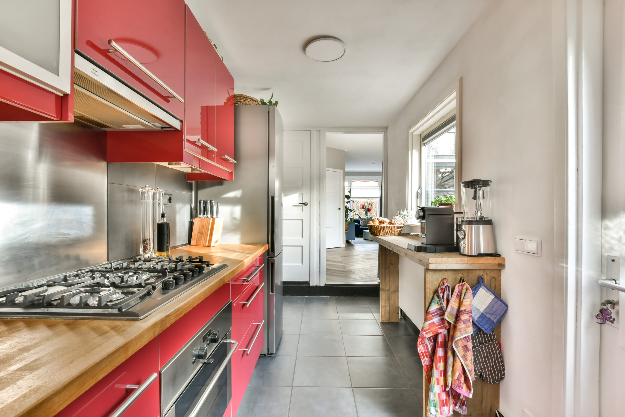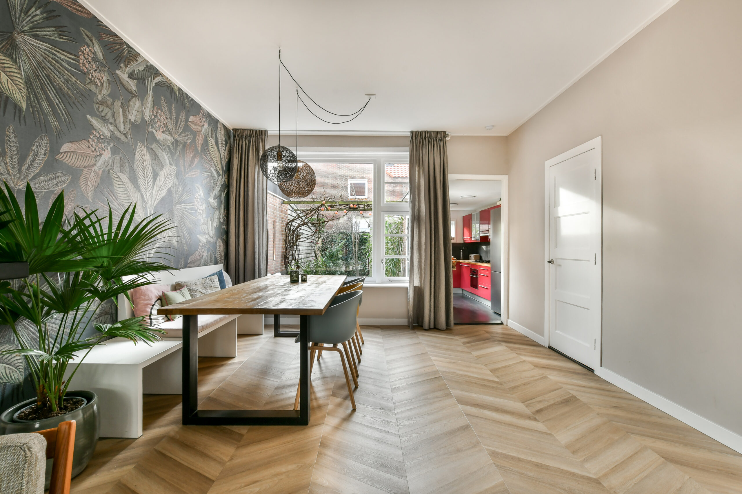 De keuken is geplaatst in een uitbouw en uitgevoerd met een 5-pits gaskookplaat, afzuigkap, vaatwasmachine, 1 1/2e spoelbak en een combioven. Toiletruimte. Vanuit de keuken heeft u toegang tot de gezellige achtertuin met pergola, achterom en grote houten berging.