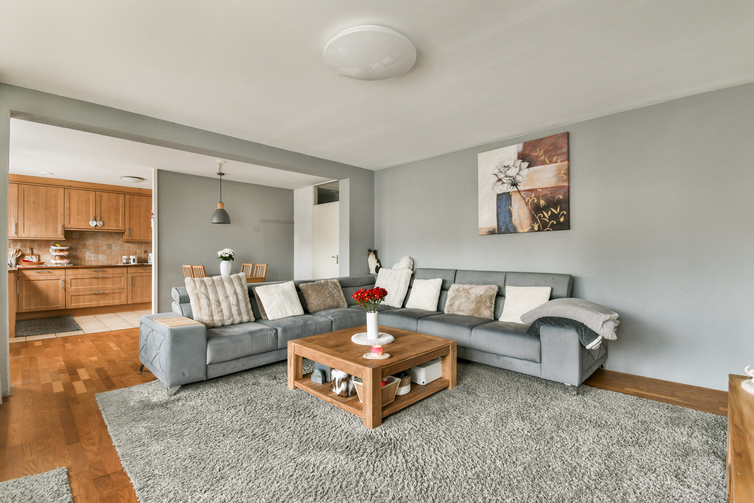 Entree voorzien van een bellentableau en brievenbussen. Hal met toegang naar de 3 slaapkamers en uiteraard de woonkamer. Hier is een ruim opgezette zithoek aanwezig welke toegang biedt via de openslaande deuren naar de voortuin waar u geniet van de avond zon.