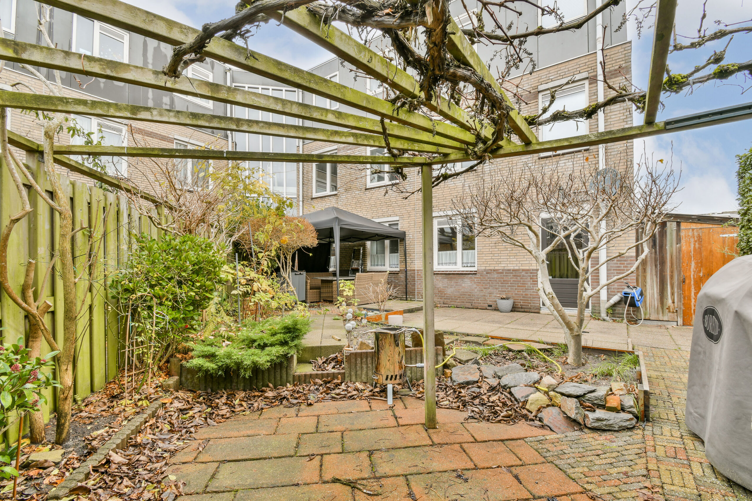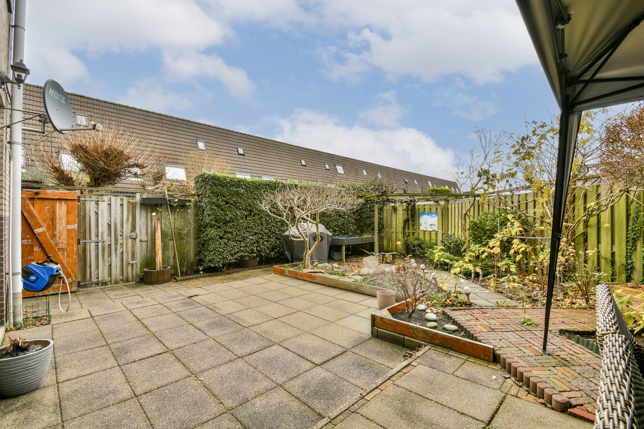 Bent u graag buiten? Dan is dit perfect voor u, de grote achtertuin biedt veel mogelijkheden! Daarnaast is er aan de zijkant van het appartement een langwerpige externe houten berging te vinden waar u nog eens veel spullen kwijt kunt.