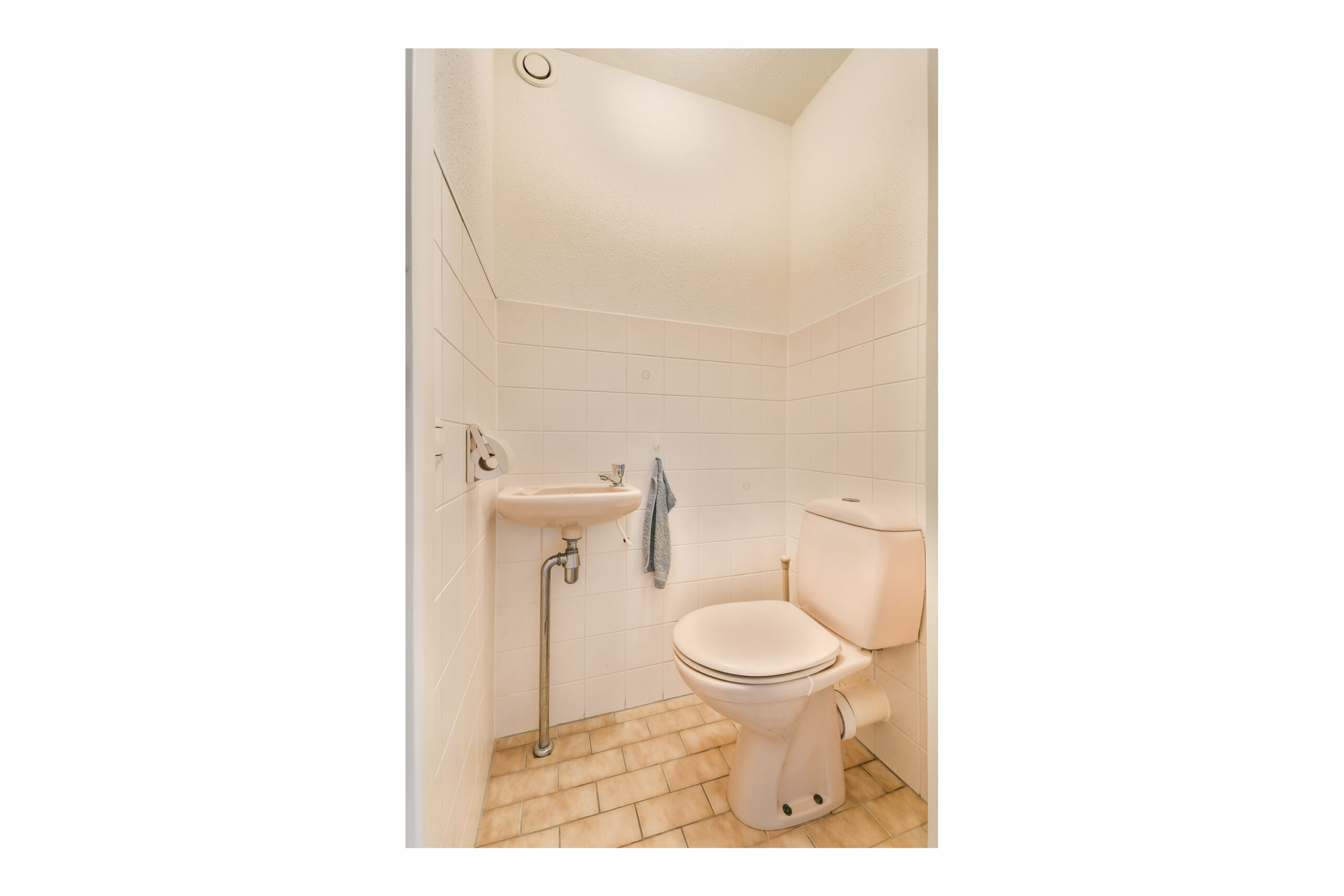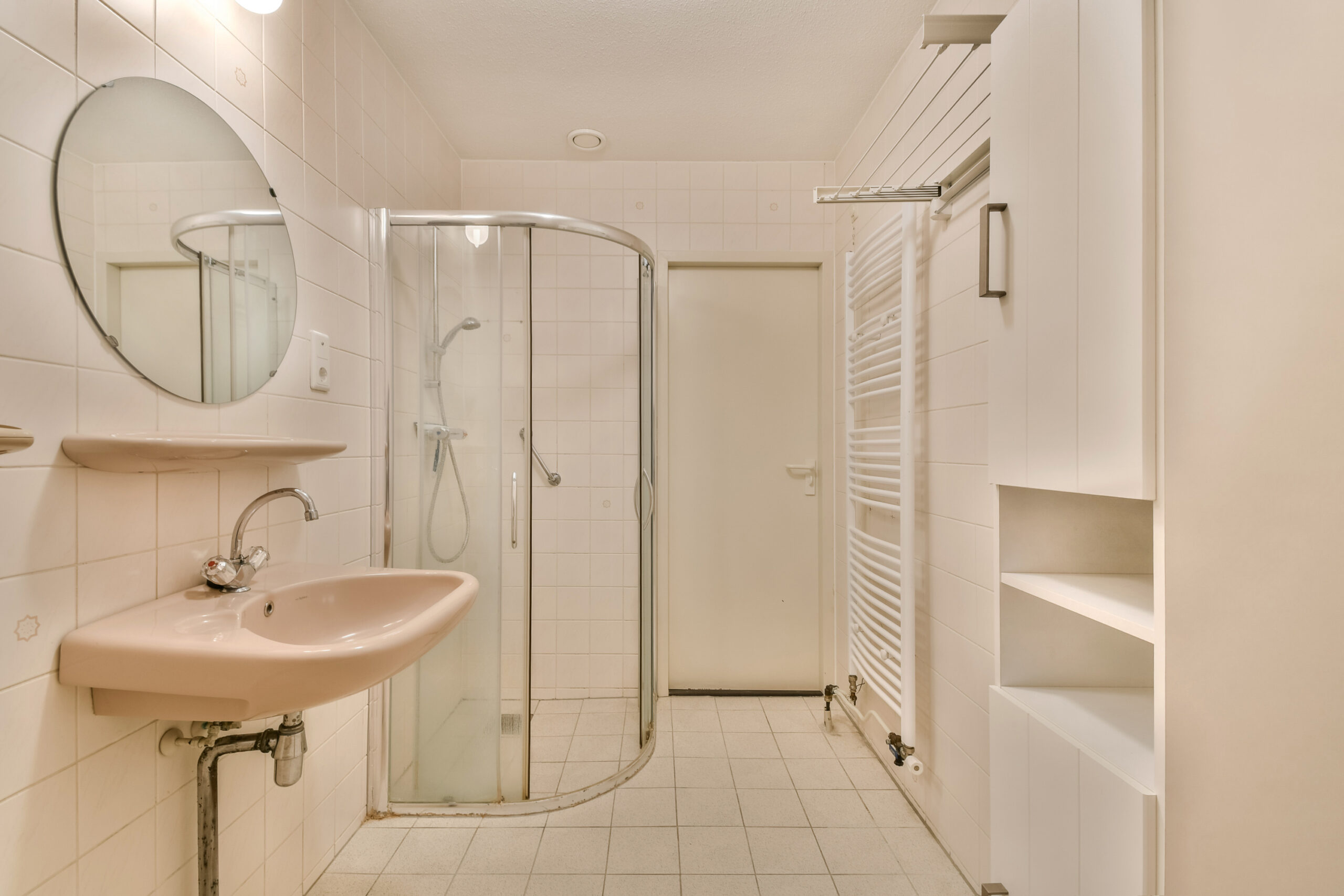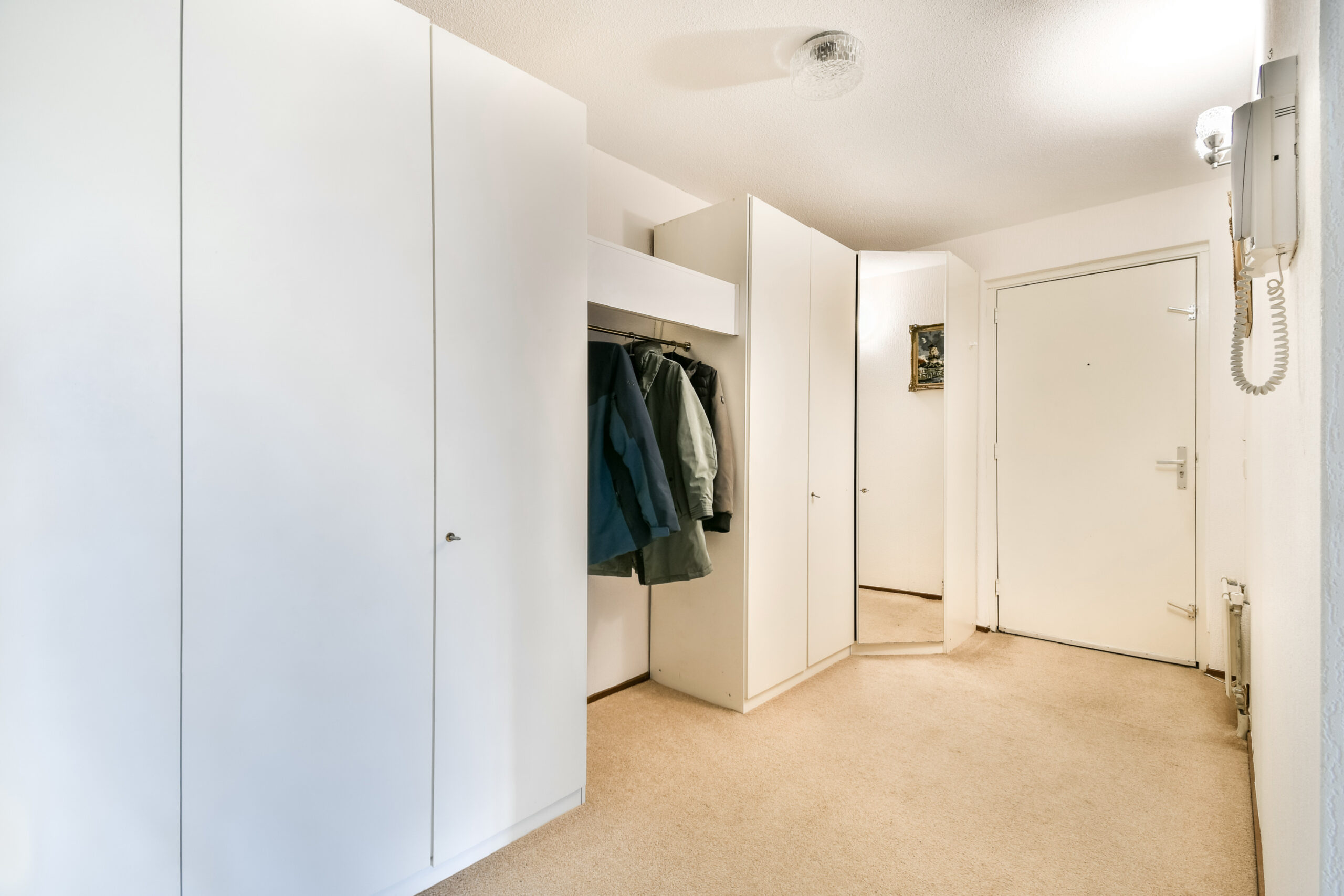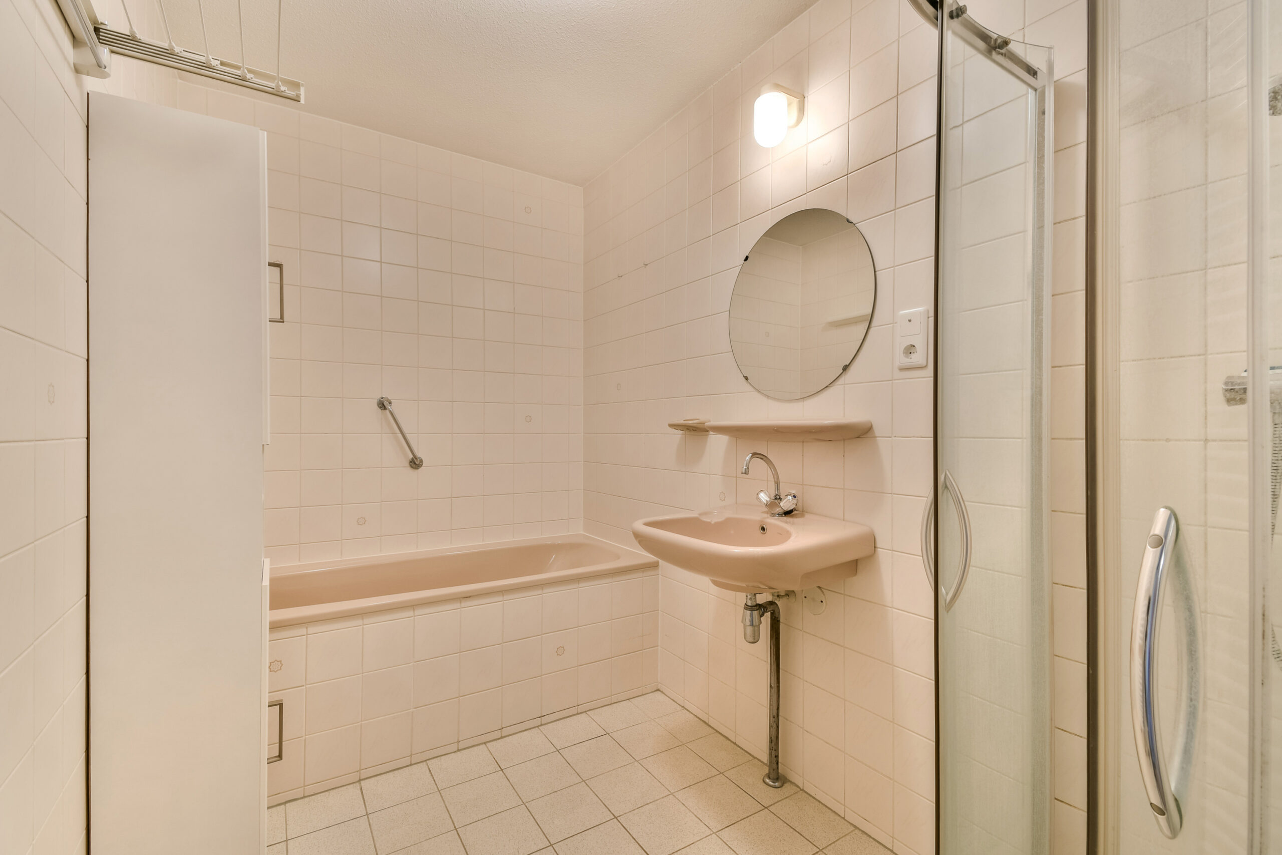 hal met heel veel kastruimte, toegang tot de toiletruimte met fonteintje. Voorts een ruime badkamer met douche, ligbad en wastafel. Twee ruime slaapkamers.