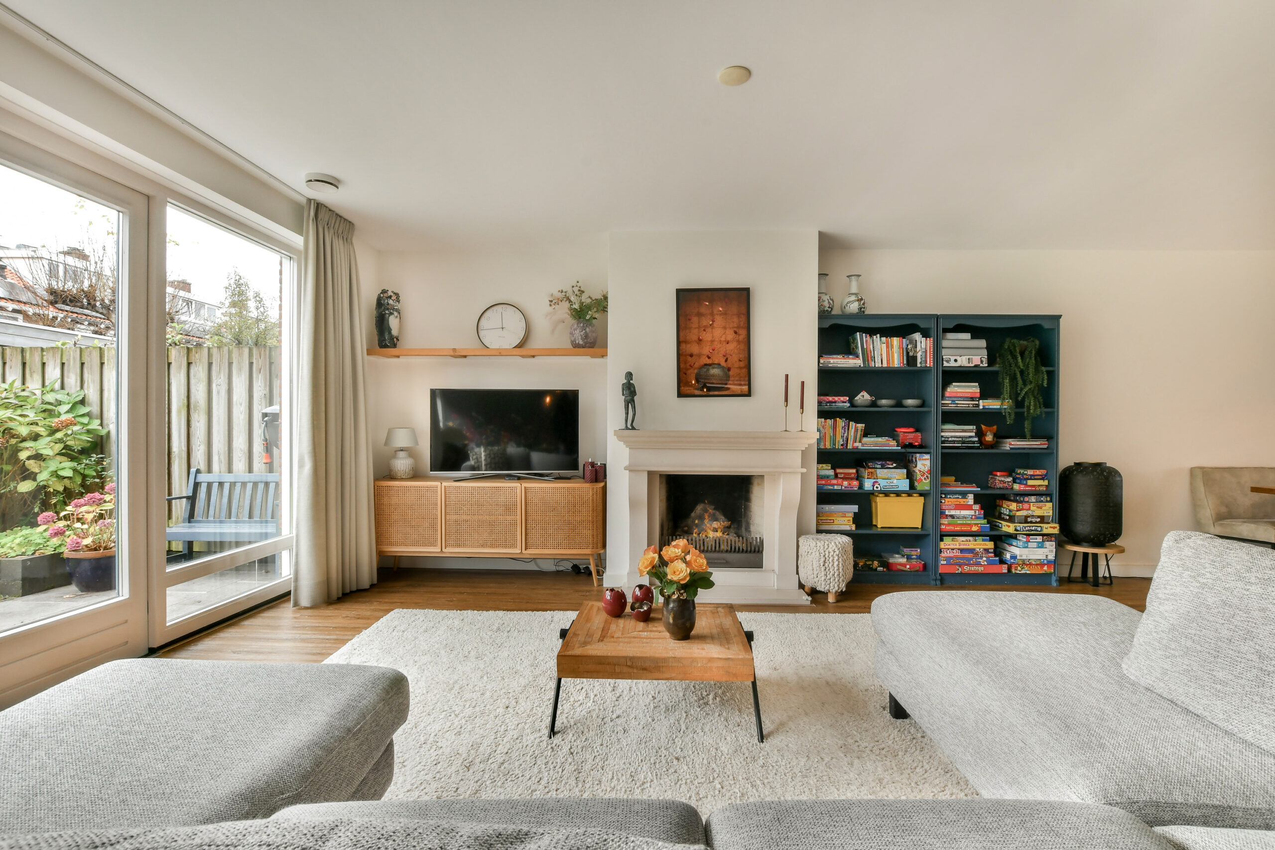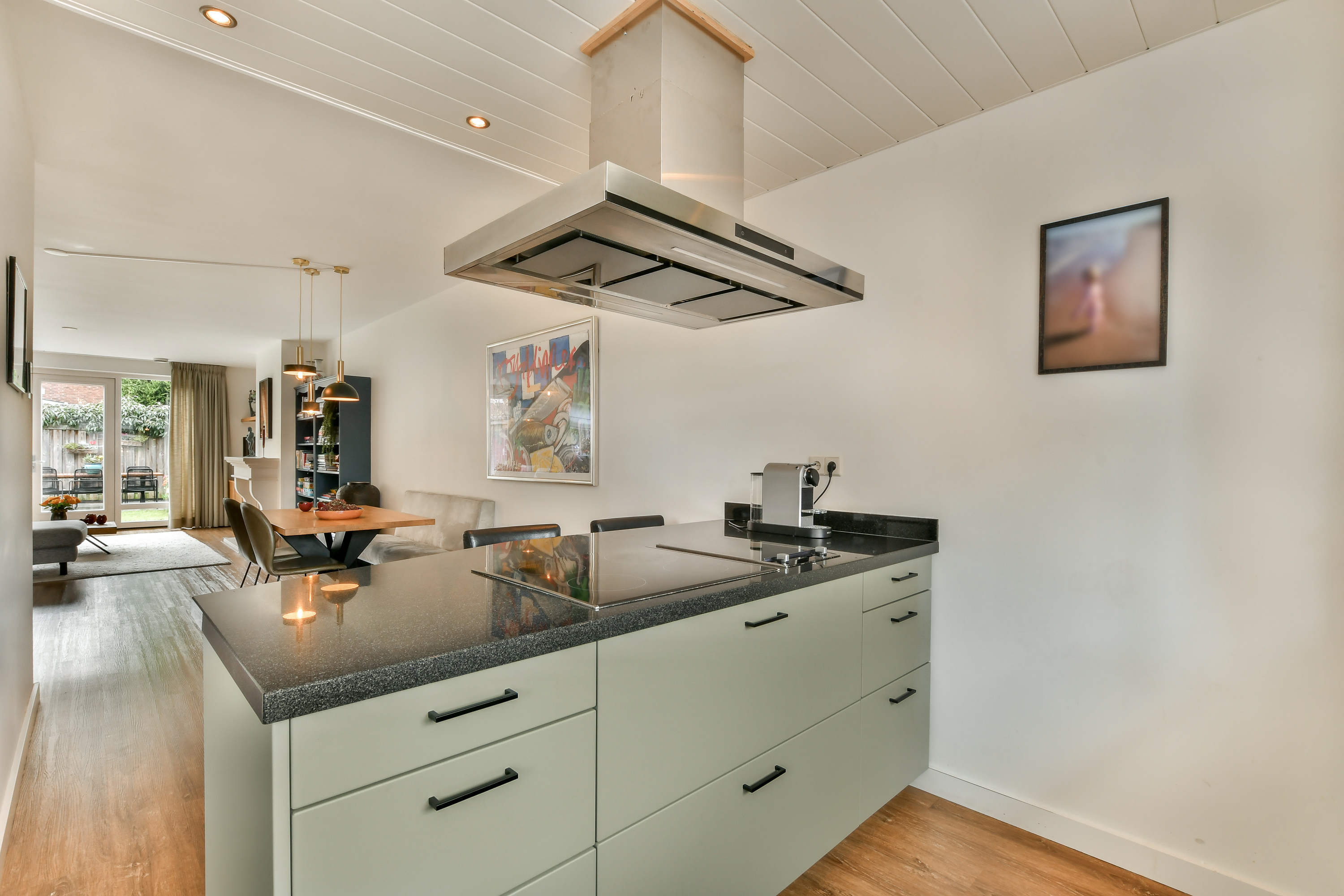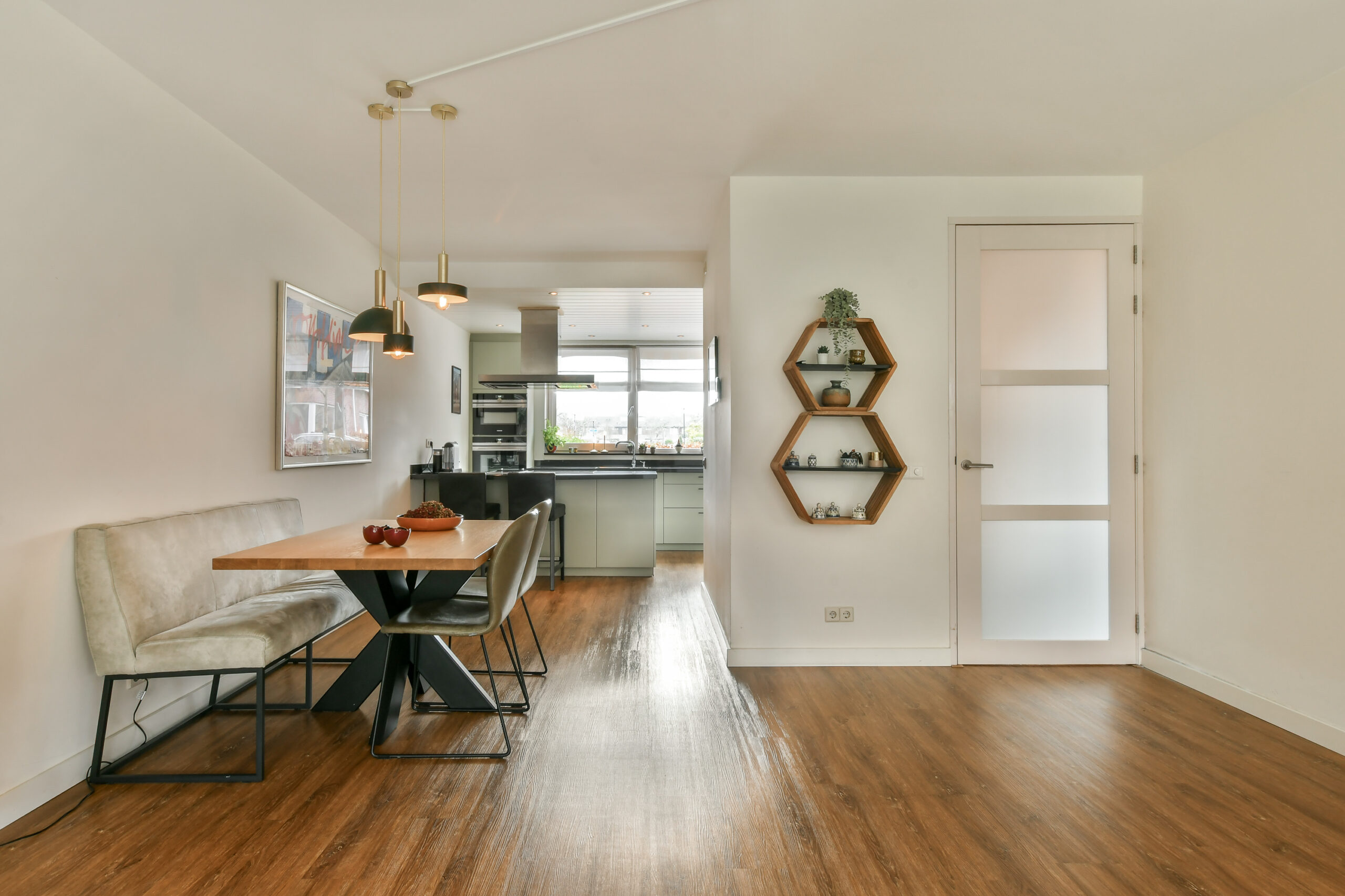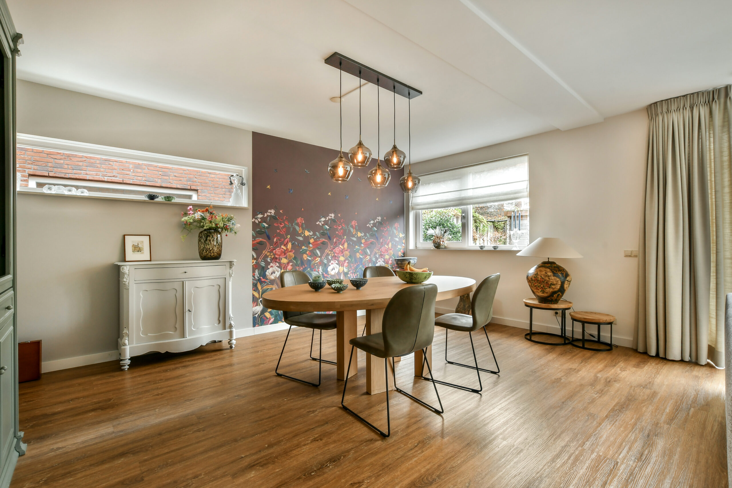 Riante woonkamer met ruimte voor twee eethoeken en een groot zitgedeelte