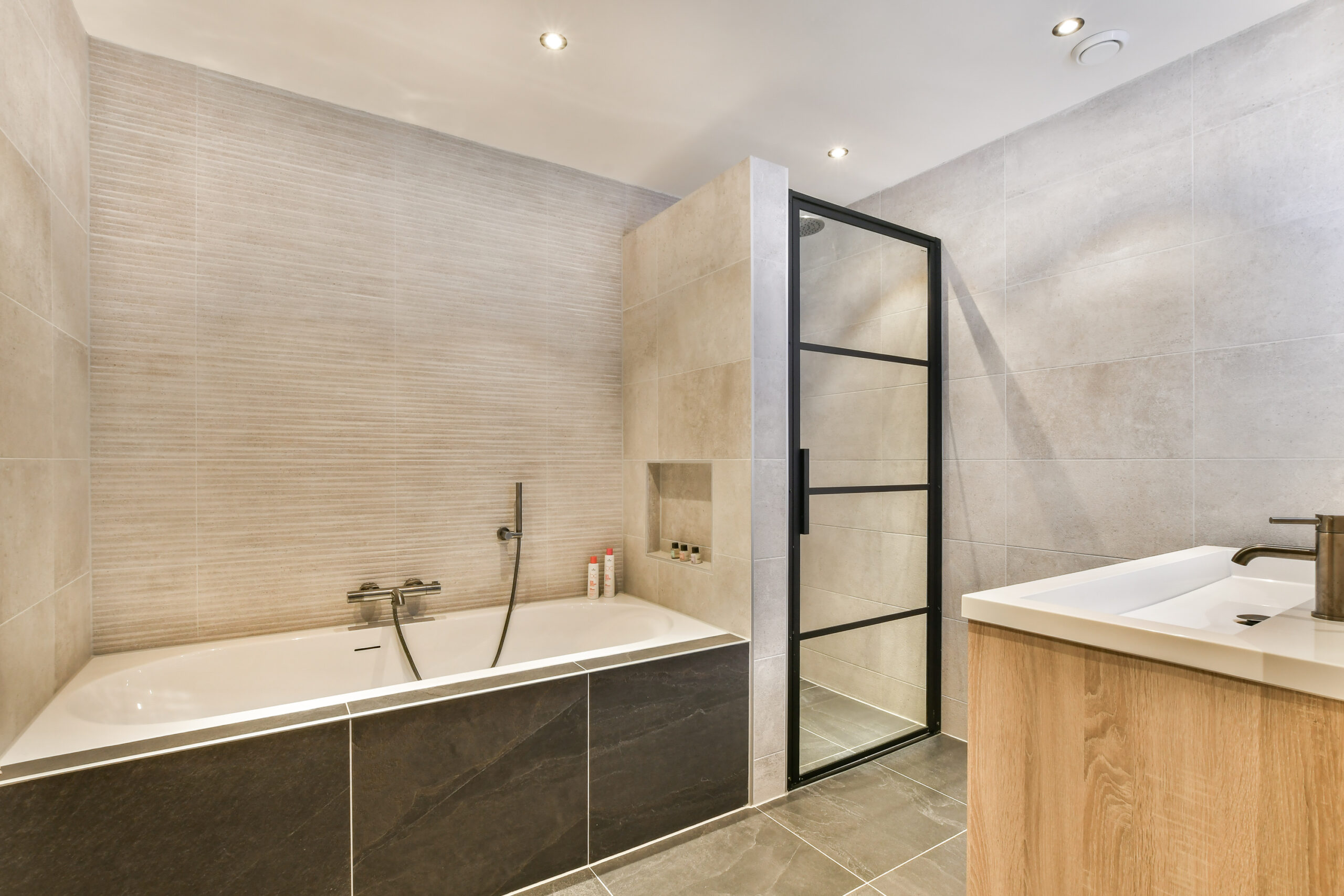 Moderne keuken en recent vernieuwde badkamer