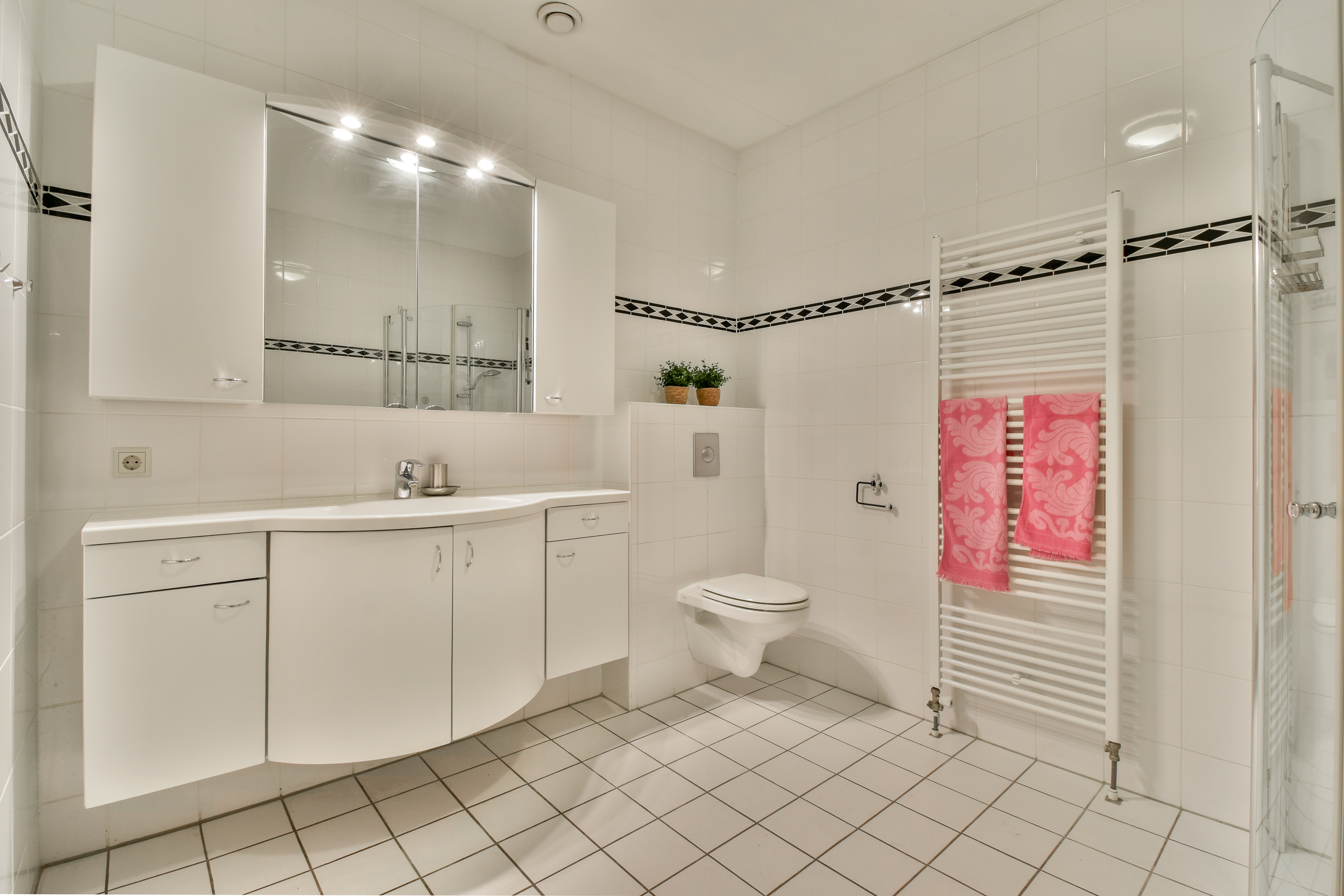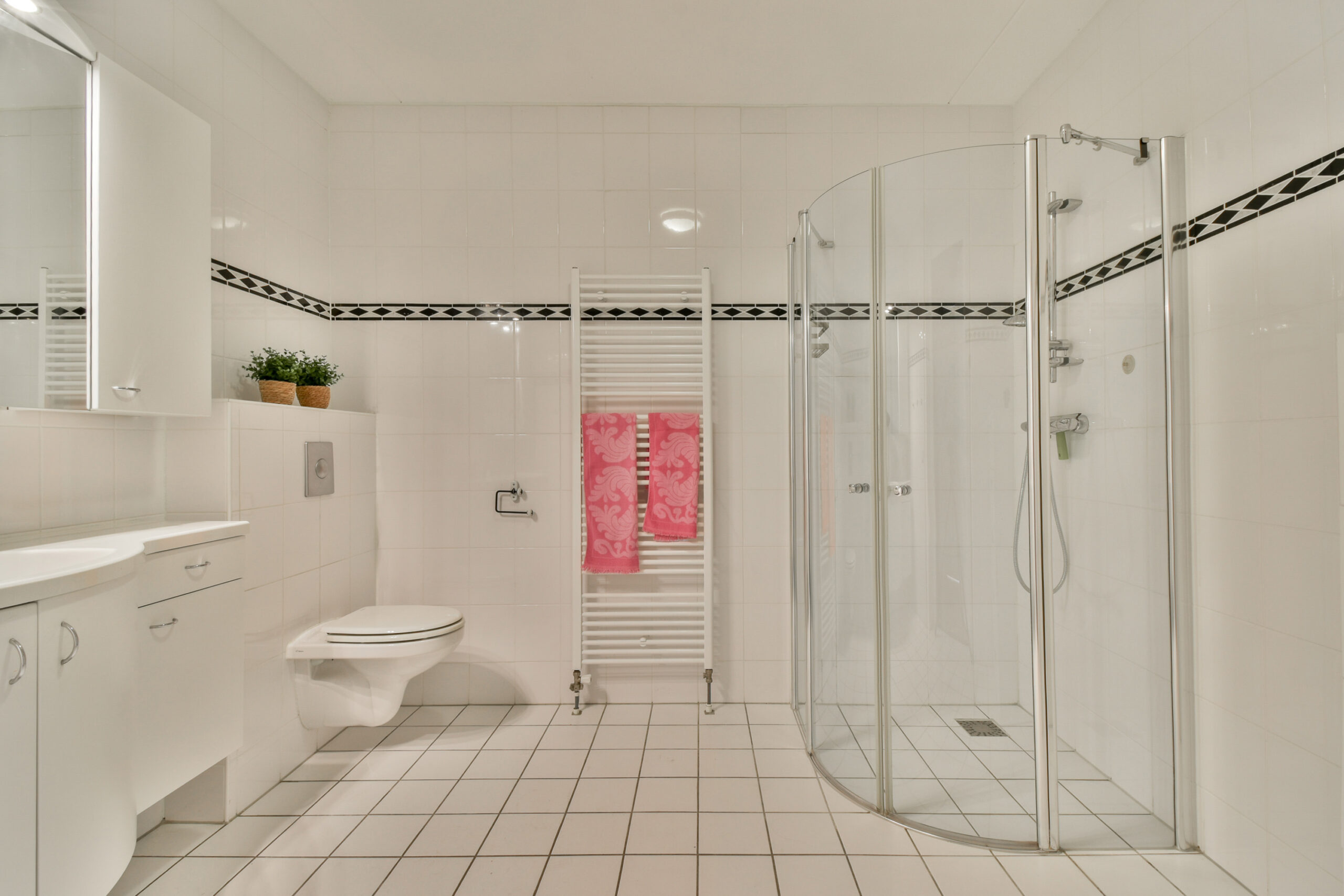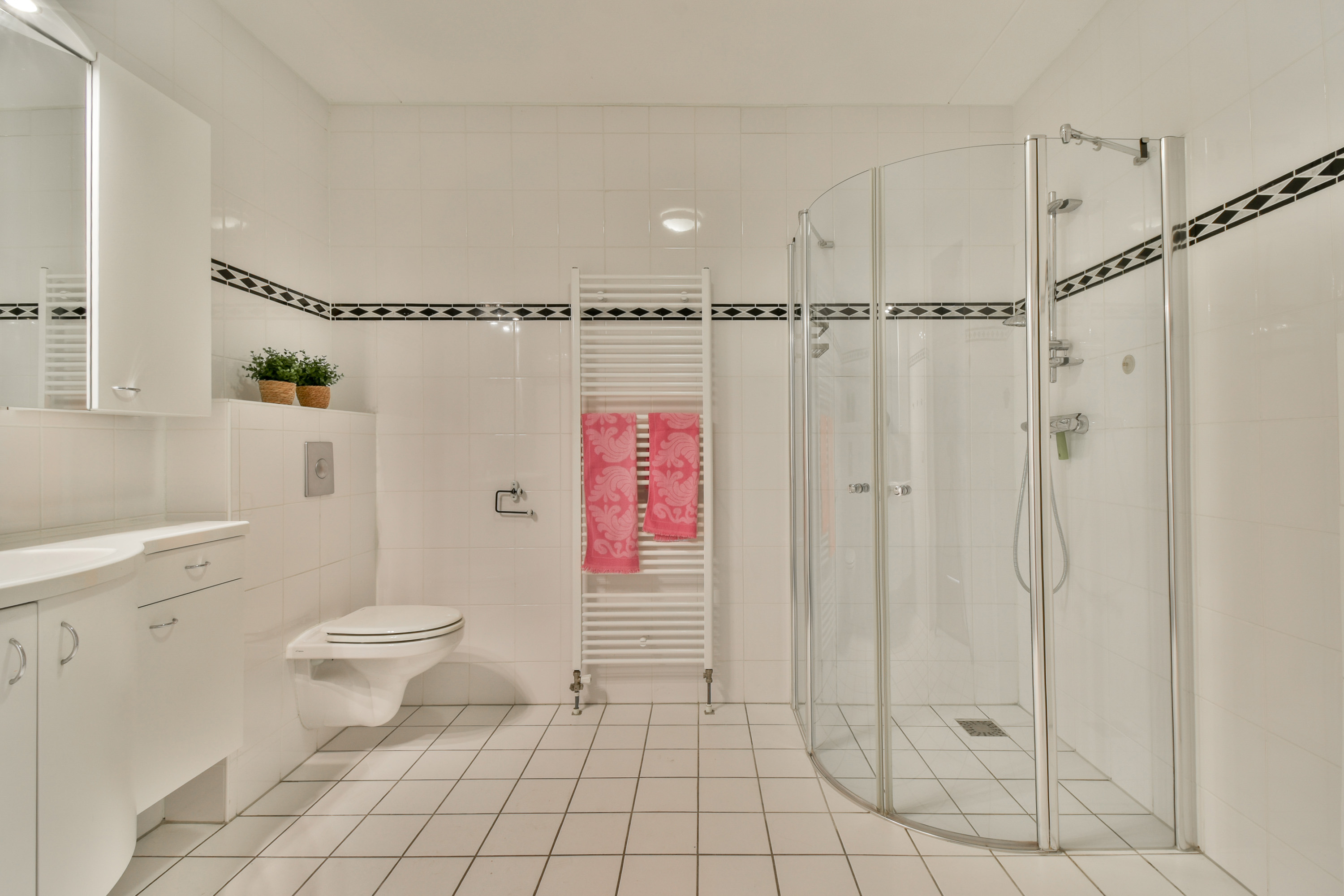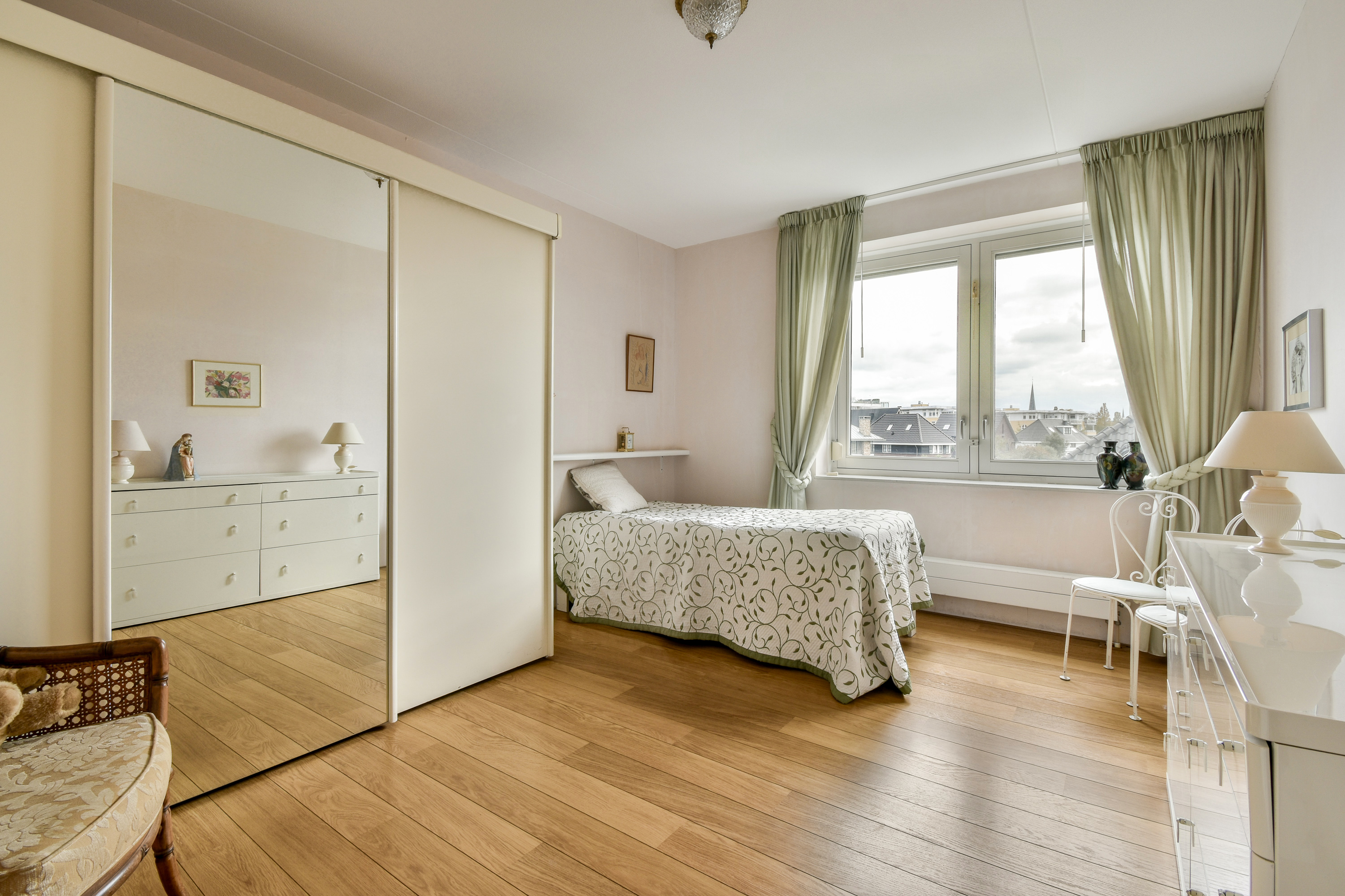Er zijn twee slaapkamers aanwezig. Eén is momenteel ingericht als logeer- of werkkamer; de andere is een ruime hoofdslaapkamer. De badkamer is royaal van opzet en beschikt over een inloopdouche, een wastafelmeubel en een tweede toilet.