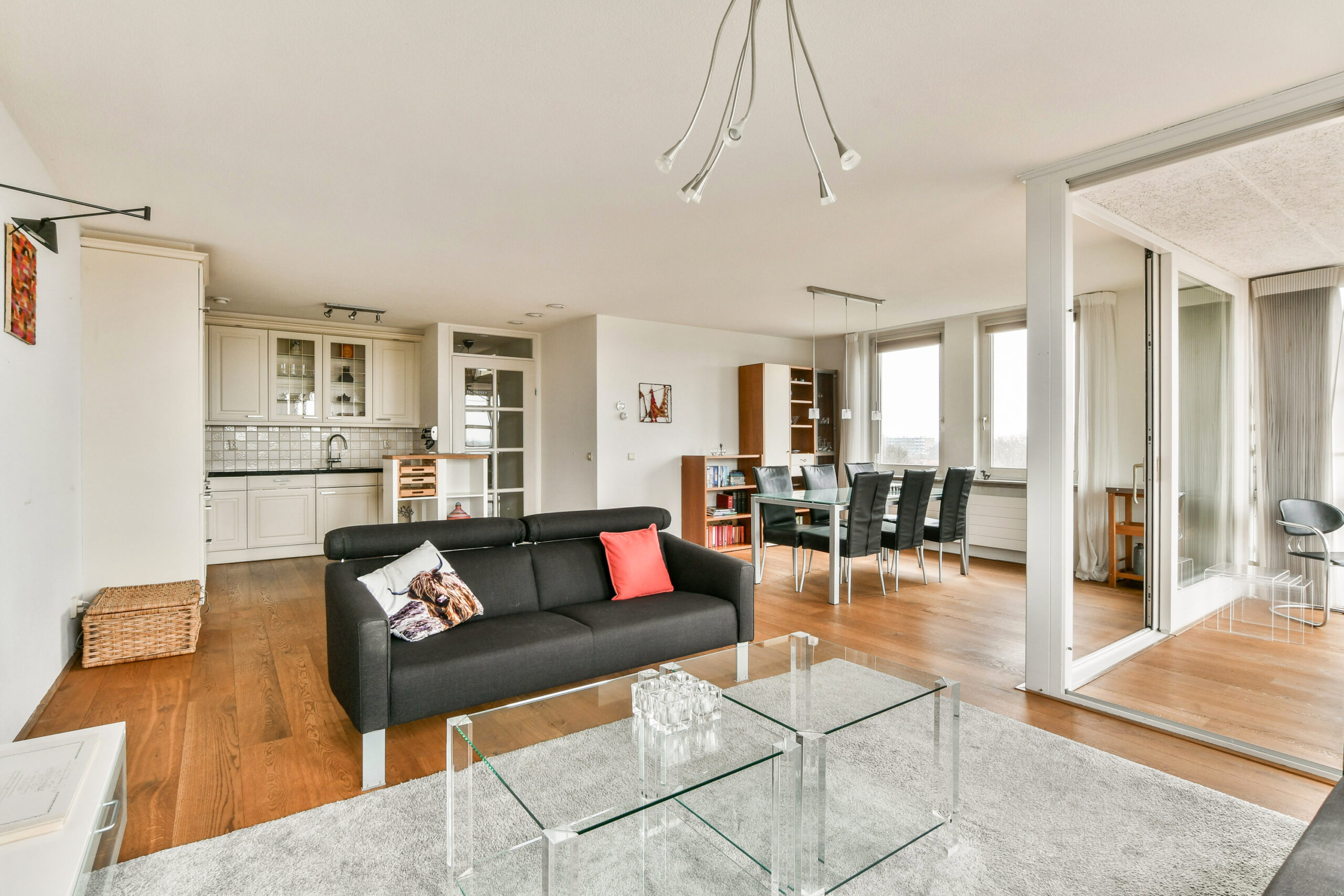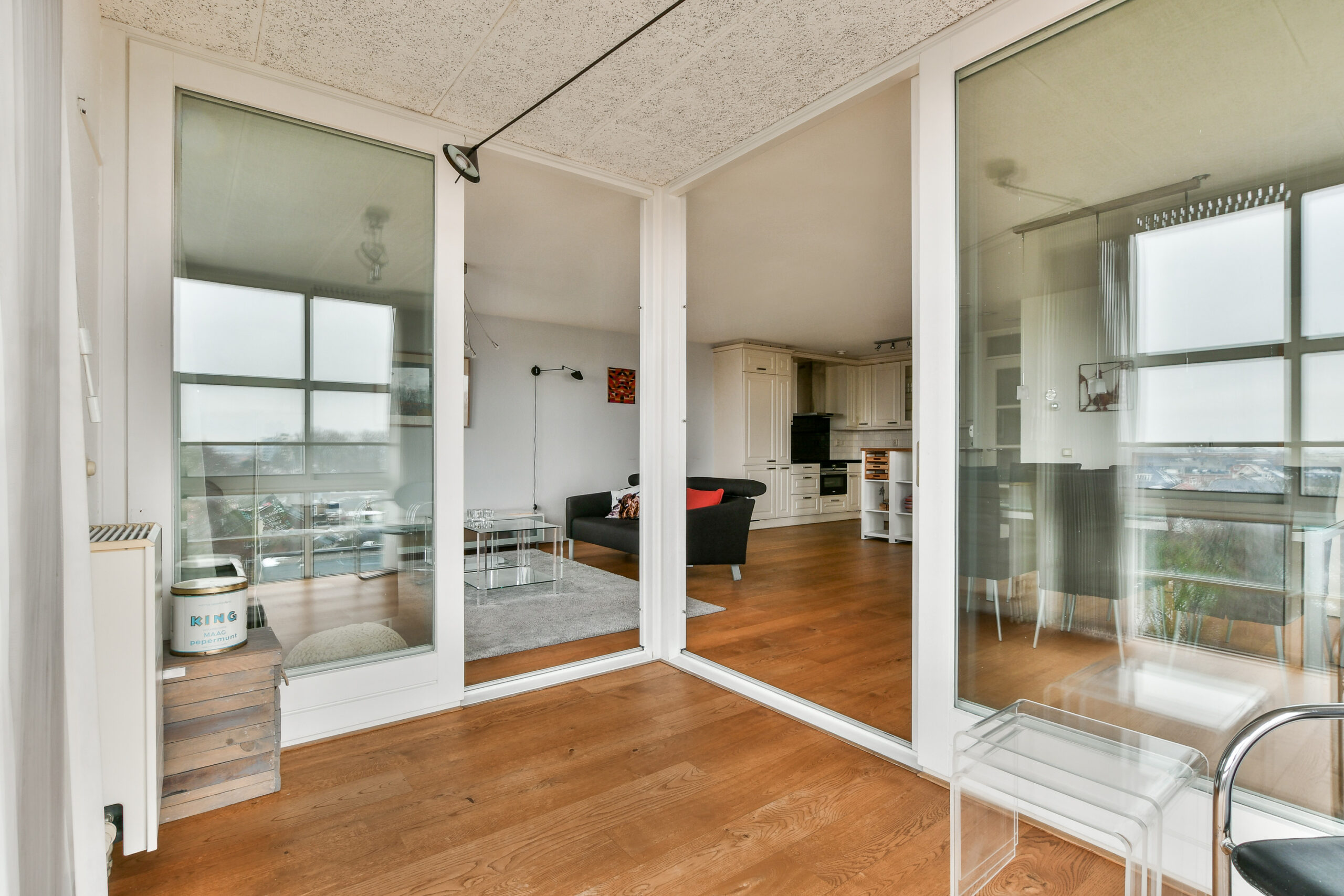 Het gehele appartement is afgewerkt met een eiken vloer welke in 2021 is geschuurd en in de olie gezet (Smoked Oak).