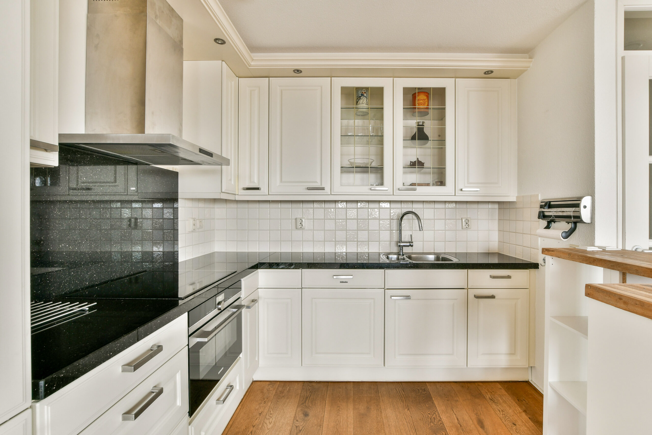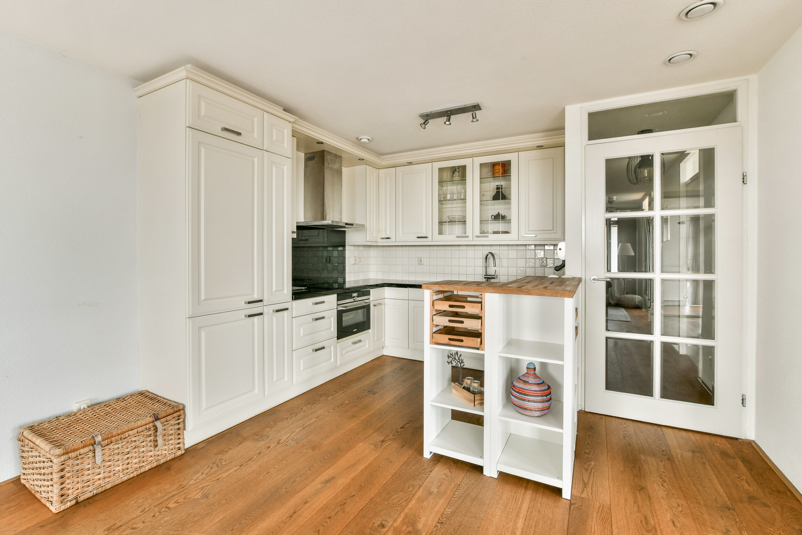 granieten werkblad uitgevoerd en is voorzien van diverse inbouwapparatuur te weten: koel-/vriescombinatie, vaatwasser, 4-pits inductie kookplaat, oven, duo spoelbak en veel opbergruimte.