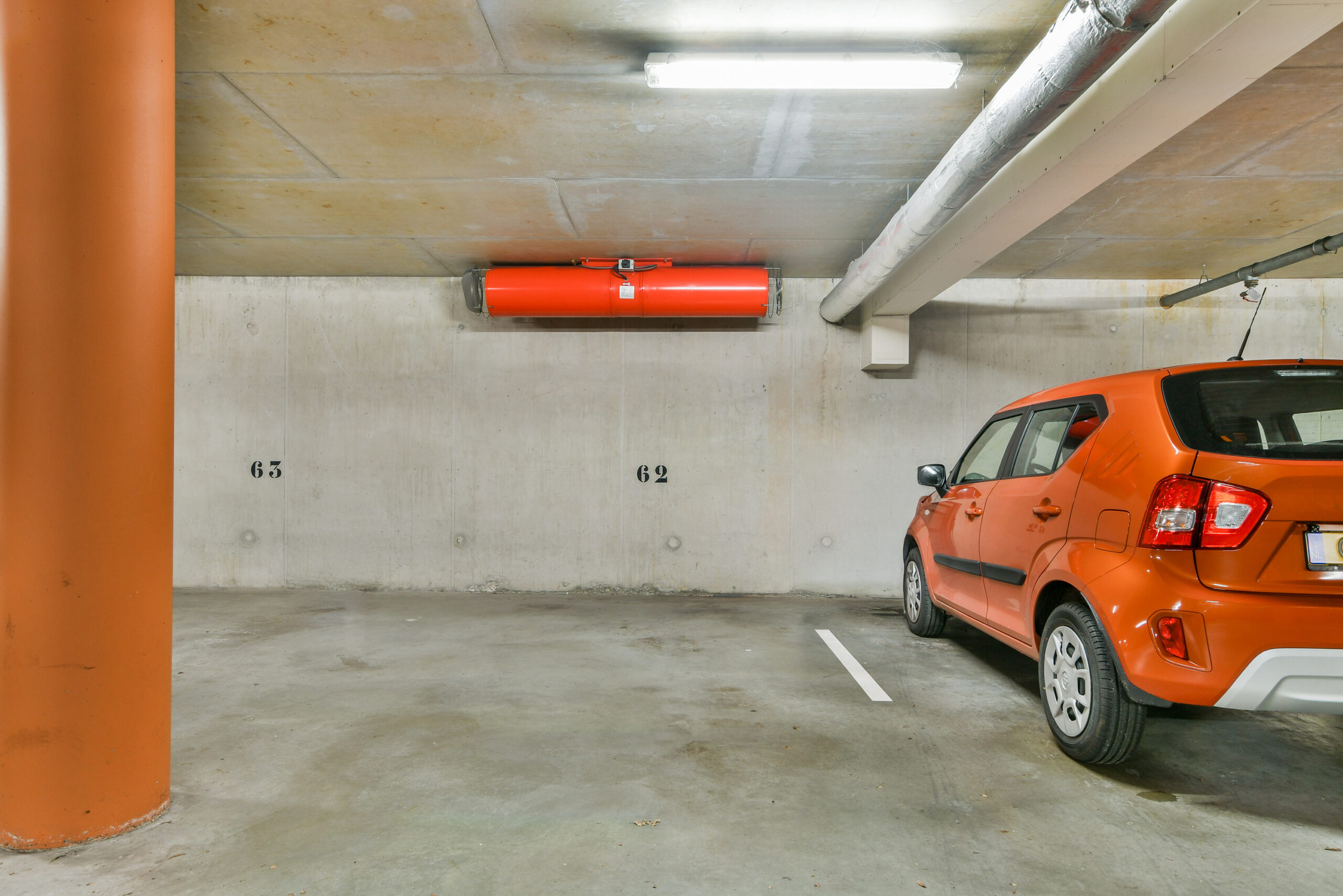 In de ondergelegen parkeerkelder zijn de parkeerplaats en berging te vinden. De berging is voorzien van elektra.