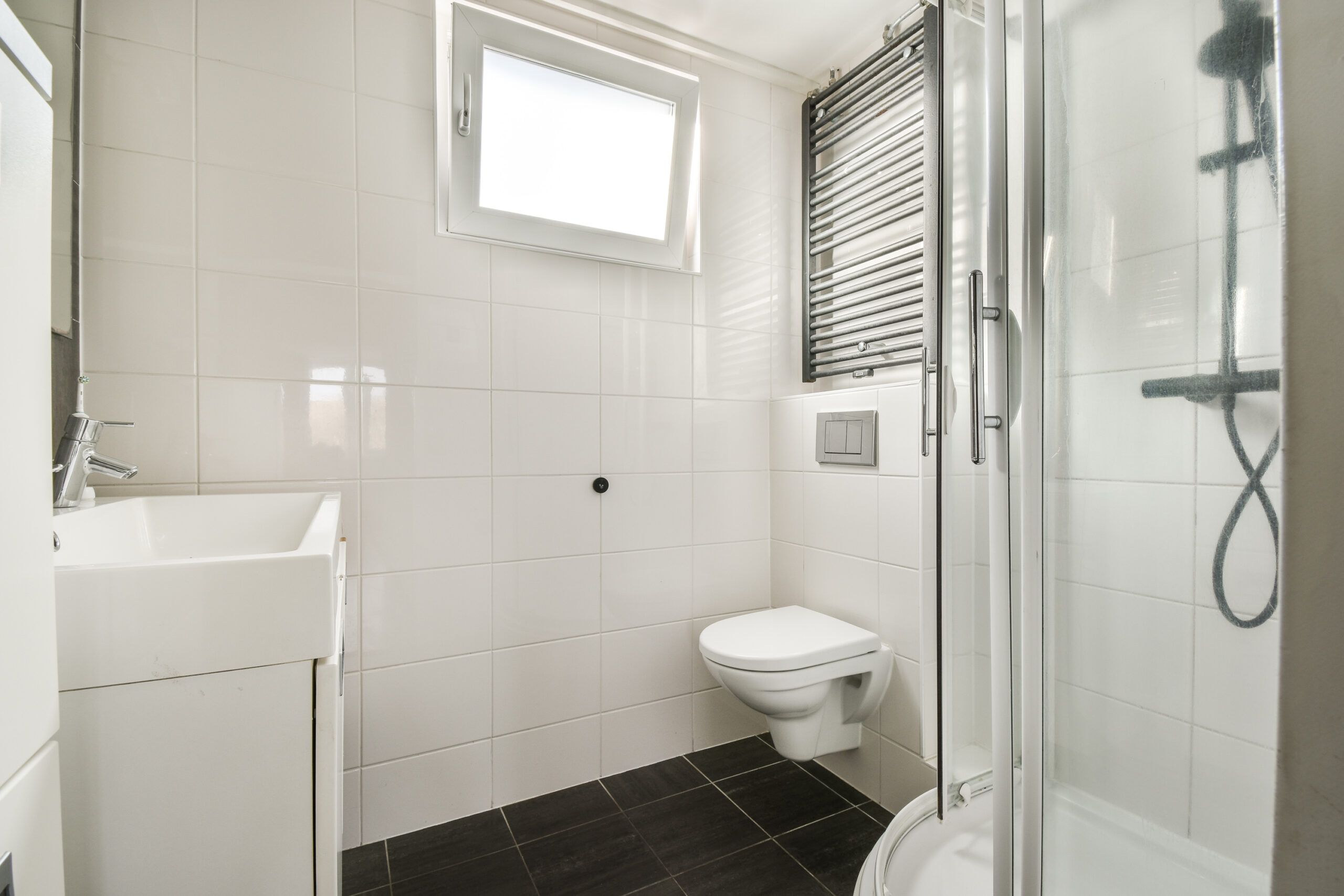 Overloop, nette badkamer met douche, wastafelmeubel met dubbele kraan en tweede toilet. Aan de voorzijde bevindt zich een ruime slaapkamer. De achterzijde is volledig opgetrokken, waardoor hier twee grote slaapkamers zijn gecreëerd. De ouderslaapkamer is uitgerust met een vaste kastenwand en inbouwspots. De overloop en slaapkamers zijn afgewerkt met laminaat.
