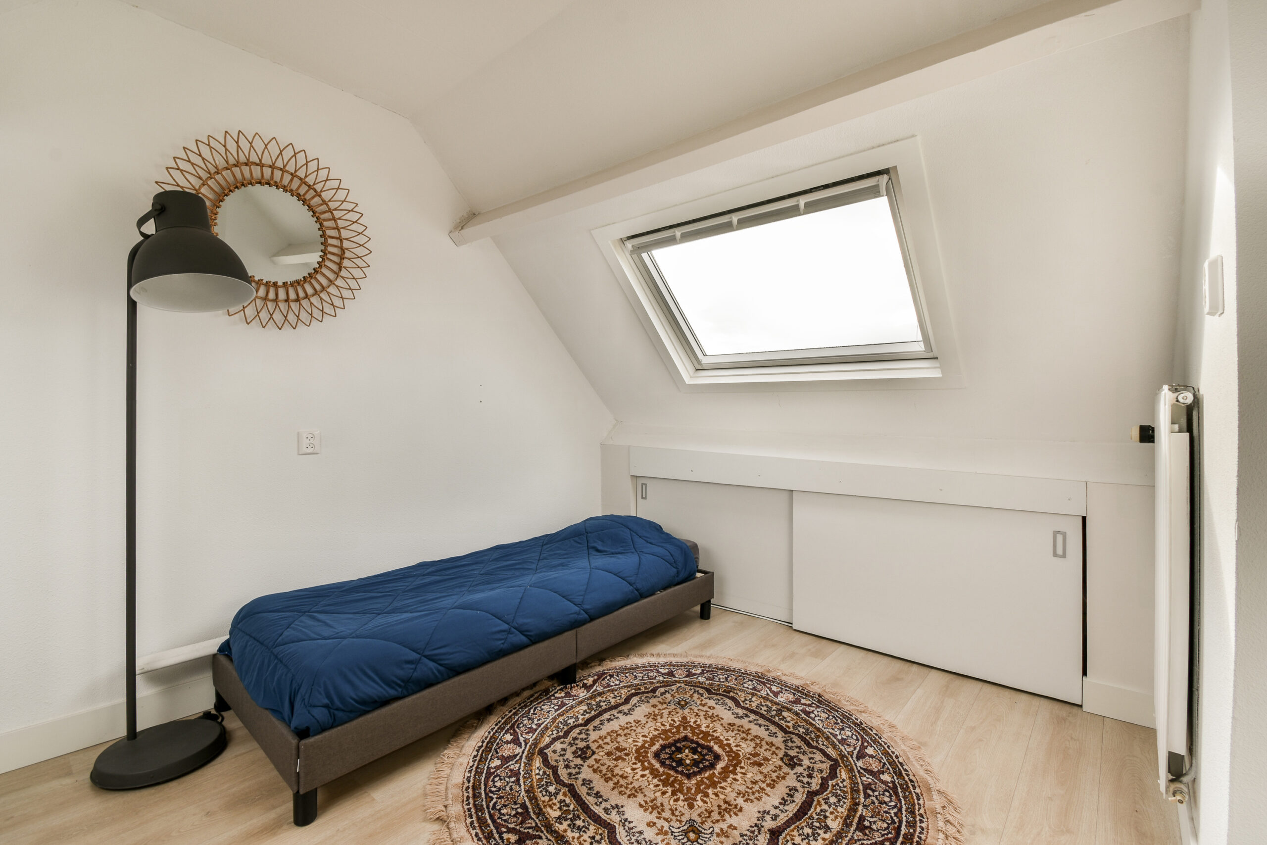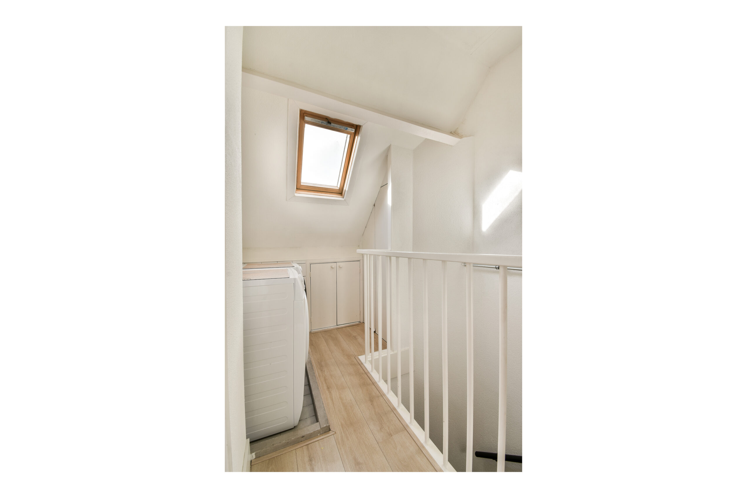 Via een vaste trap bereikbare zolder met overloop voorzien van vaste kast, wasruimte, dakraam en de opstelplaats voor de cv-ketel (2012). Daarnaast is er een ruime vierde slaapkamer met twee dakramen, bergruimte en een laminaatvloer. Een fijne, volwaardige verdieping met veel licht en praktische opbergruimte.