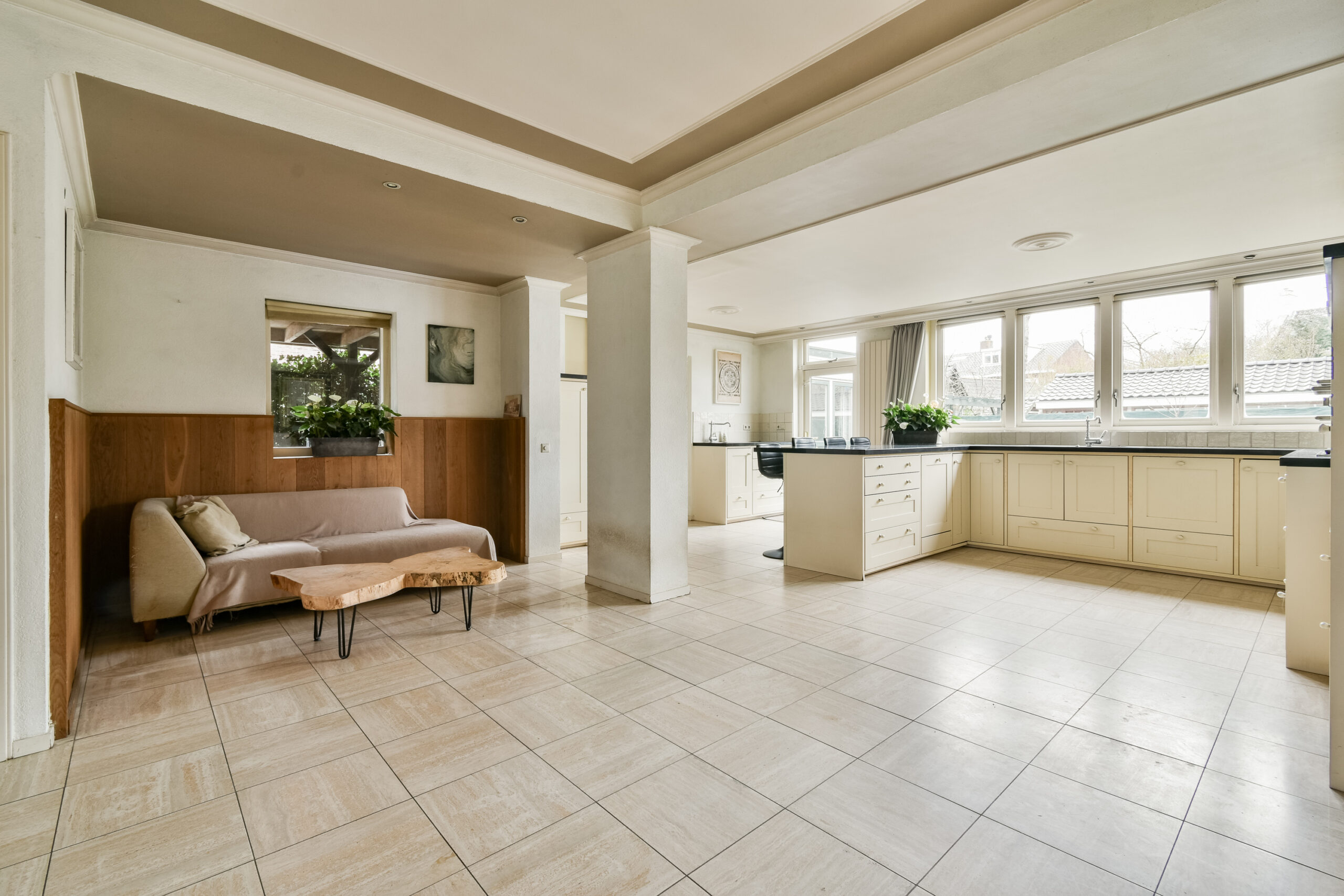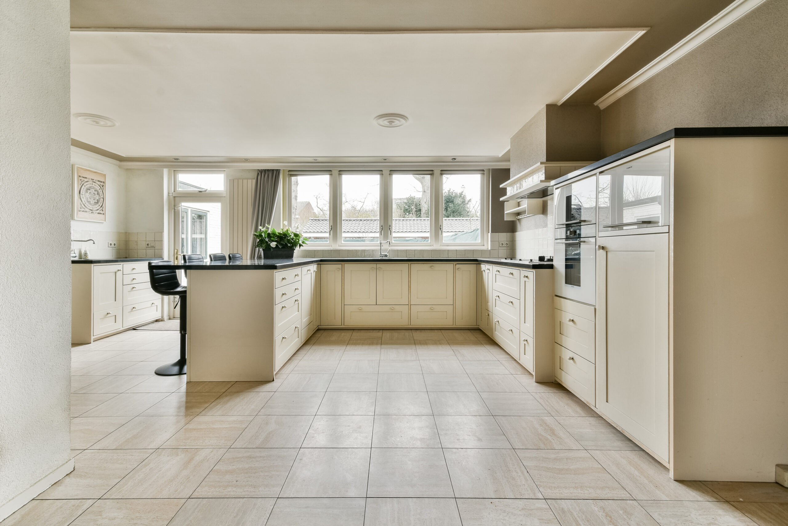 tot zowel de achtertuin als de bijkeuken. De praktische bijkeuken (voorheen garage) is ruim van opzet en voorzien van aansluitingen voor wasmachine en droger. Dankzij de grootte en voorzieningen is deze ruimte multifunctioneel inzetbaar. Ook vanuit hier is er toegang tot de achtertuin en oprit.