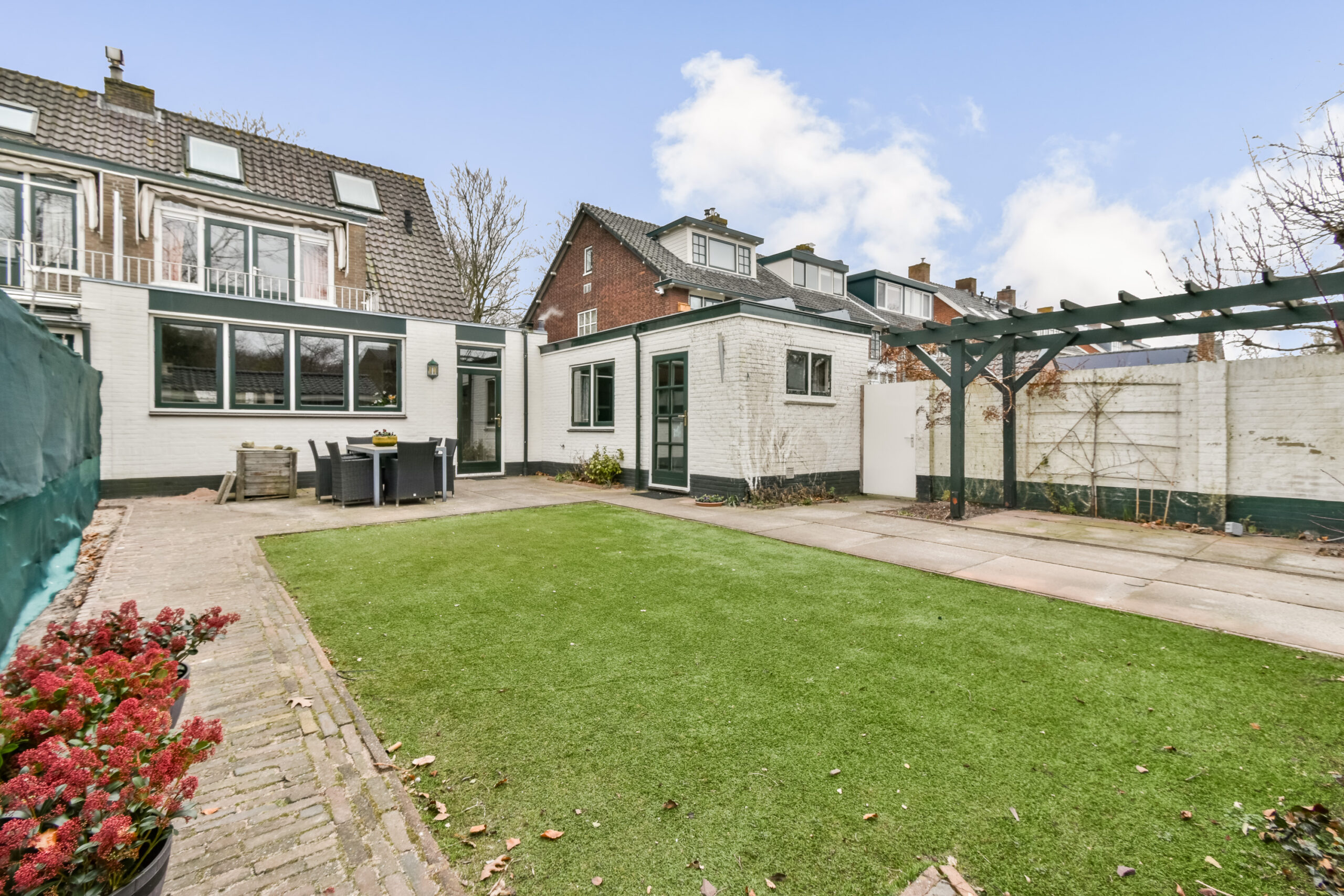 • Ruime achter-, zij- en beschutte groene voortuin aan een rustige straat gelegen.