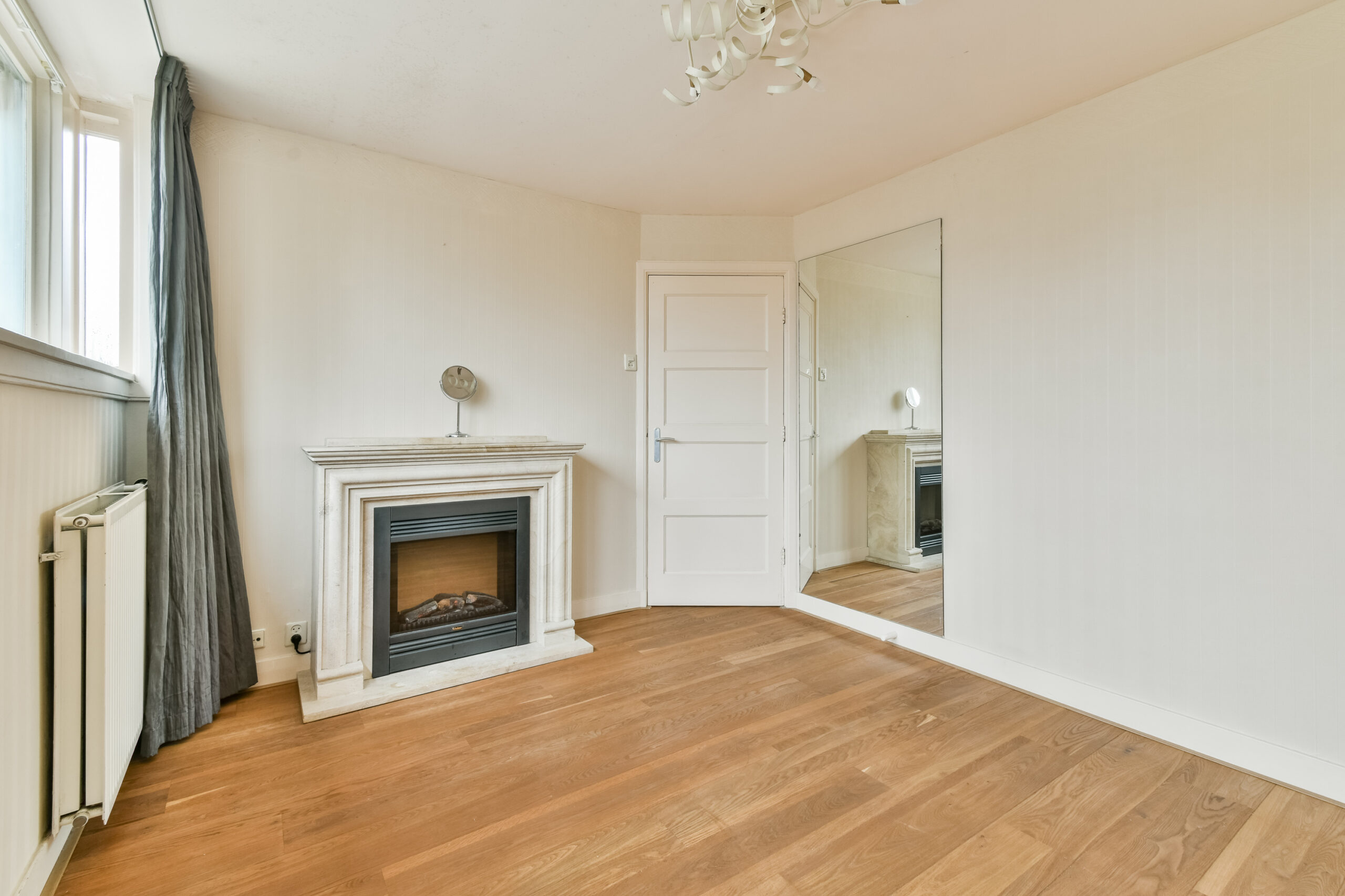 Aan de voorzijde bevinden zich twee slaapkamers, waarvan één is voorzien van een charmante schouw. De tweede kamer is kleiner van formaat en ideaal als werkkamer.