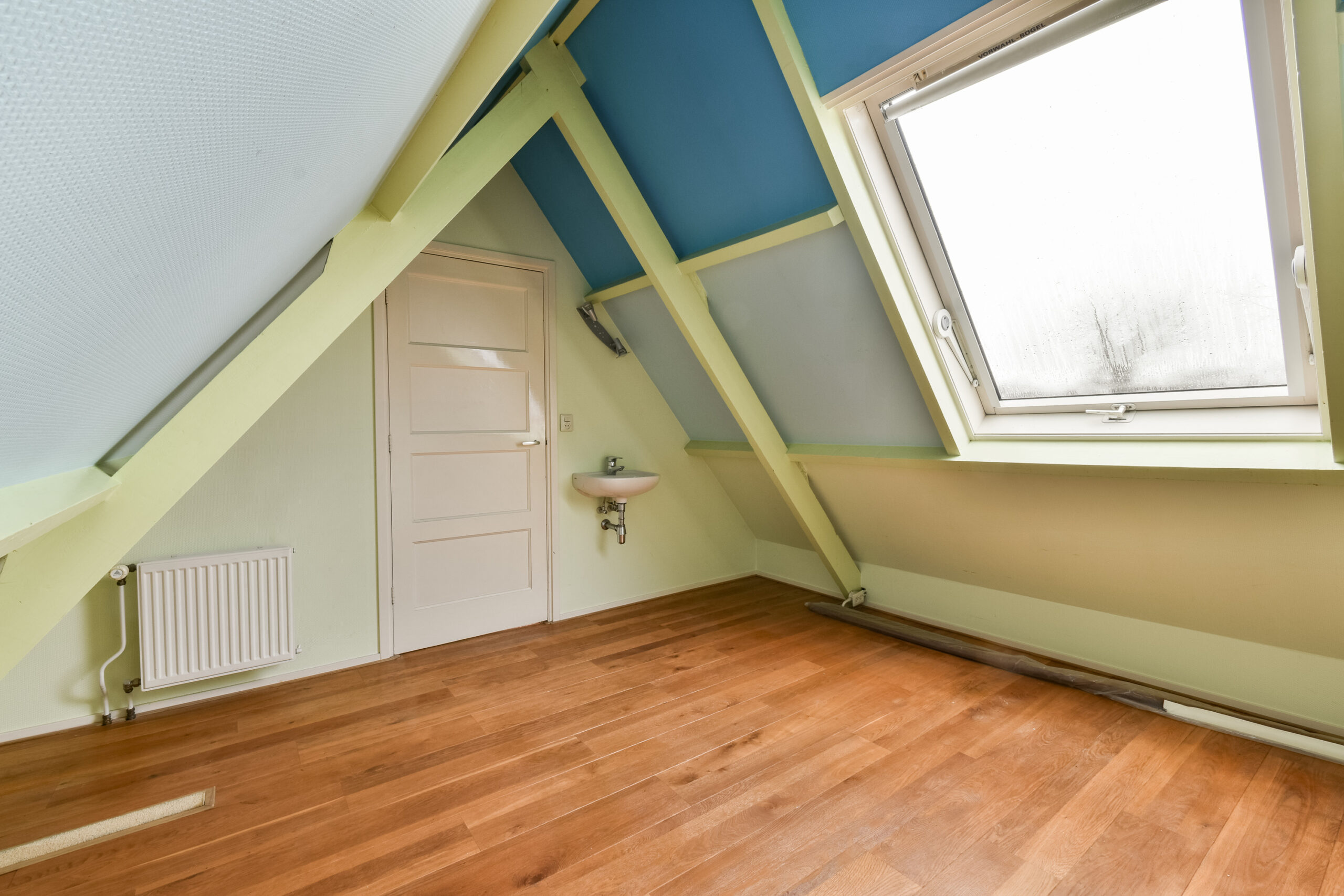Overloop met toegang tot de vierde slaapkamer. Dankzij een groot dakraam geniet deze kamer van voldoende daglicht.
