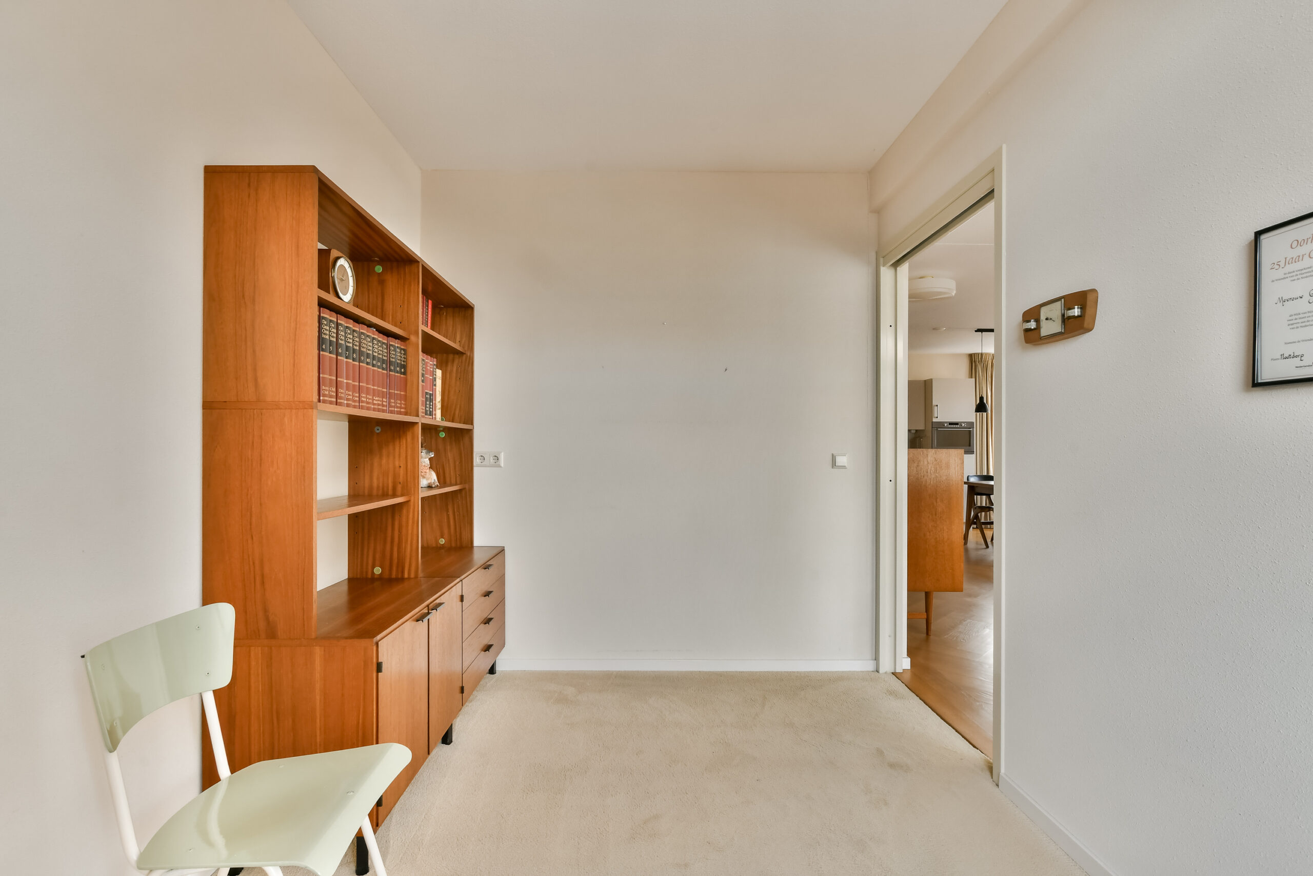 is zeer ruim bemeten en de ramen zijn voorzien van screens. De tweede slaapkamer is bereikbaar vanuit de woonkamer, deze kamer is multifunctioneel en zou ook zomaar een hobbyruimte, kantoor, leesruimte of gewoon extra bergruimte kunnen zijn.