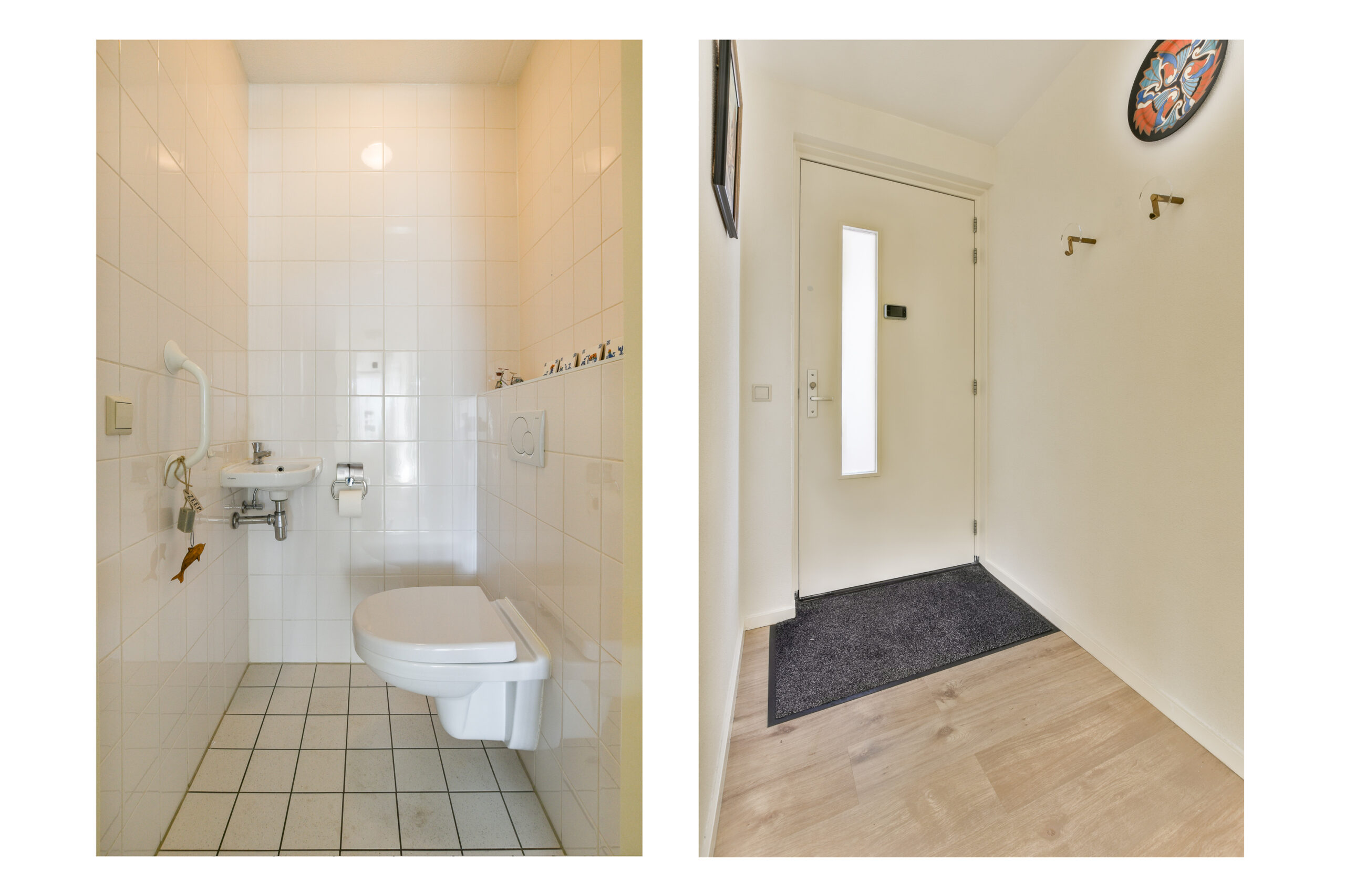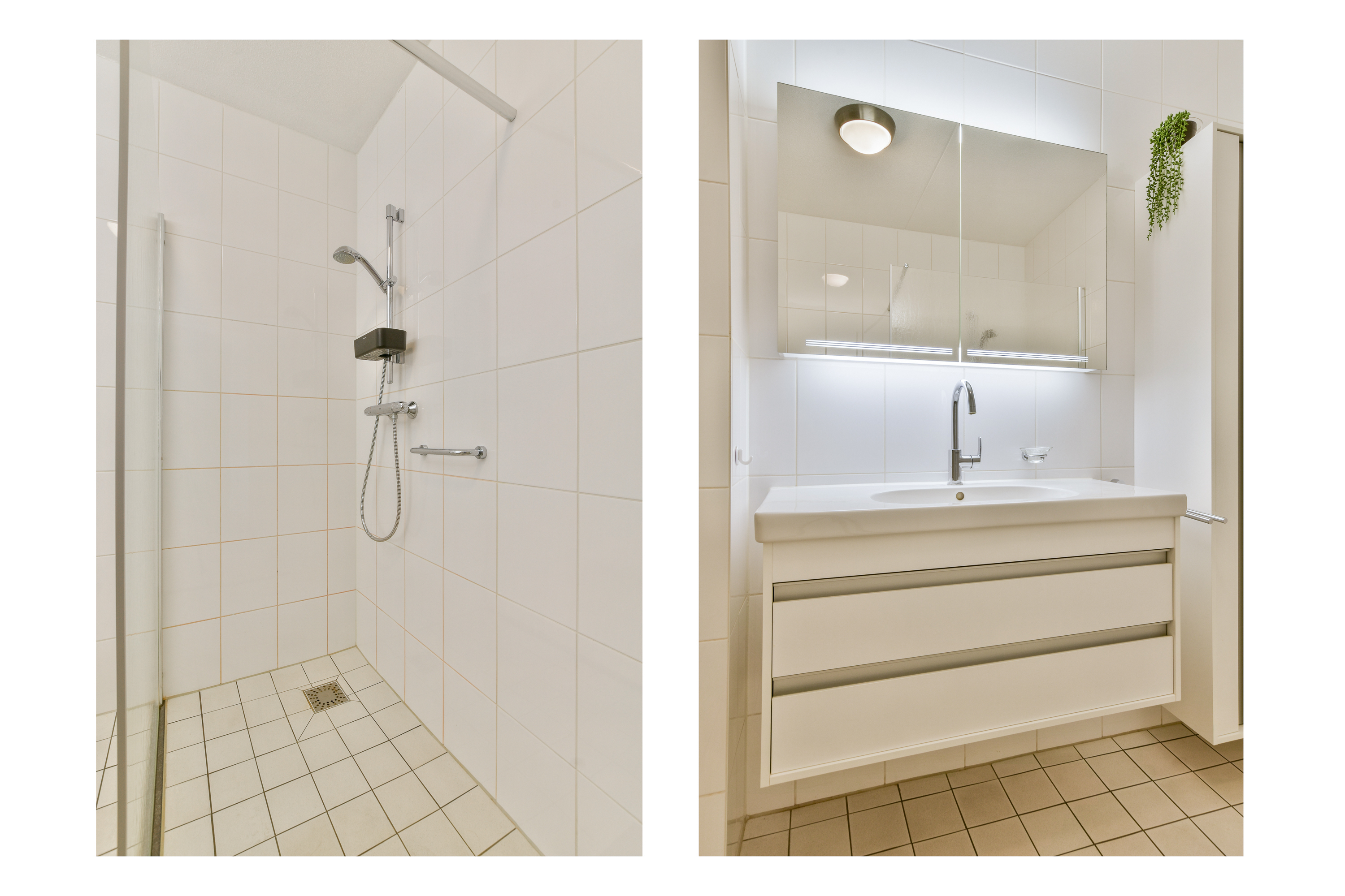 en de technische ruimte bevinden zich hier. In de technische ruimte is tevens de opstelplaats voor de was- en droogmachine. De badkamer is voorzien van een inloopdouche en een stijlvol wastafelmeubel, separaat treft u het toilet met de fontein aan.
