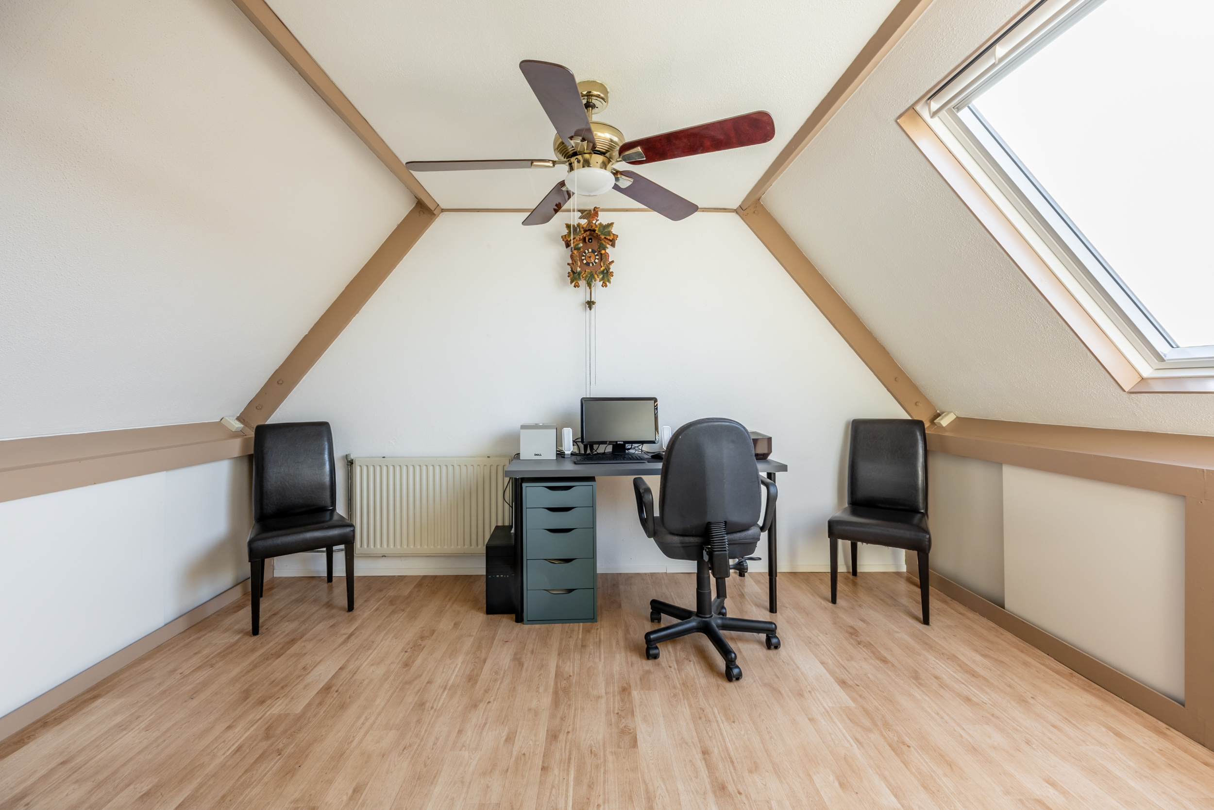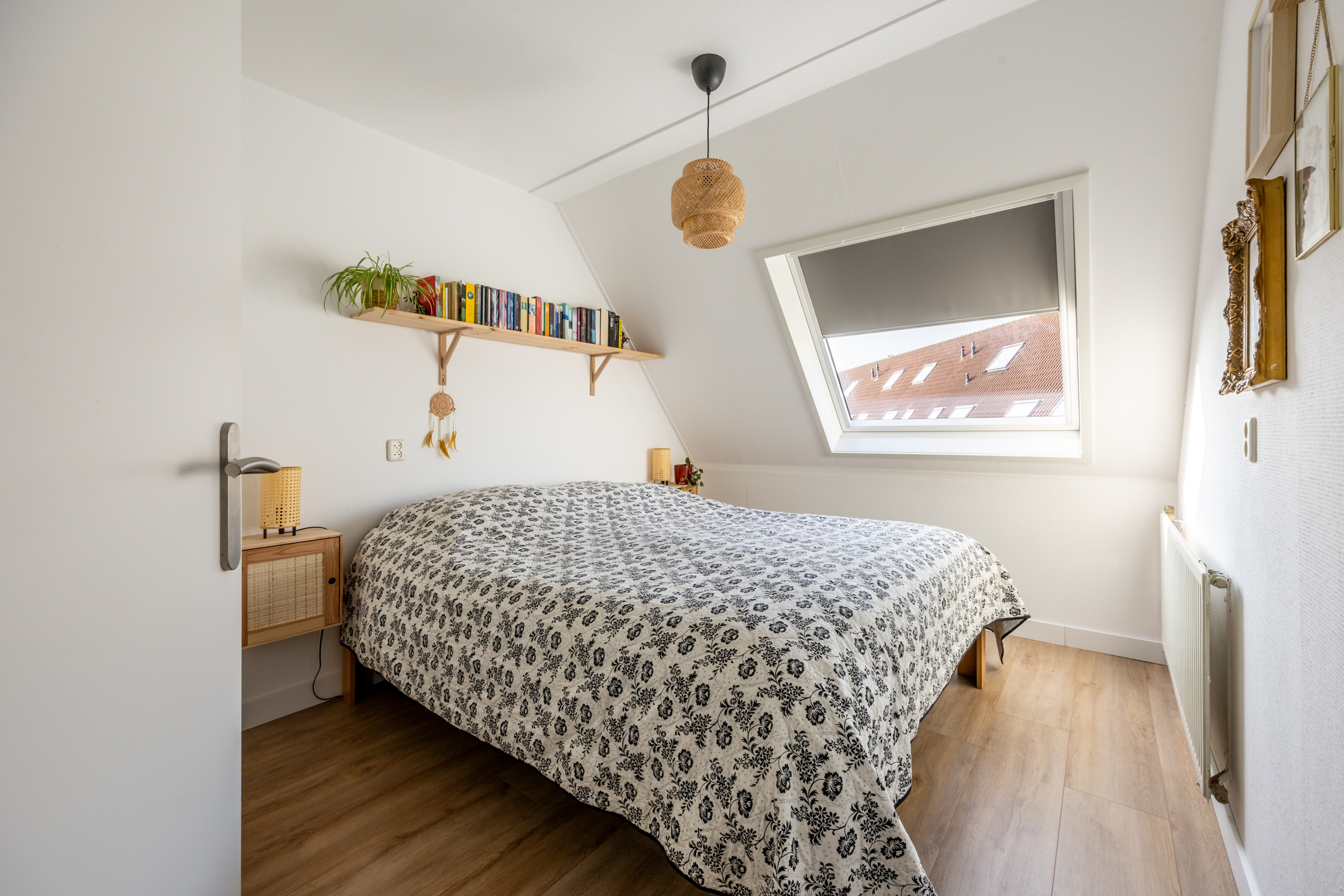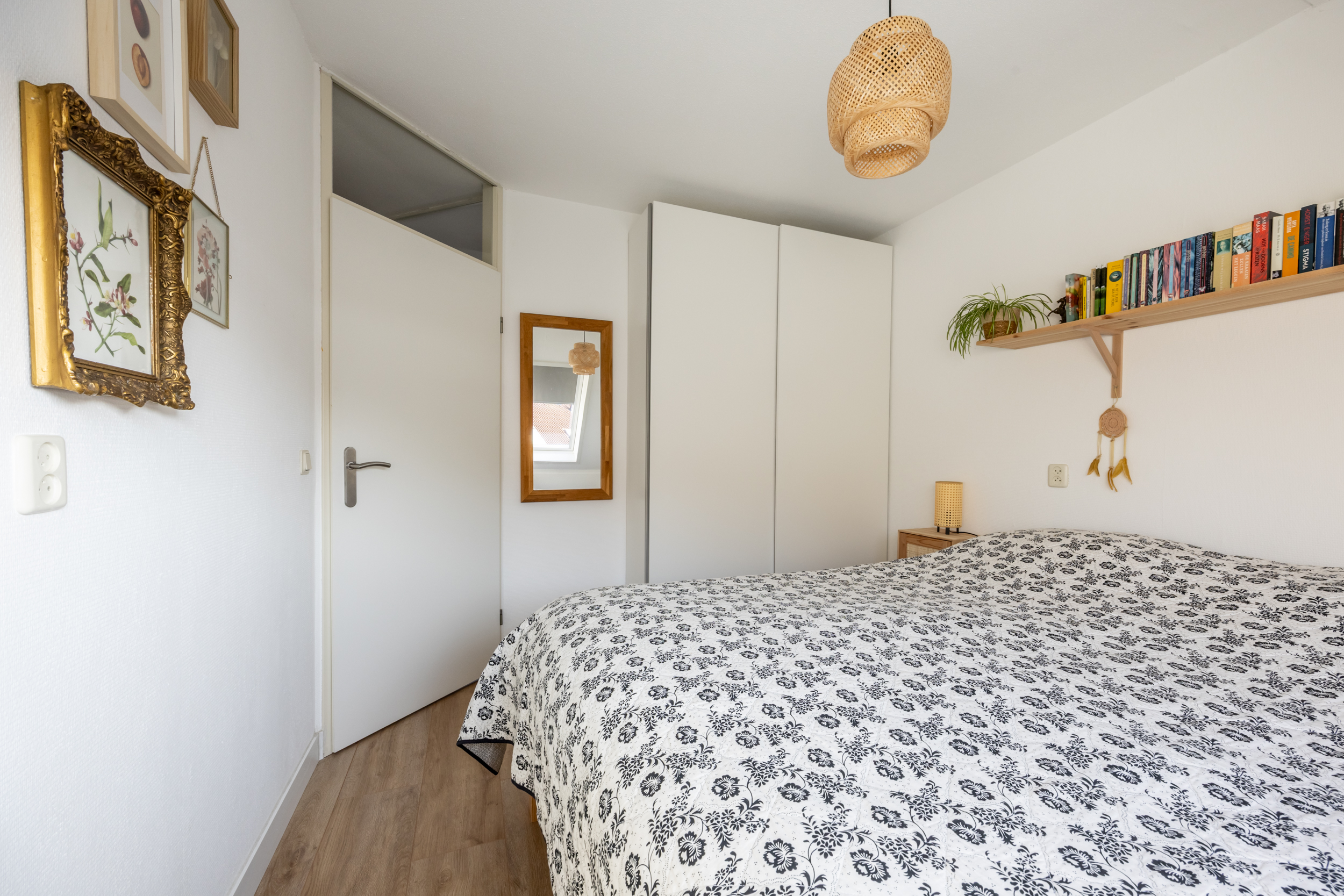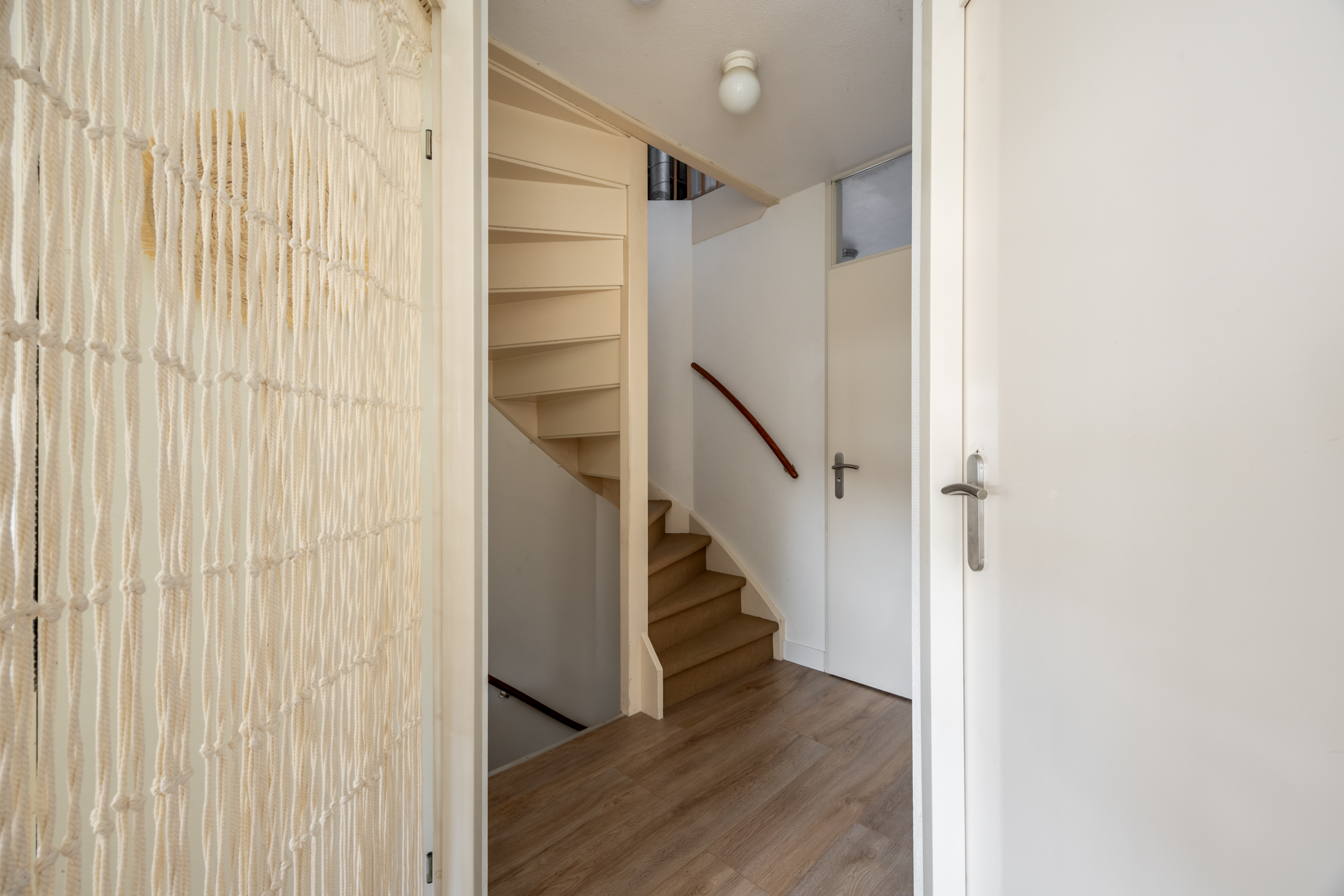 Loop je de trap verder op dan kom je op de tweede verdieping met veel opbergruimte achter de schotten, C.V.-ruimte, , mechanische ventilatie, wasmachine en een 4e ruime slaapkamer.