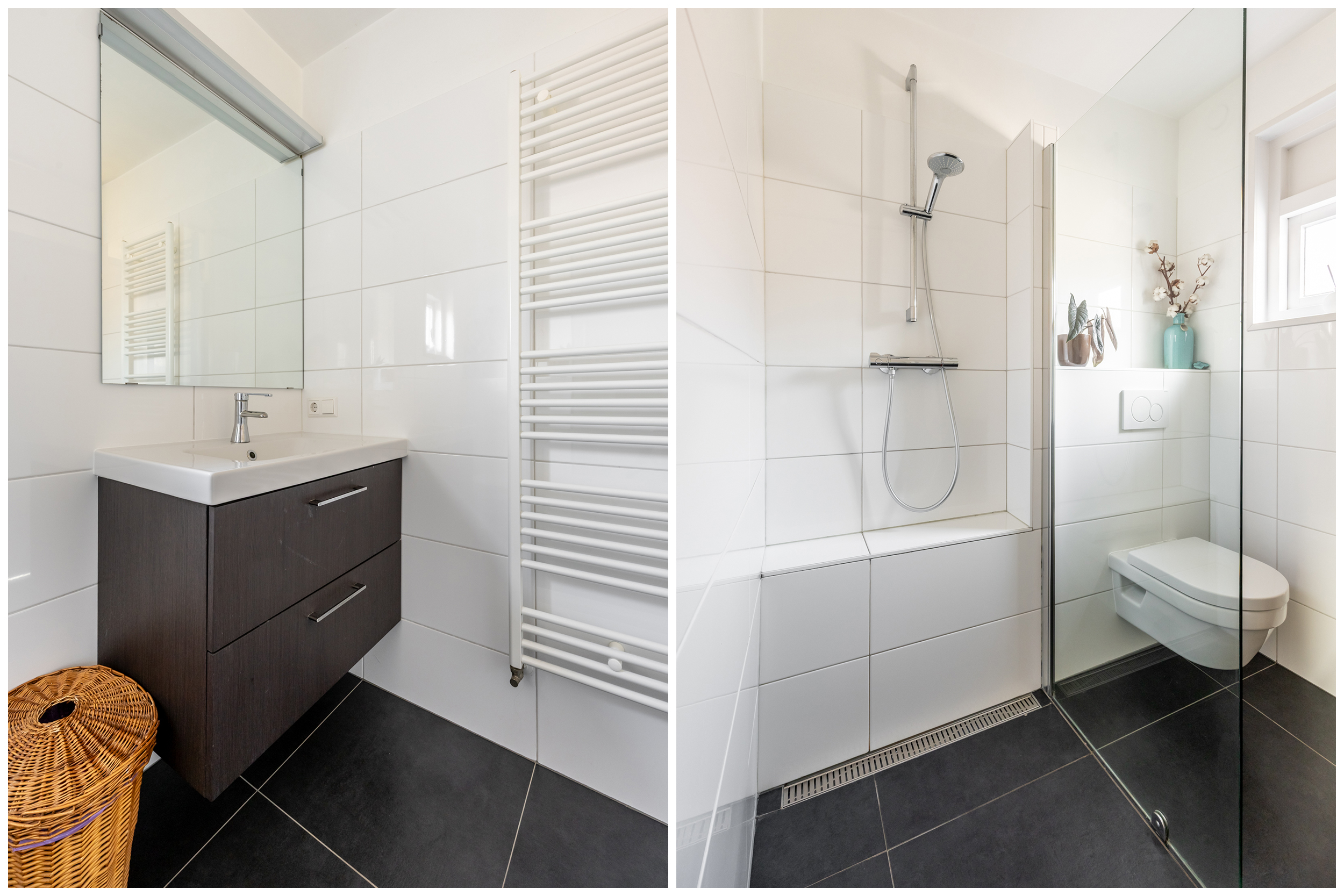 De overloop biedt toegang tot een moderne badkamer met douche, wastafel en toilet; tevens toegang tot 3 ruime slaapkamers;