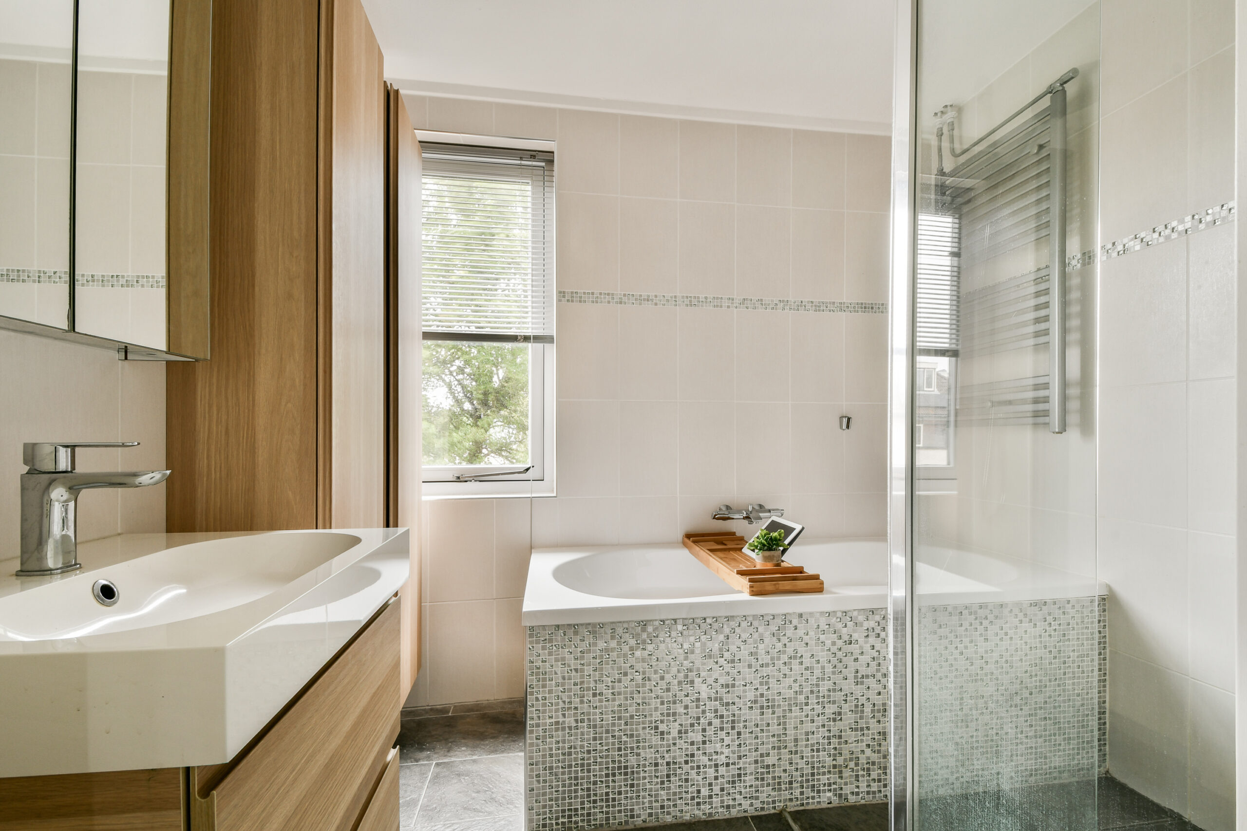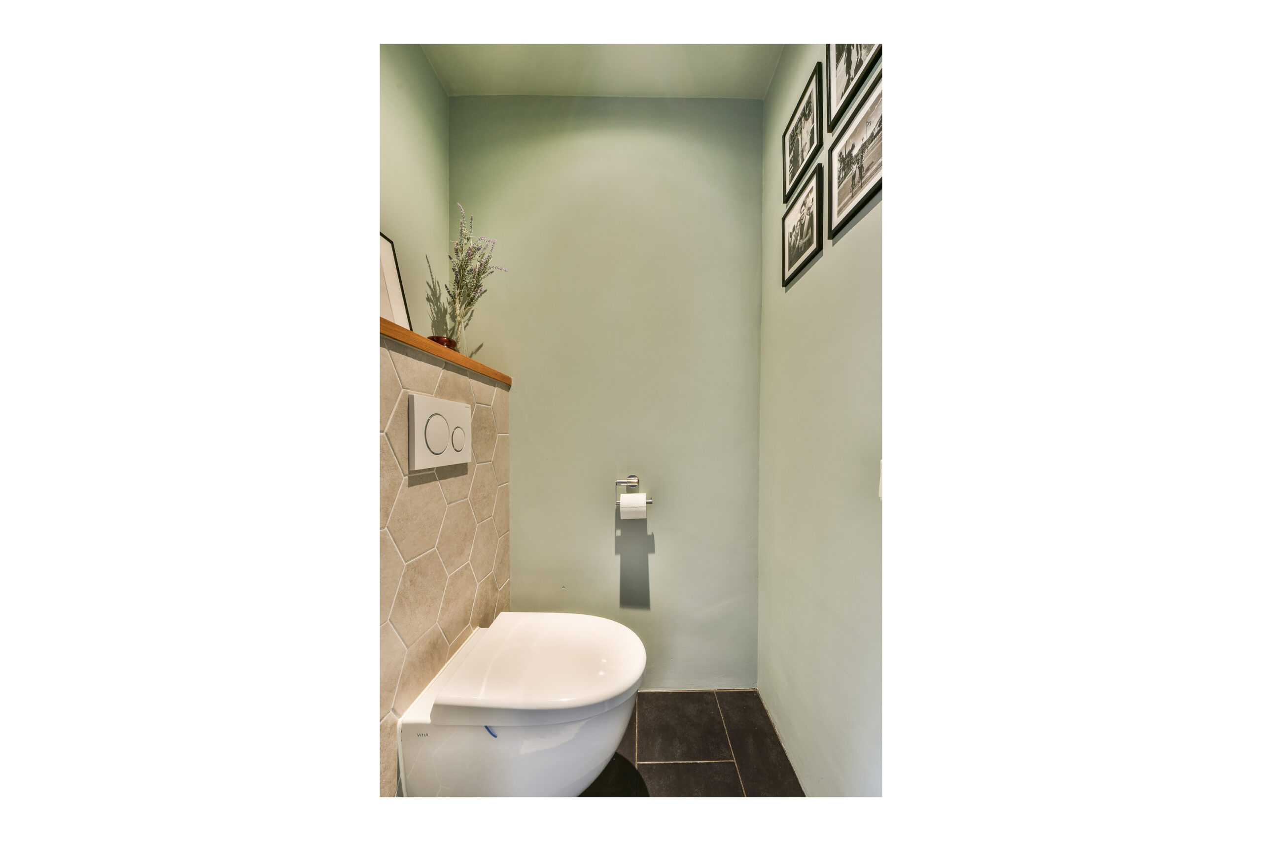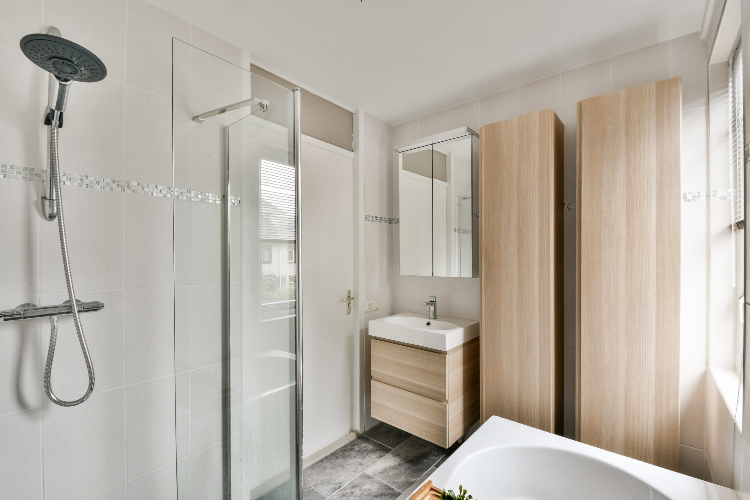 Via de overloop bereik je drie goed bemeten slaapkamers, waarvan twee aan de rustige achterzijde. De badkamer is strak afgewerkt met een ligbad, inloopdouche en wastafelmeubel. Ook is er een aparte toiletruimte op deze verdieping.