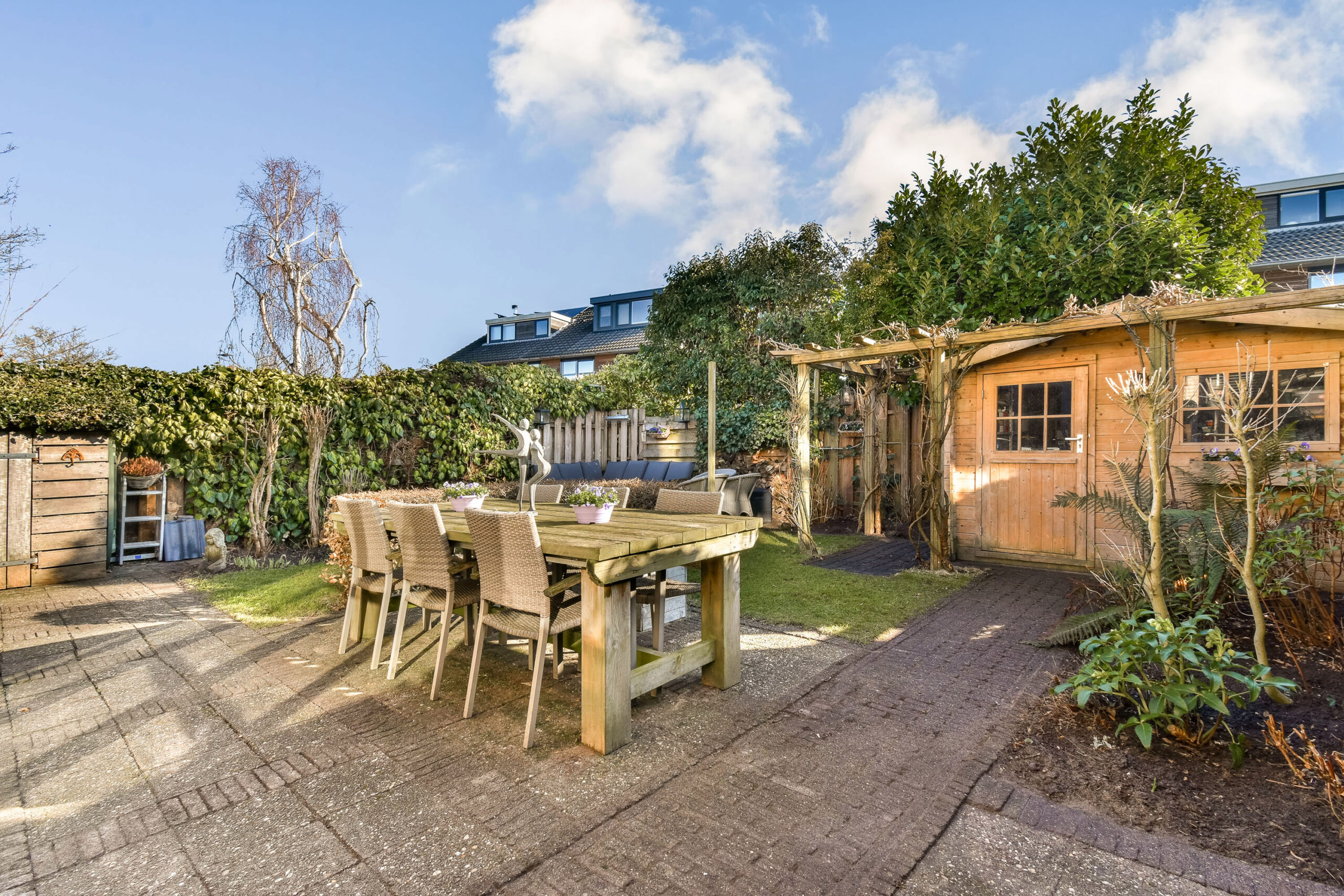 aan de woning is een zonnig terras waar je de hele dag heerlijk kunt ontspannen. Achter in de tuin is ruimte voor een comfortabele loungehoek met heater om tot in de late avond van het buitenleven te genieten. Verder beschikt de tuin over een tuinhuis, tuinkast en een handige achterom.