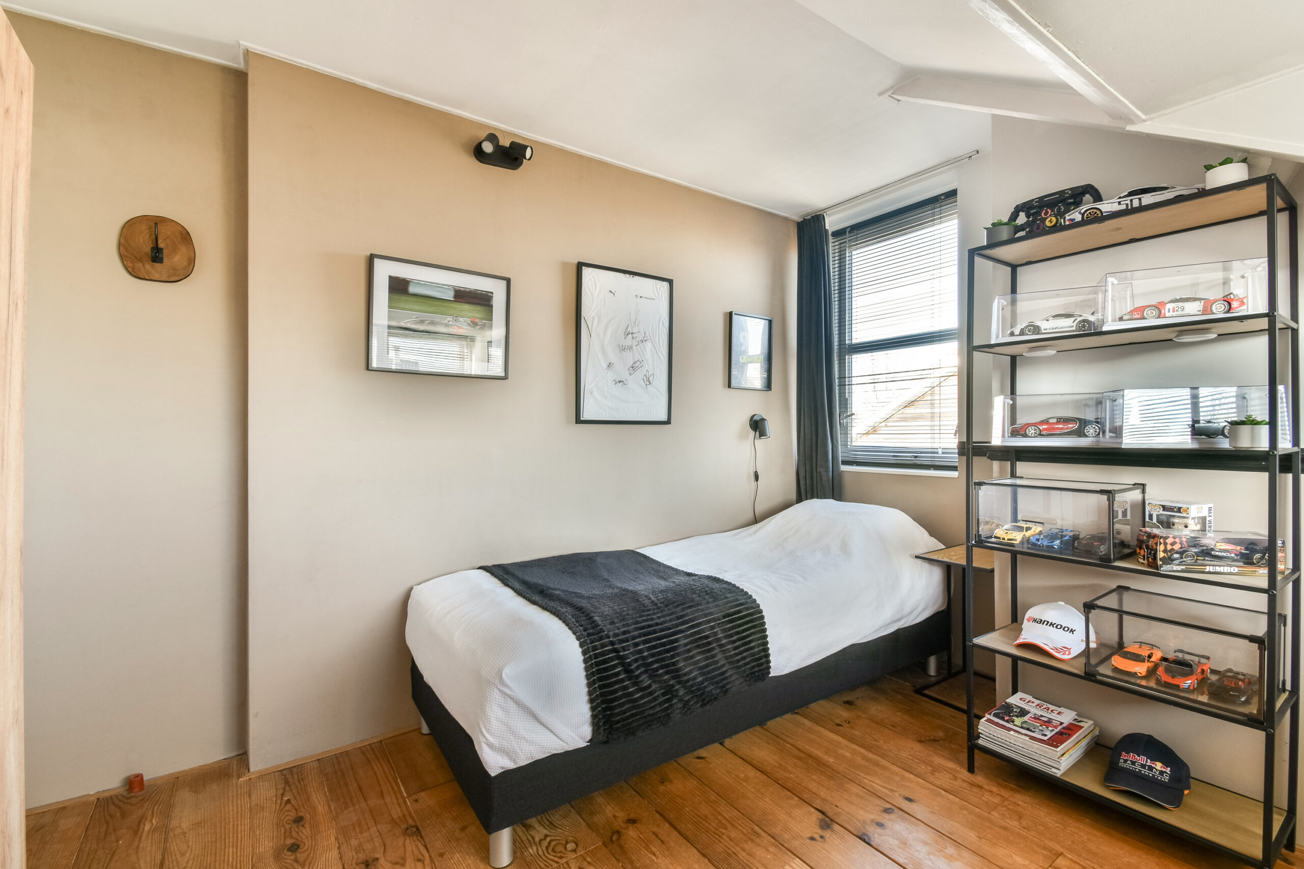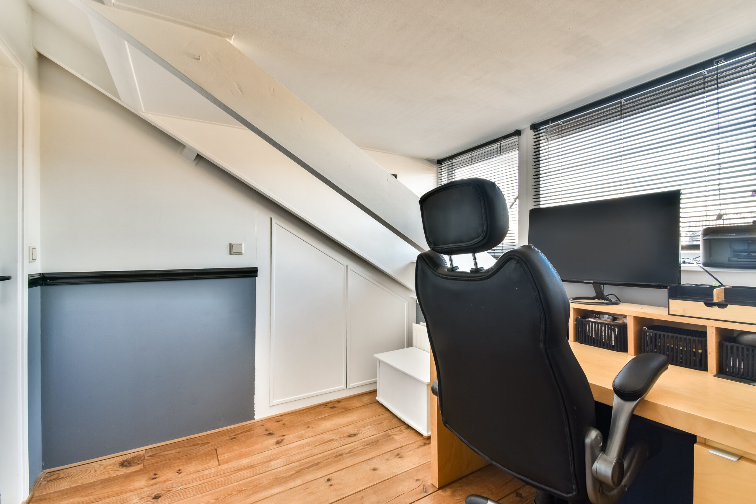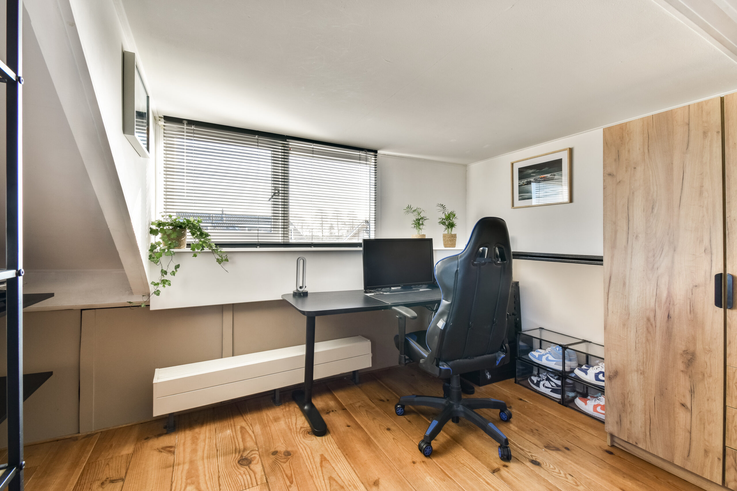 Overloop met toegang tot twee slaapkamers en de praktische tweede badkamer. Zowel aan de voor- als achterzijde van de woning zijn grote dakkapellen geplaatst, wat zorgt voor veel licht en extra ruimte. Aan de achterzijde bevindt zich de vierde slaapkamer. Deze slaapkamer beschikt over bergruimte achter de knieschotten. De vijfde slaapkamer aan de voorzijde heeft airconditioning, toegang tot een ruim opberghok en eveneens bergruimte achter de knieschotten. De tweede badkamer is uitgerust met douchecabine, wastafel, cv-ketel (Nefit, 2011) en aansluitingen voor was- en droogmachine.