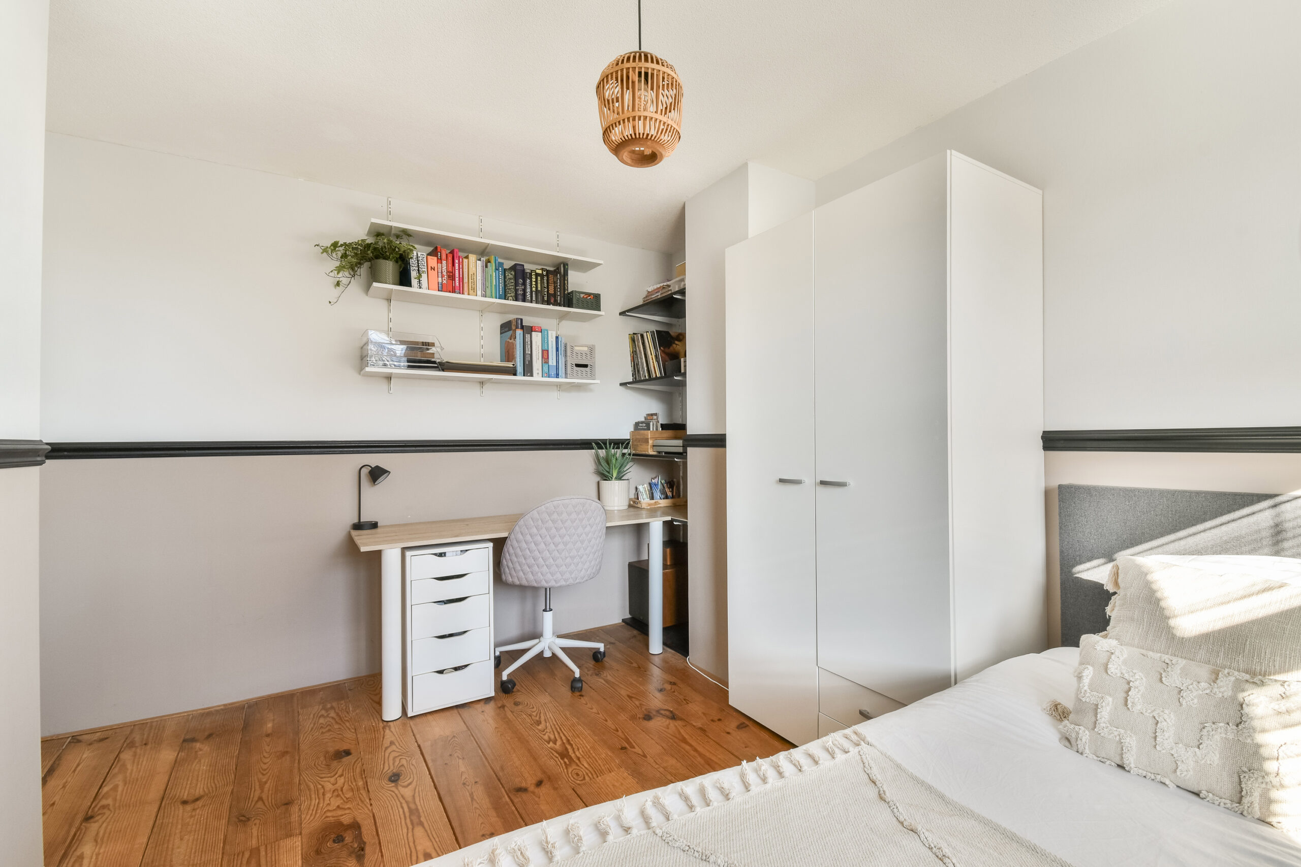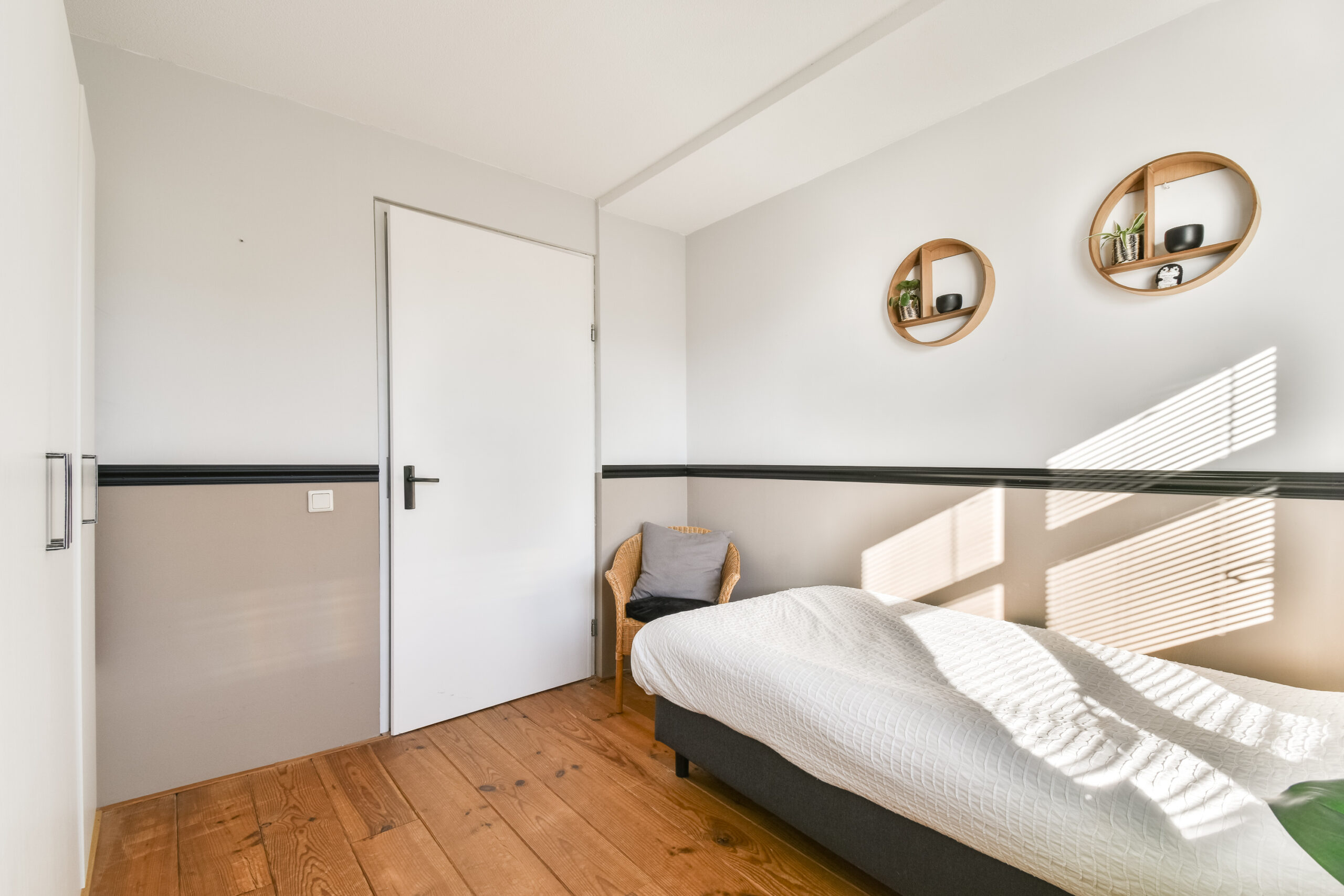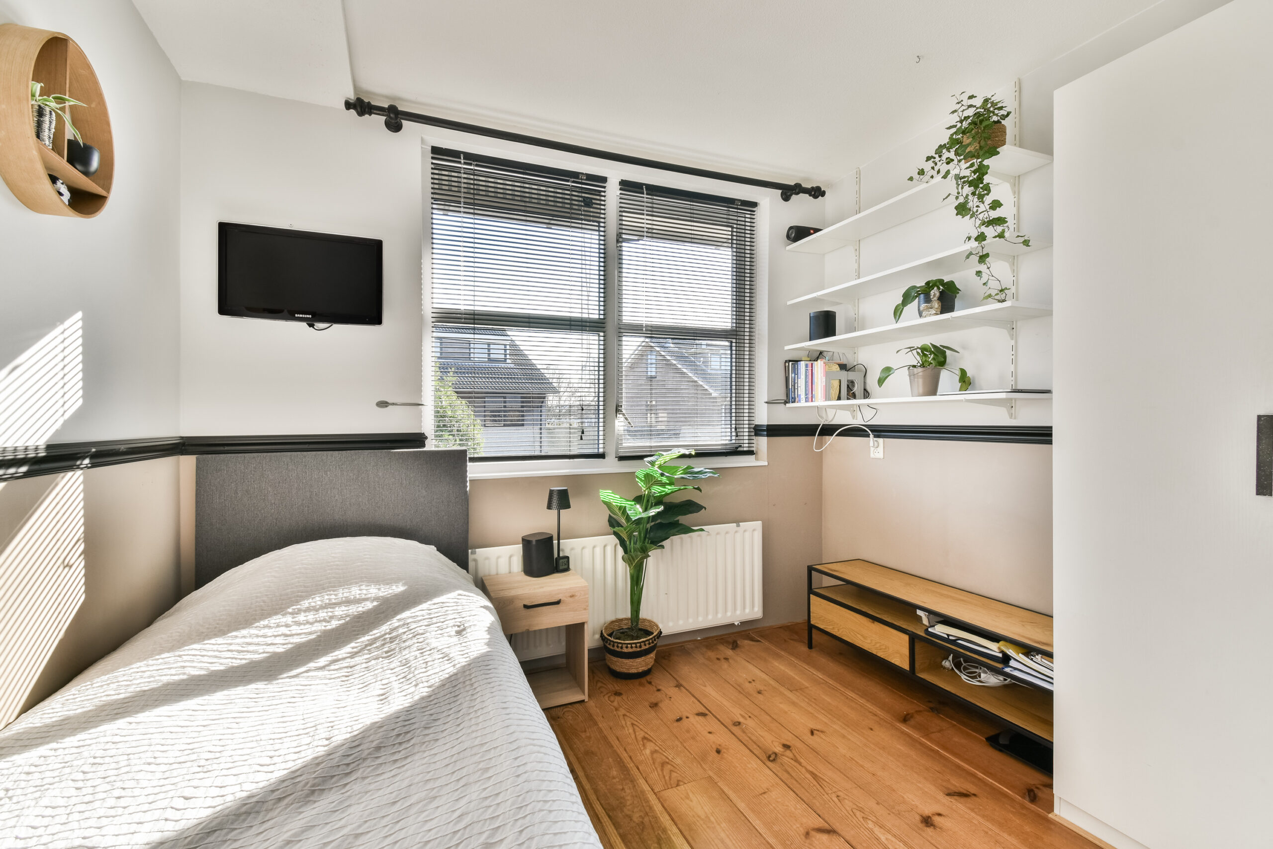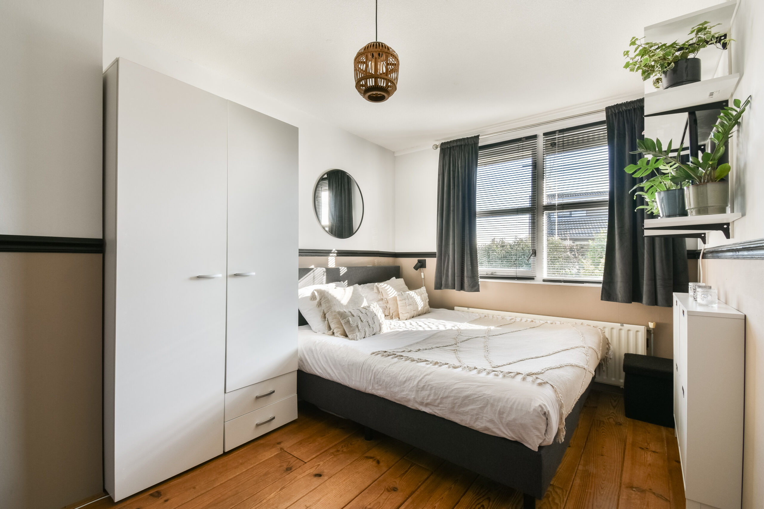 Overloop met toegang tot twee slaapkamers en de praktische tweede badkamer. Zowel aan de voor- als achterzijde van de woning zijn grote dakkapellen geplaatst, wat zorgt voor veel licht en extra ruimte. Aan de achterzijde bevindt zich de vierde slaapkamer. Deze slaapkamer beschikt over bergruimte achter de knieschotten. De vijfde slaapkamer aan de voorzijde heeft airconditioning, toegang tot een ruim opberghok en eveneens bergruimte achter de knieschotten. De tweede badkamer is uitgerust met douchecabine, wastafel, cv-ketel (Nefit, 2011) en aansluitingen voor was- en droogmachine.