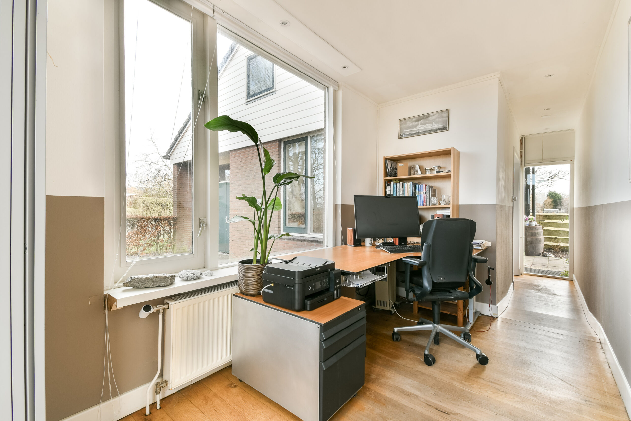 Binnendoor bereikt u de praktijkruimte. Deze ruimte is ook in te richten als een zelfstandige woonruimte, bijvoorbeeld voor tieners, of om te bouwen tot een slaapkamer met badkamer, zodat een levensloopbestendige woning kan worden gecreëerd. De ruimte beschikt tevens over een tweede verdieping, welke bereikbaar is middels een vaste trap. Ook hier heeft u toegang tot de achtertuin.