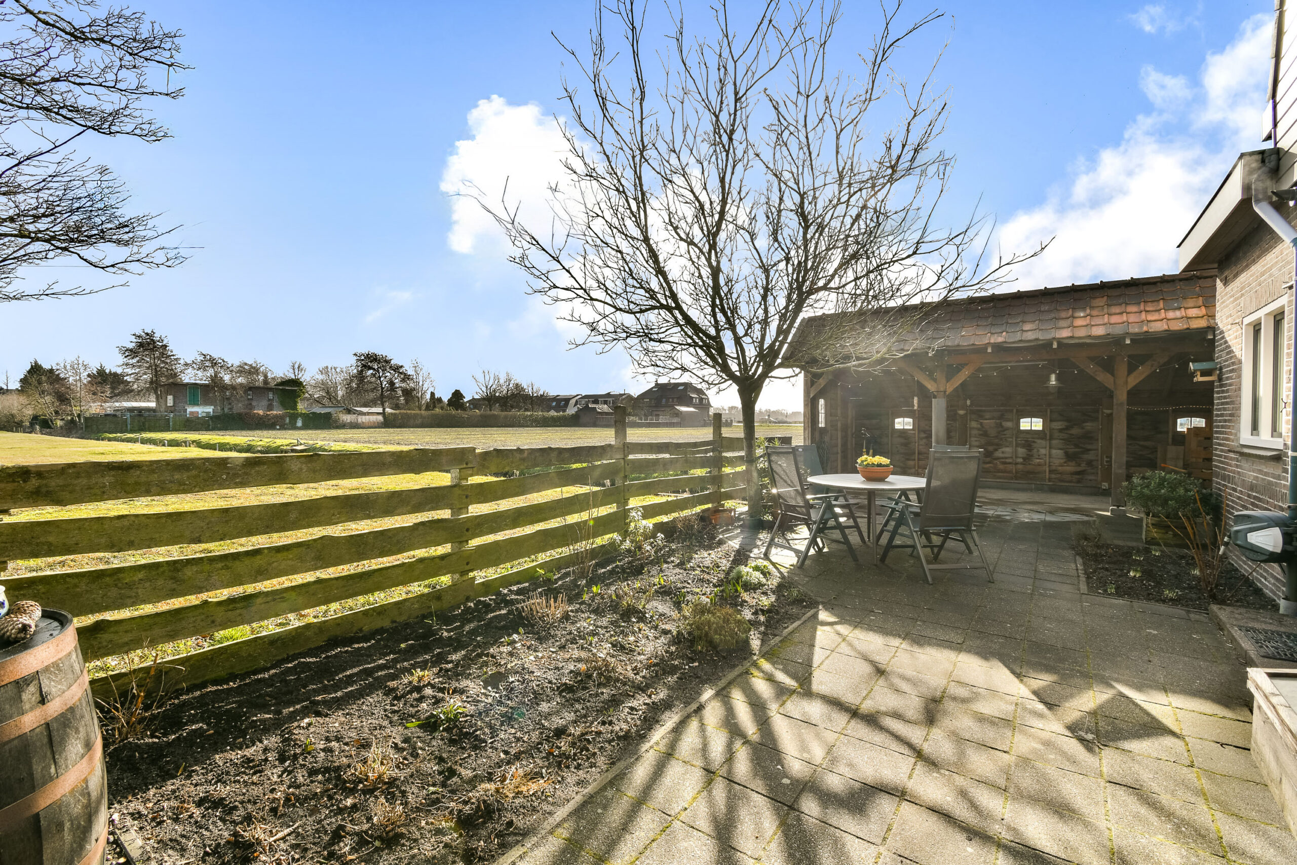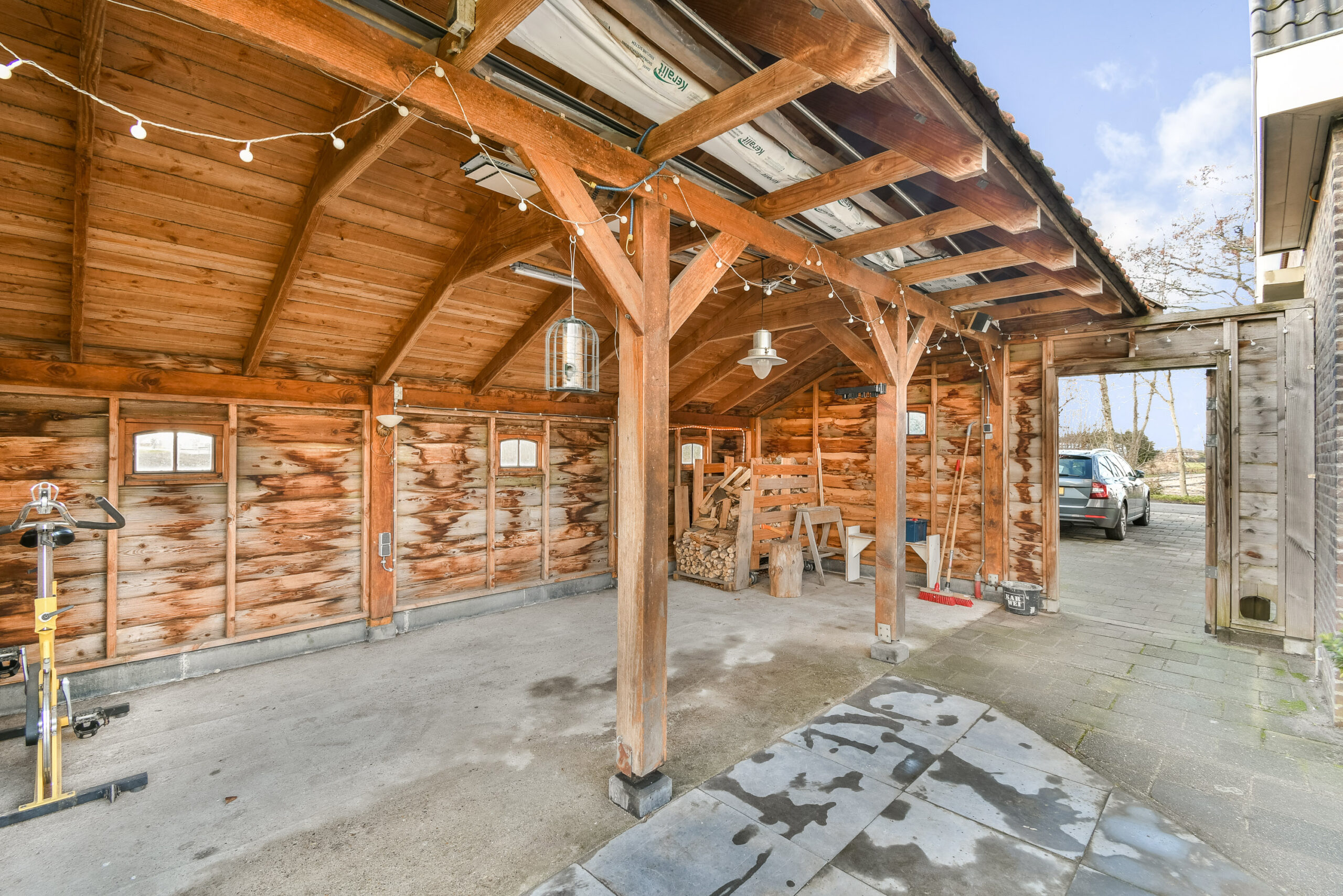 Rondom de woning heeft u een weids uitzicht en volledige privacy. In de achtertuin bevindt zich een kapschuur/overkapping die een beschutte plek biedt en het buitenseizoen verlengt. De voortuin is voorzien van diverse beplanting en biedt met twee afzonderlijke opritten de mogelijkheid om op eigen terrein parkeren. Door het verwijderen van beplanting is het zelfs mogelijk om de parkeergelegenheid uit te breiden.