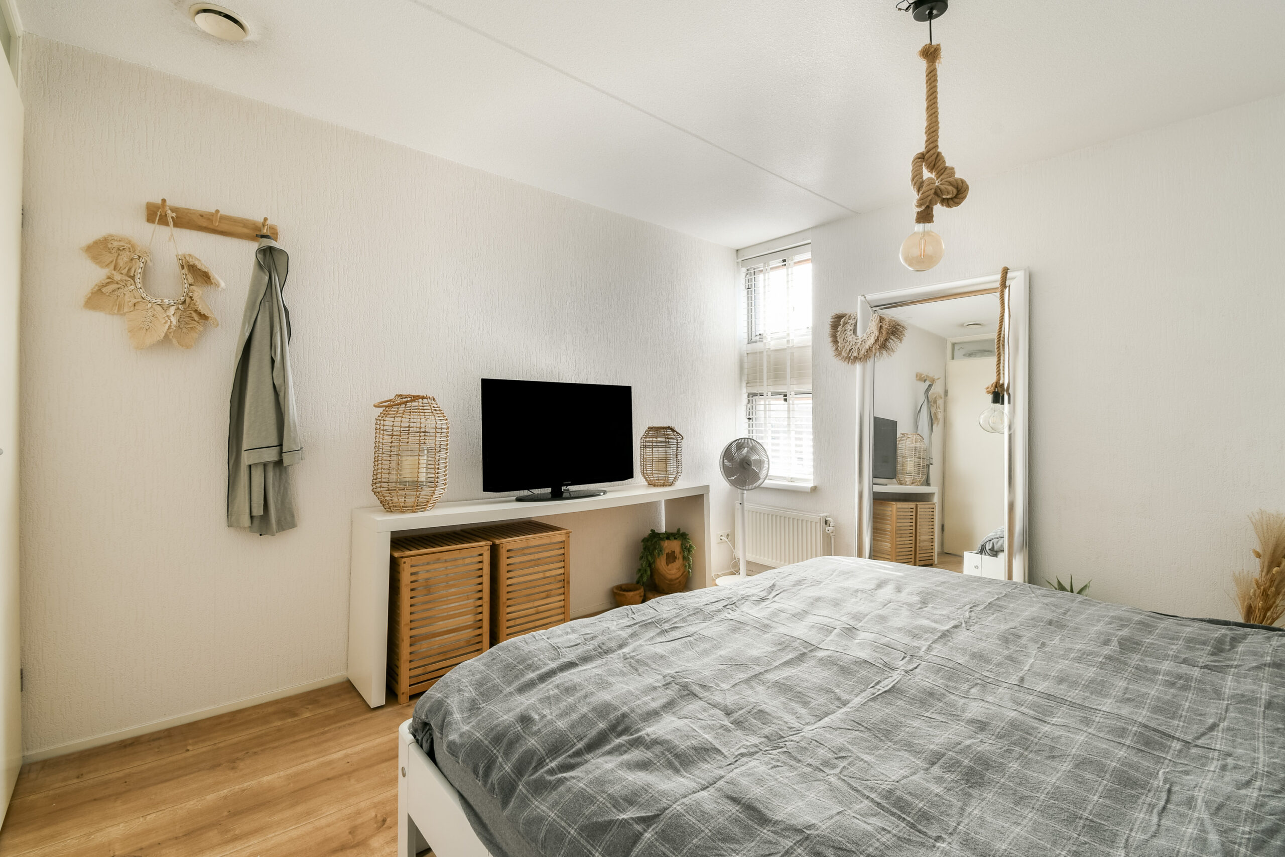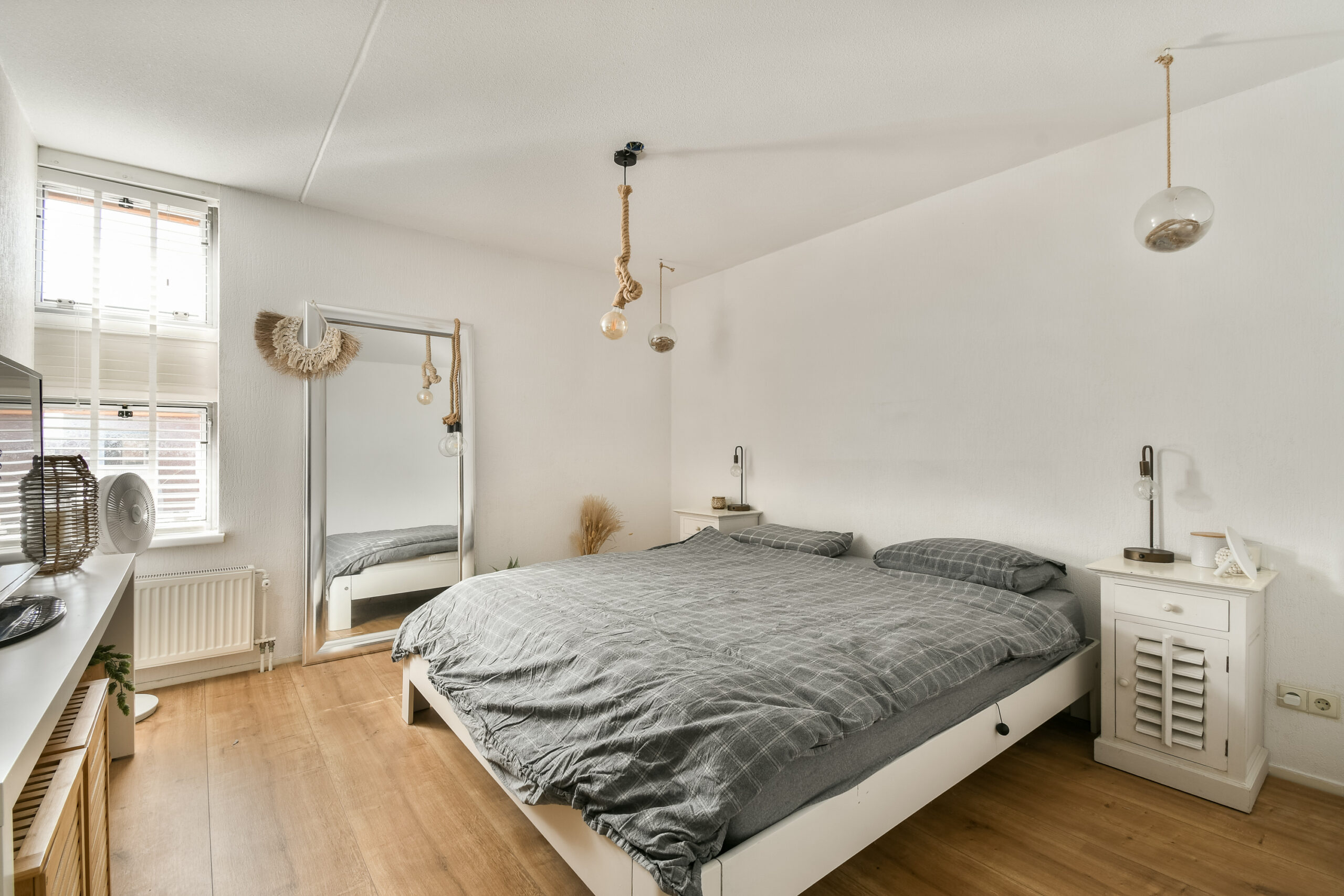 Via de trap naar beneden bereik je de tweede verdieping, waar zich drie ruime slaapkamers bevinden. Ook hier valt direct op hoeveel licht er binnenkomt door de vele raampartijen.