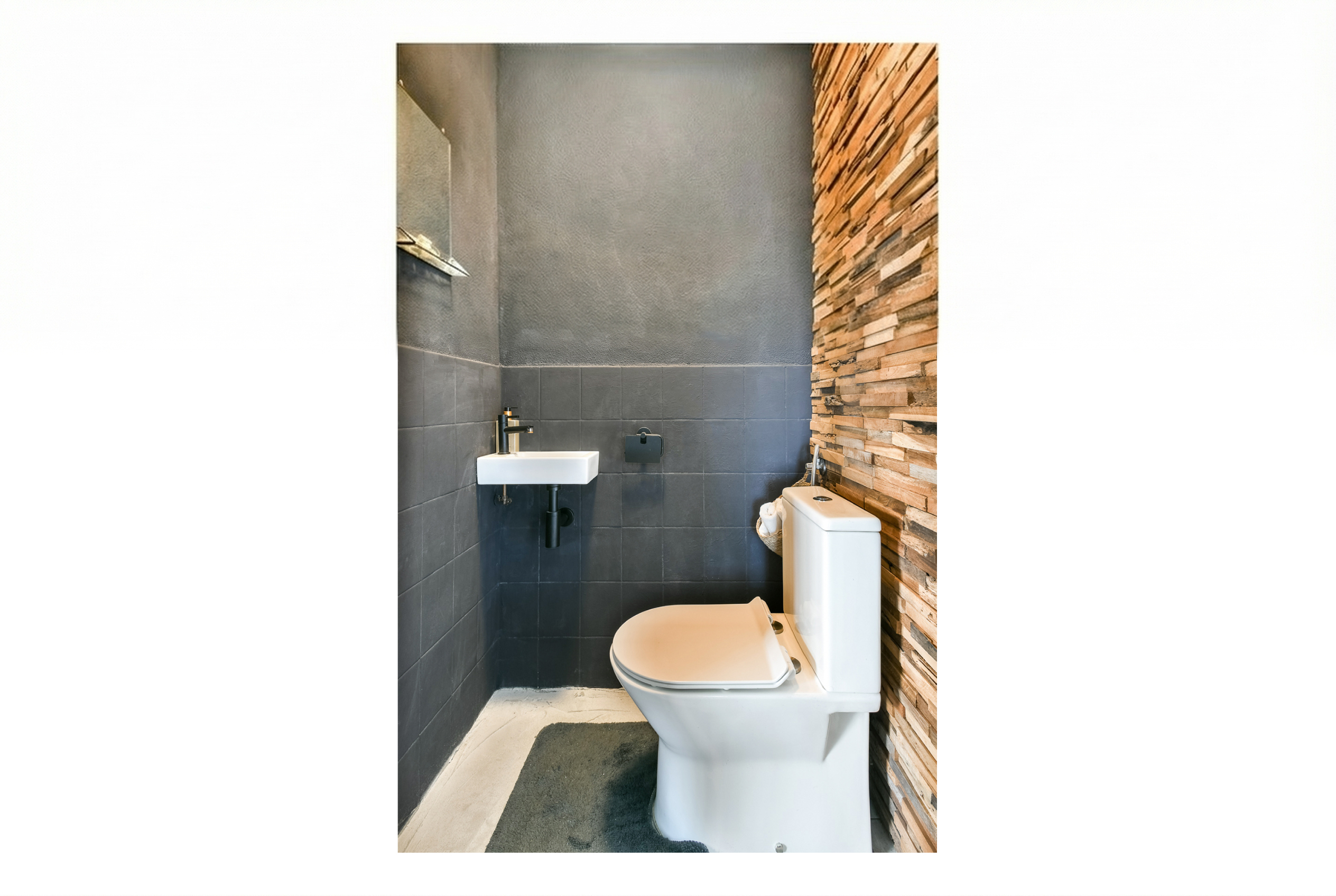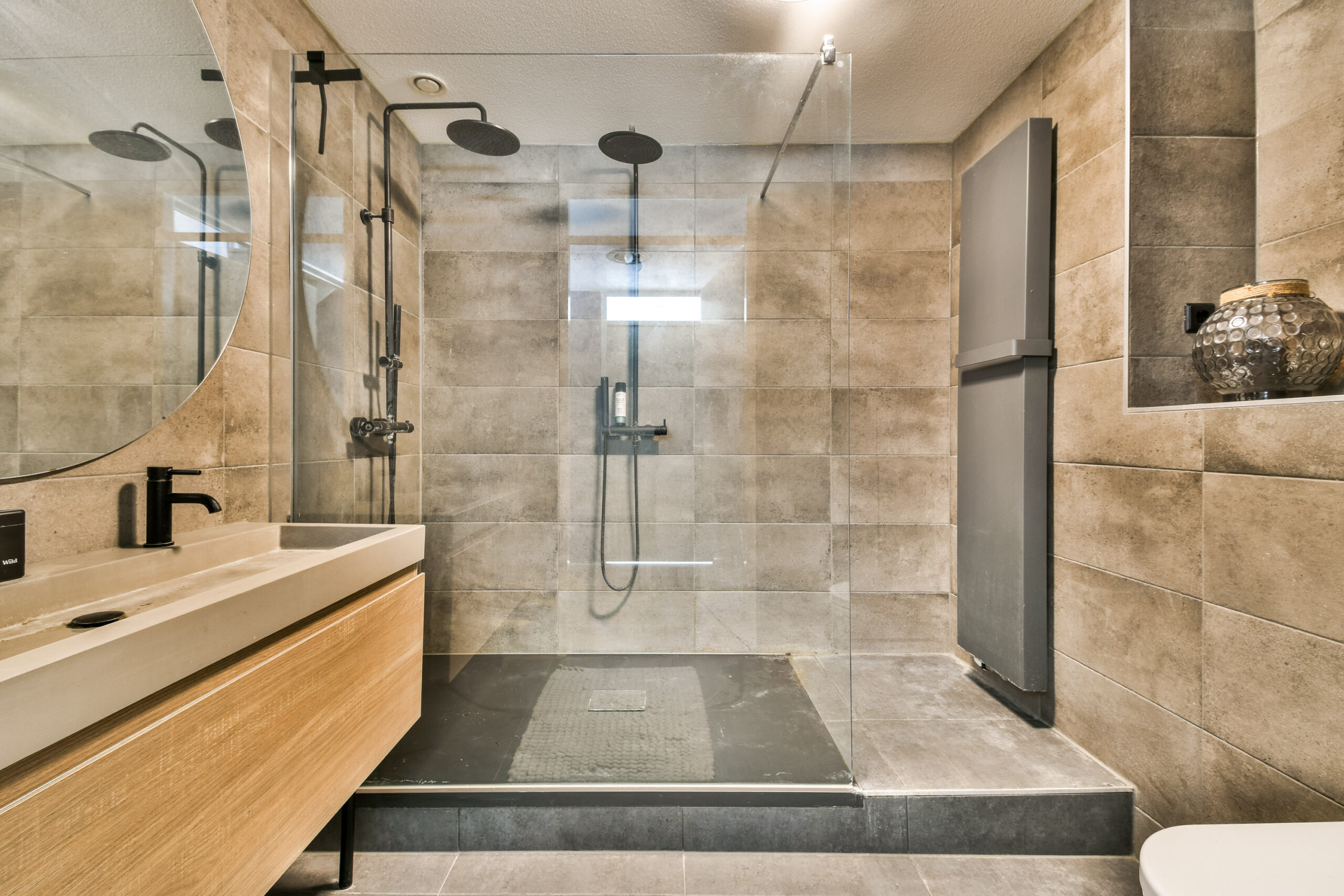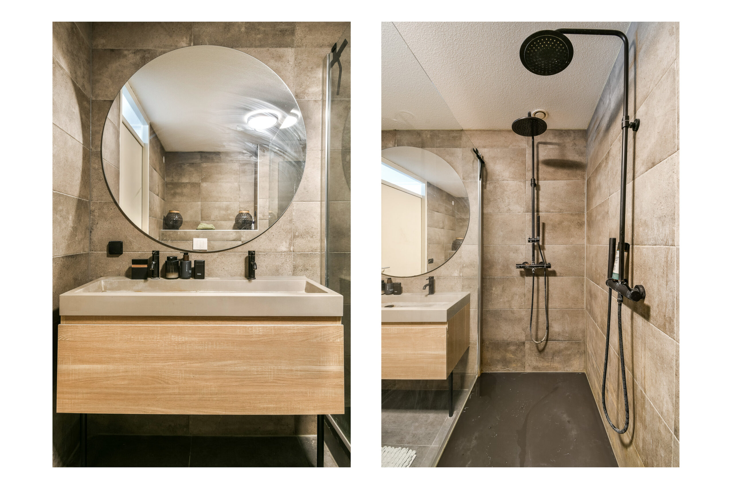De badkamer is vernieuwd in 2018, een echte eyecatcher: donker, stijlvol en luxe uitgevoerd. Deze badkamer is voorzien van een royale inloopdouche met dubbele regendouche, een dubbel wastafelmeubel, toilet, designradiator en een strakke afwerking die zorgt voor een hotel-chique ervaring.