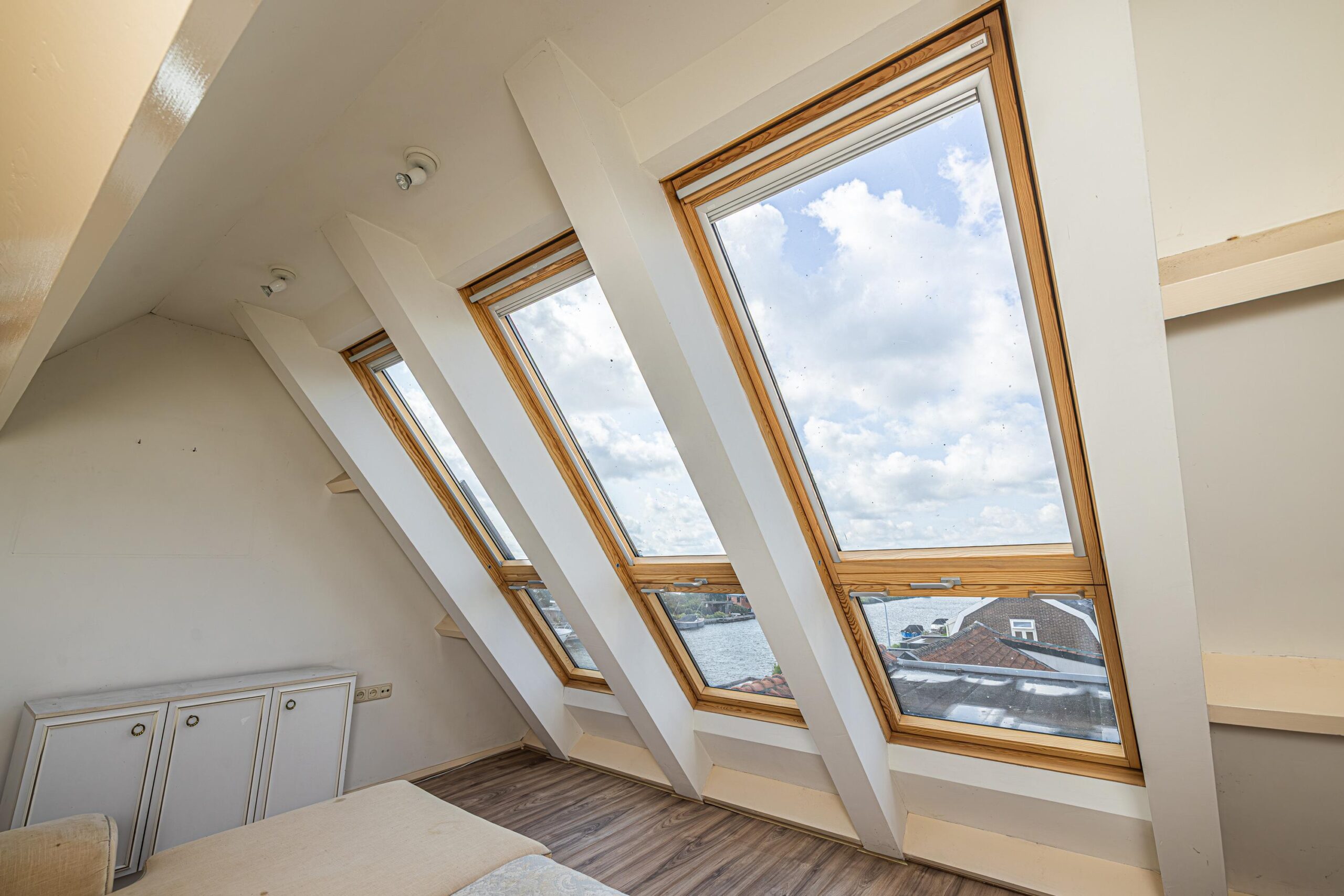 De overloop met vaste kast waarin de opstelplaats van de recent geplaatste c.v.-combiketel (Nefit Trendline CW5 bouwjaar 2022). Een 3e slaapkamer aan de achterzijde met dakvenster en bergruimte onder het dakvlak en een aantrekkelijke 4e slaapkamer, welke is uitgevoerd met een dakvenster alsmede 3 Velux-loggia uitzetramen waardoor je een bijzonder 'balkon' effect krijgt. De kamer is door deze dakvensters heerlijk licht en geeft u een prachtig uitzicht over het water en weilanden.